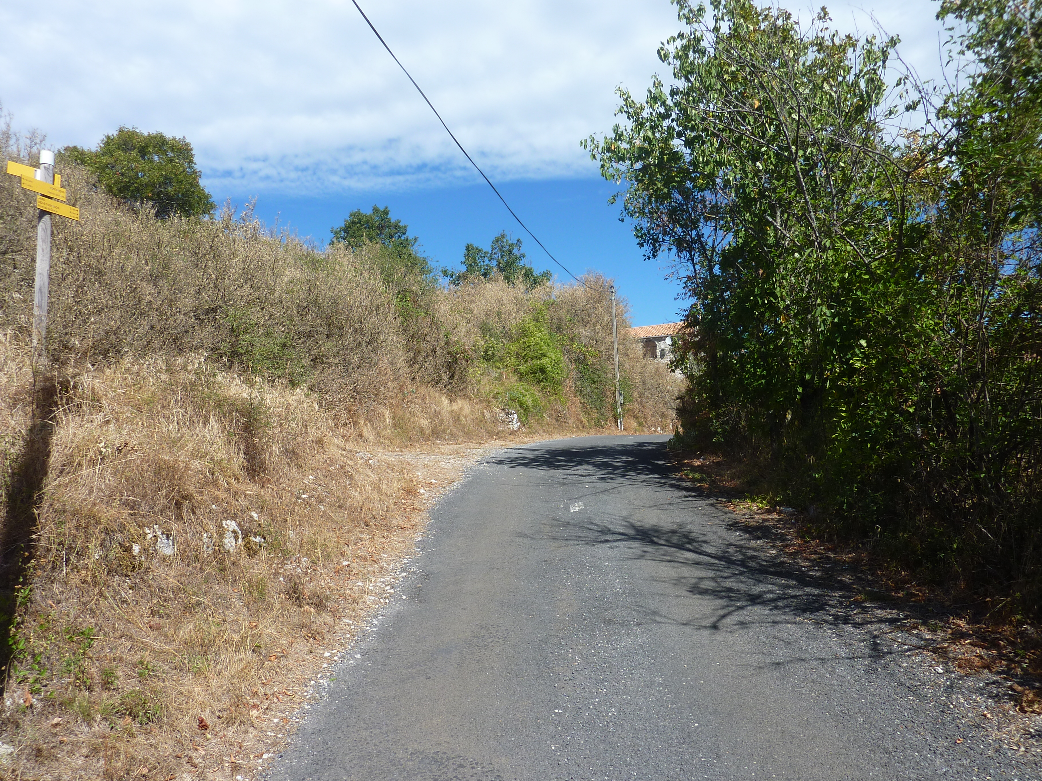 Navas (678 m) : suivre la route partant tout droit direction Bez-et-Esparron, balisé en jaune et rouge, et en jaune dorénavant