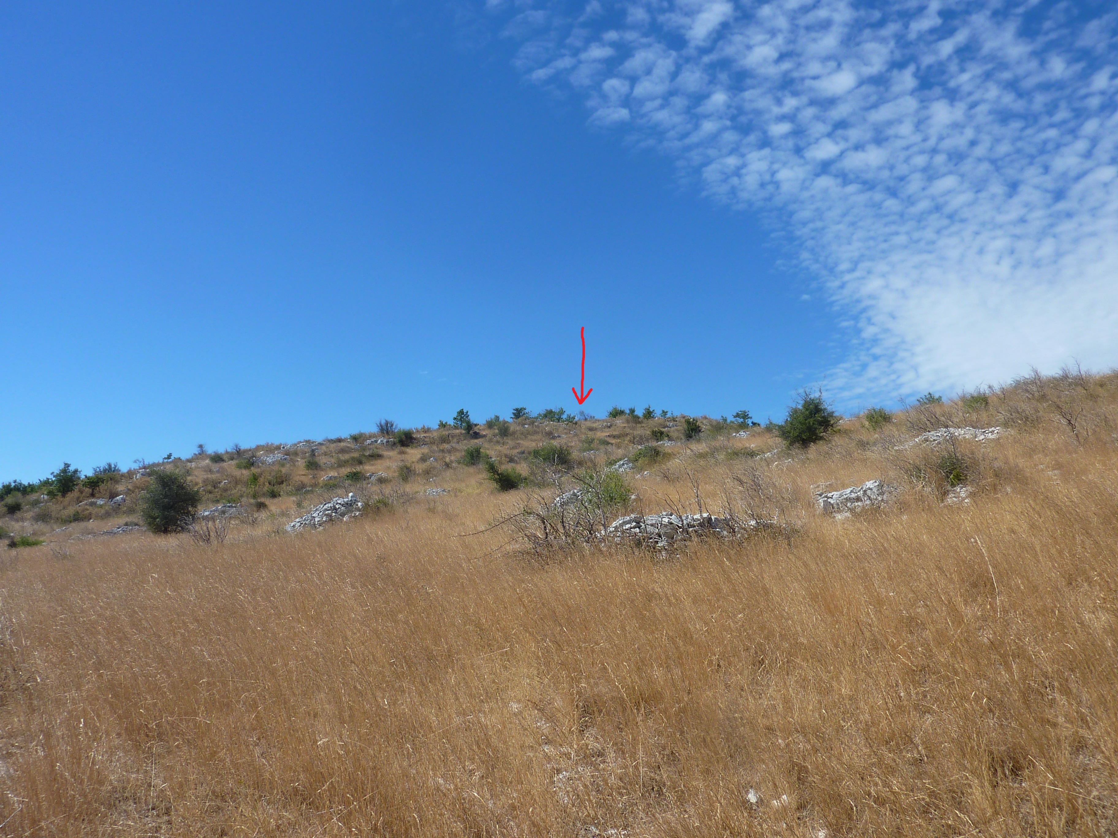 Monter à vue à travers les hautes herbes en visant le sommet de la crête visible dans un premier temps direction Serre Barral