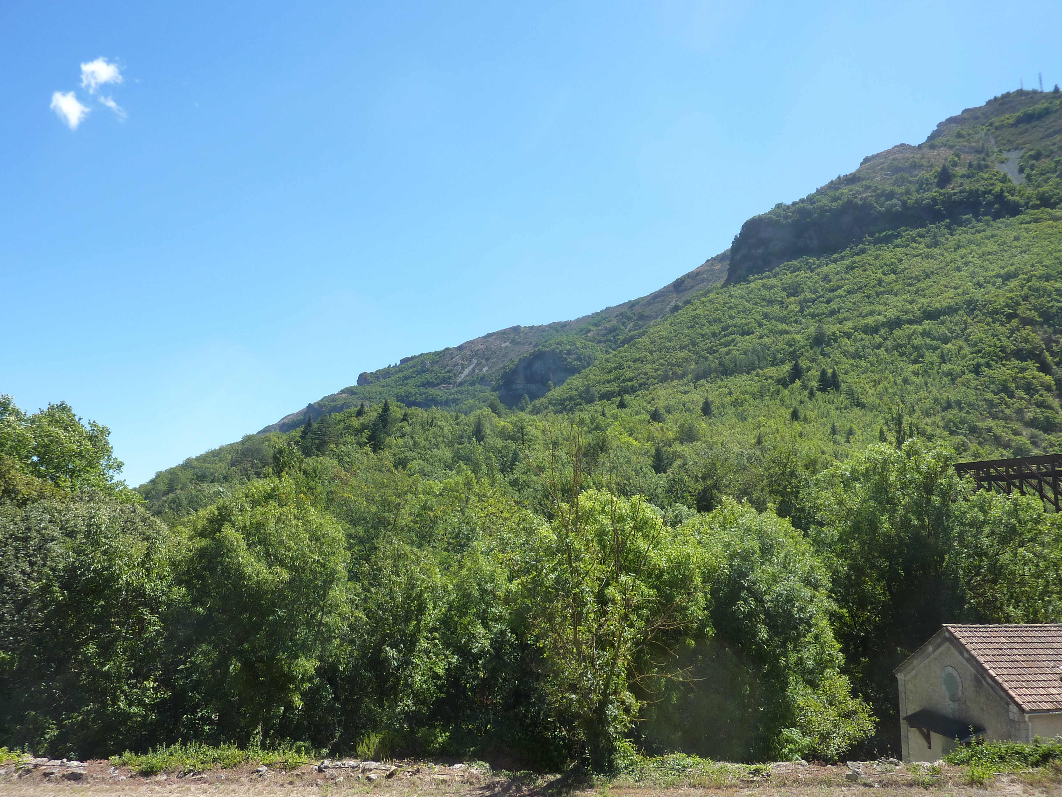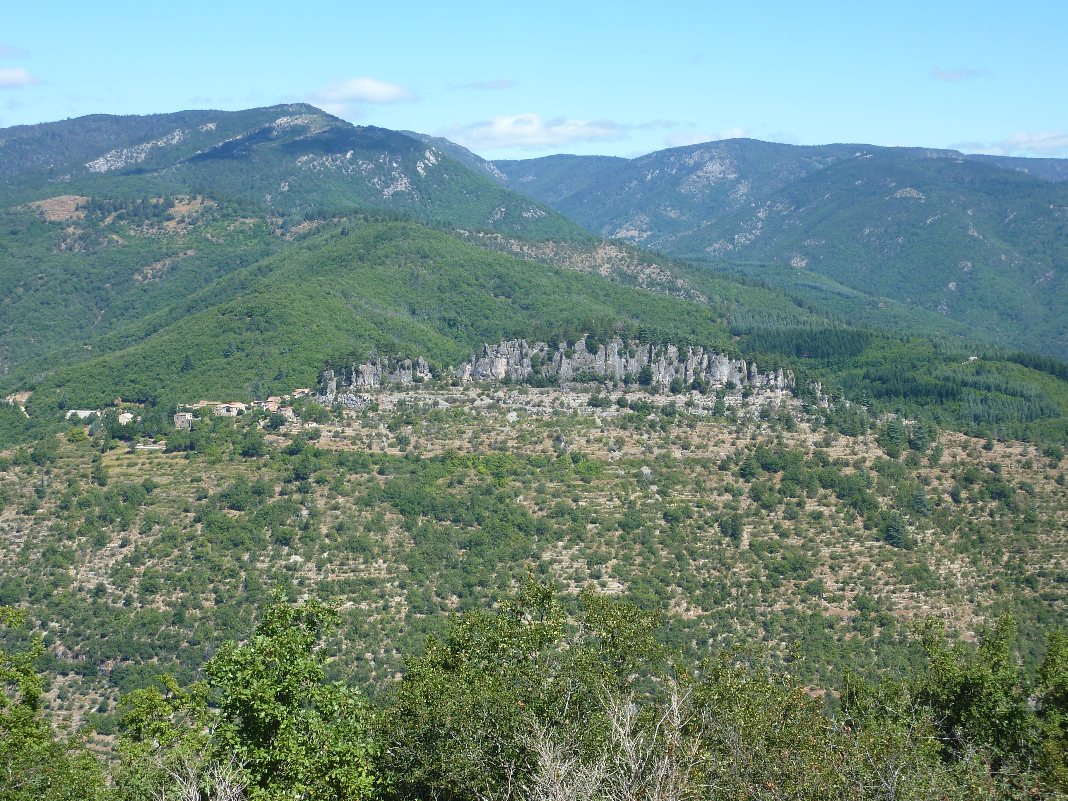 Vue sur les Rochers de la Tude à gauche et la Montagne de la Séranne au centre