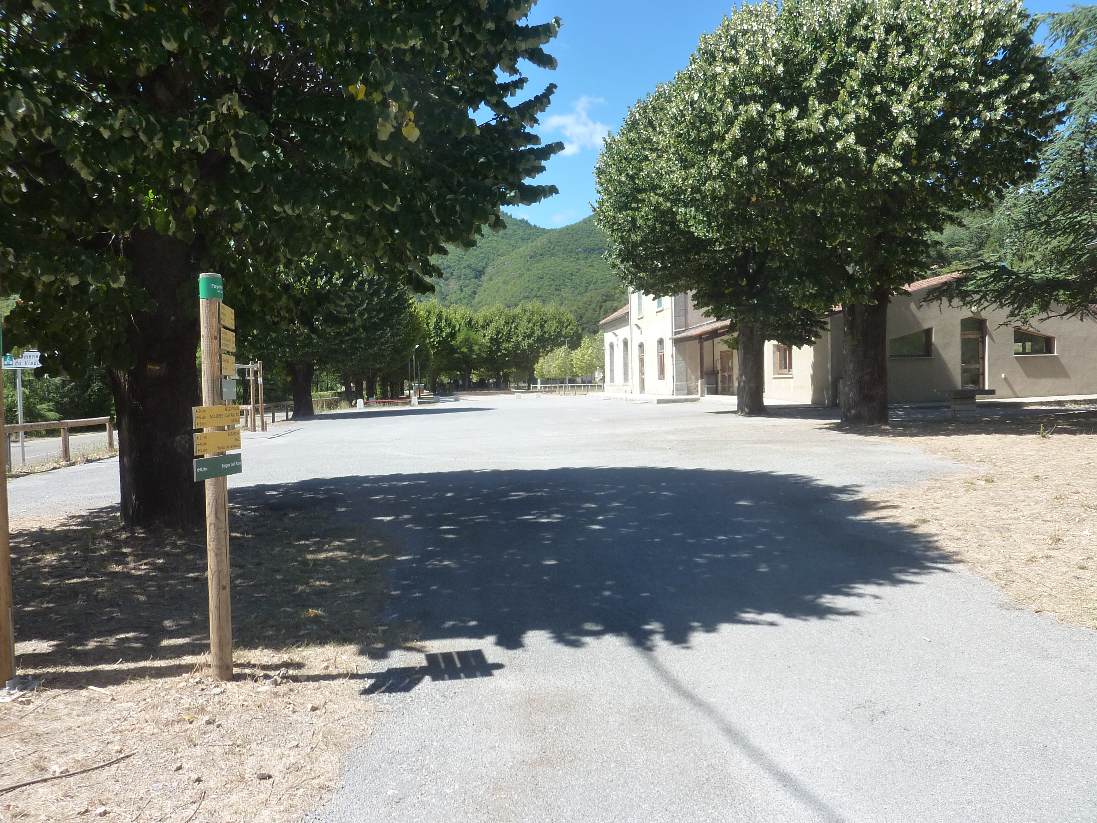 Arre - Foyer d'Arre (327 m) : suivre le chemin partant tout droit à travers le parking direction Arre - Mairie, balisé en jaune