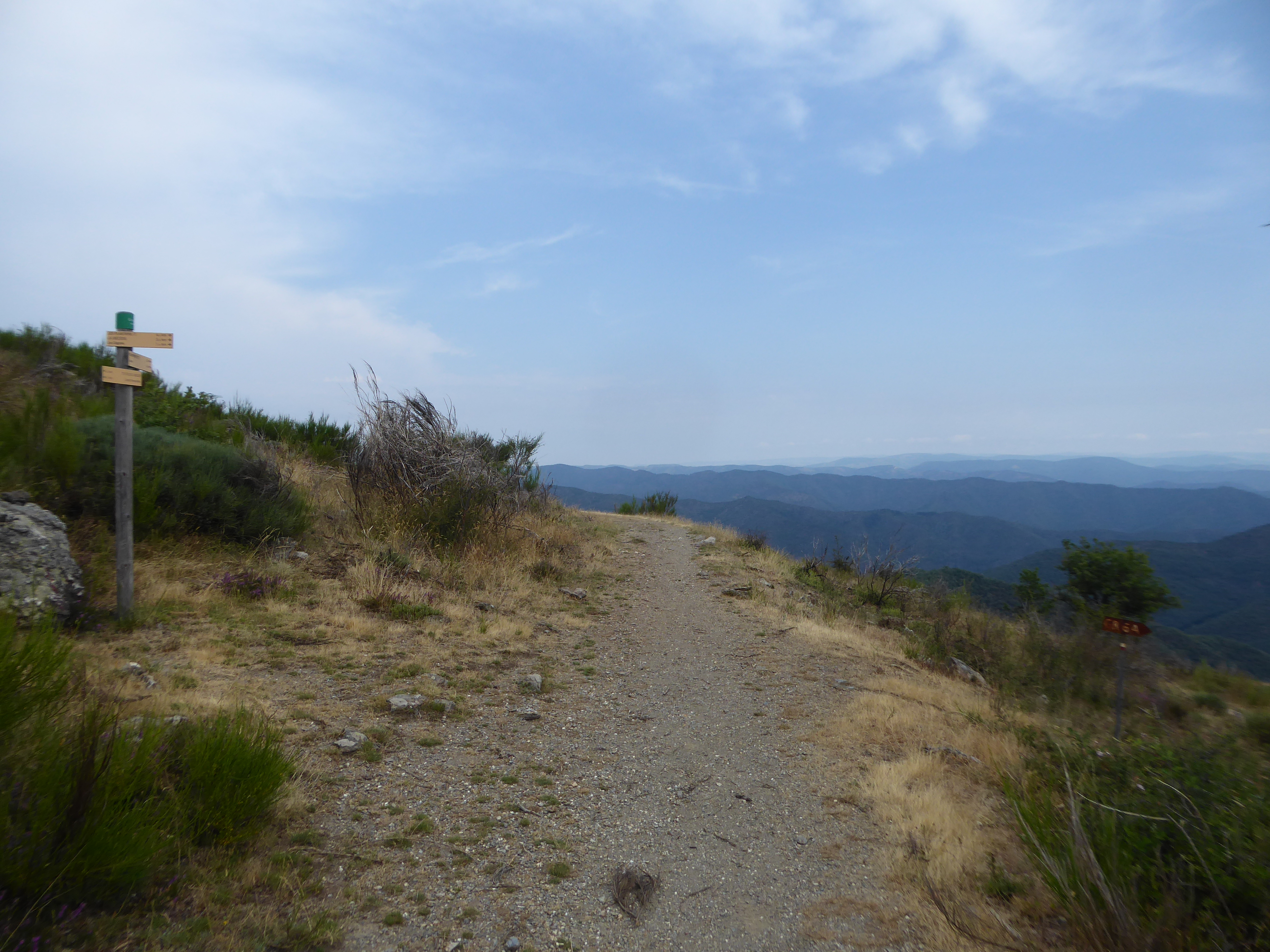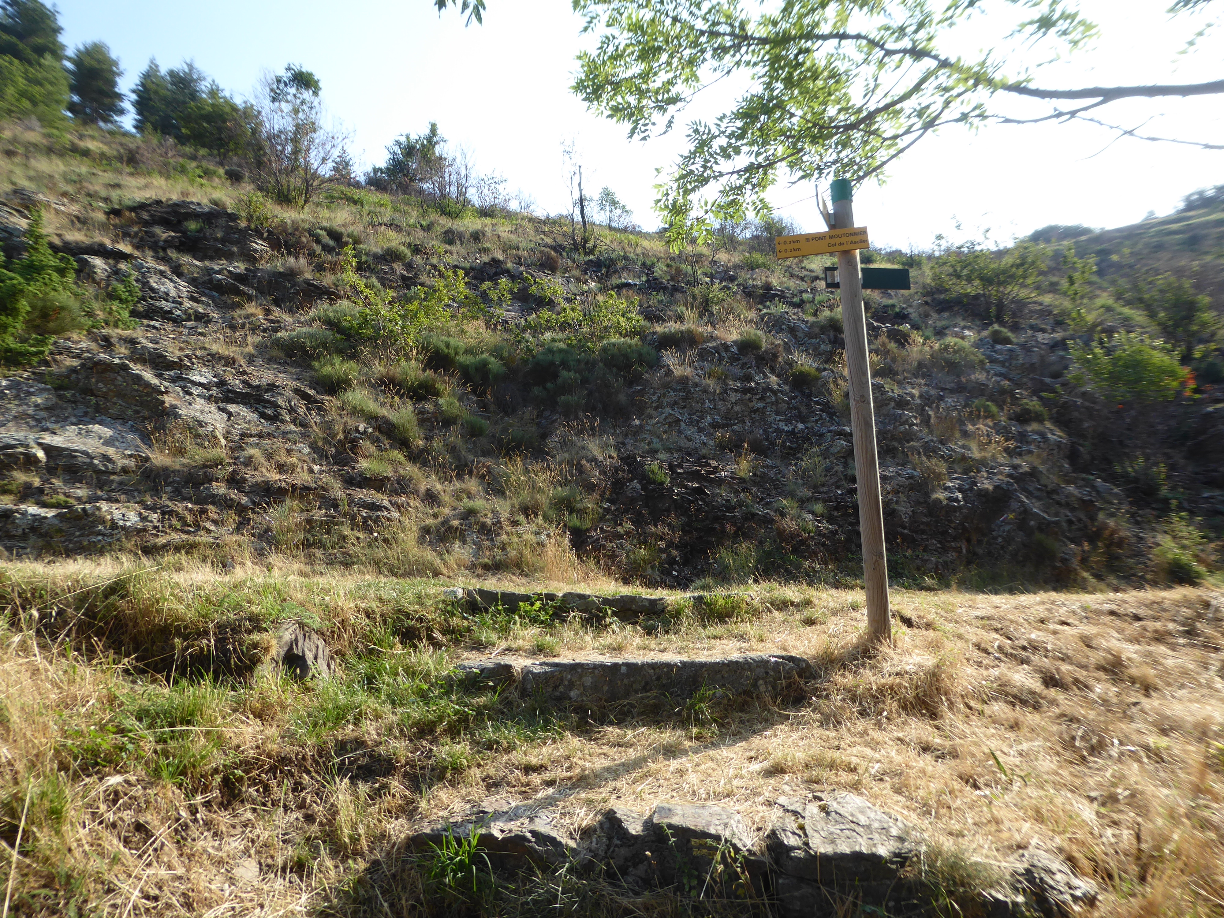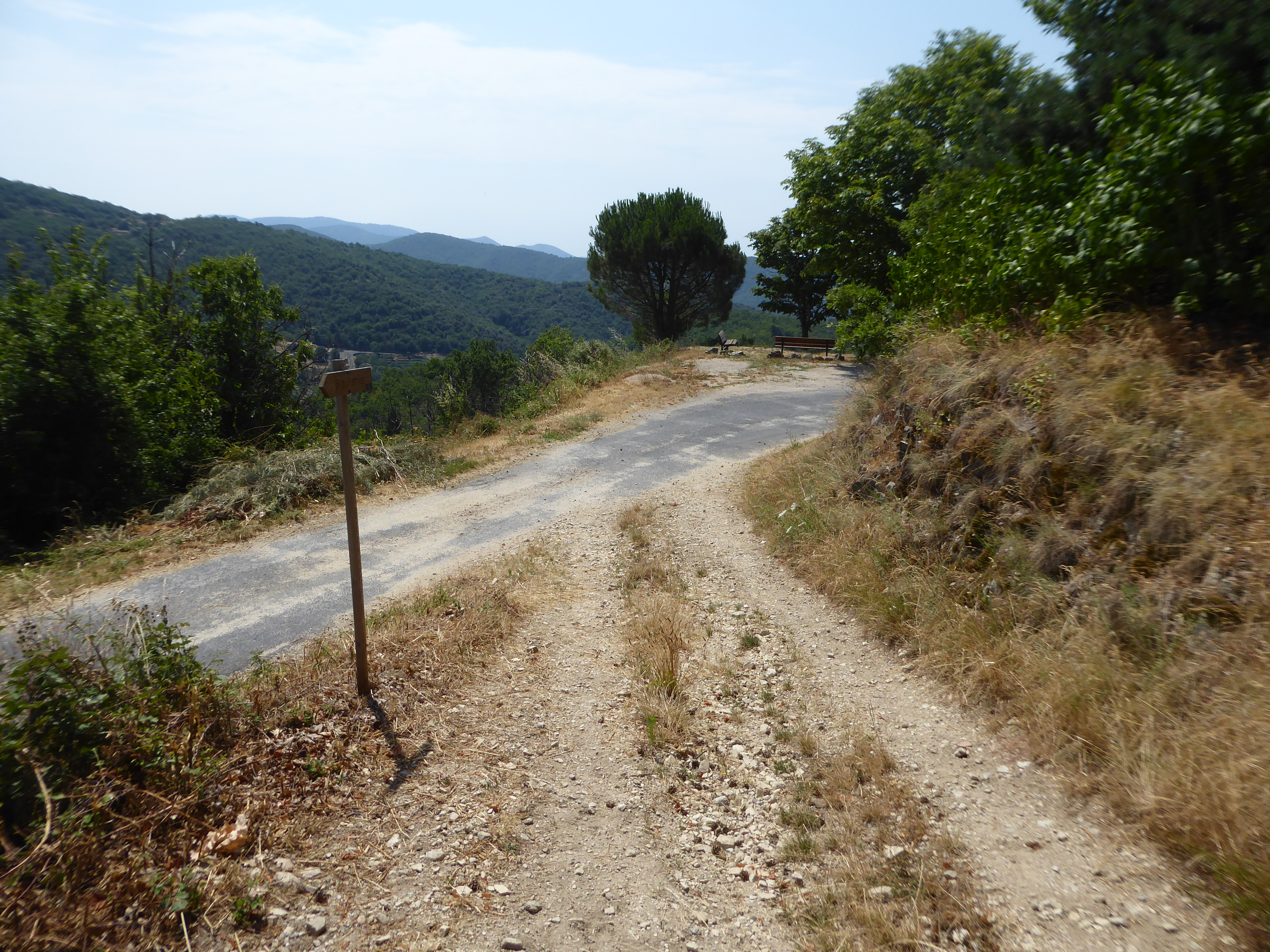 Puech Sigal (645 m) : suivre le chemin partant légèrement sur la droite direction Pont Moutonnier, balisé en rouge et blanc