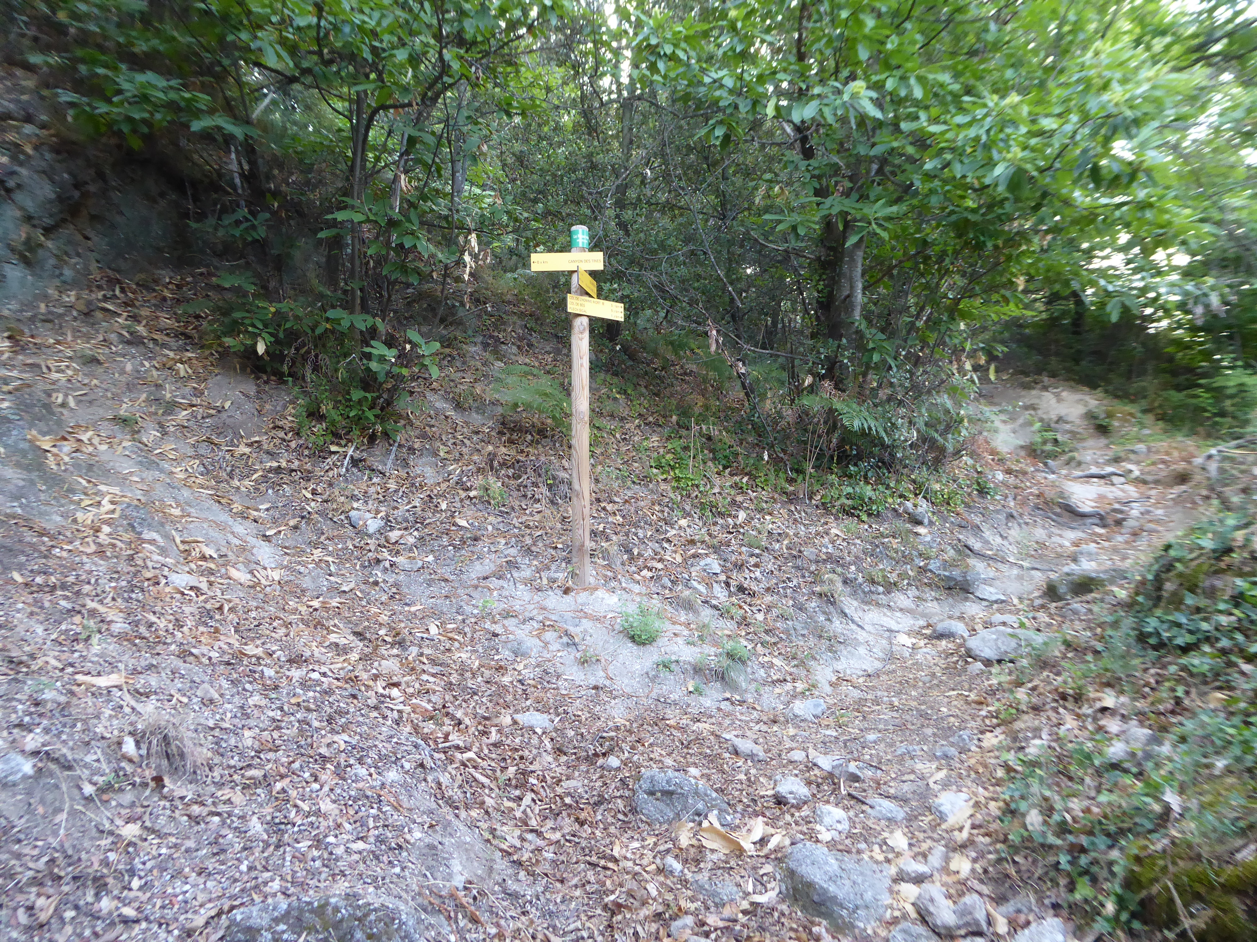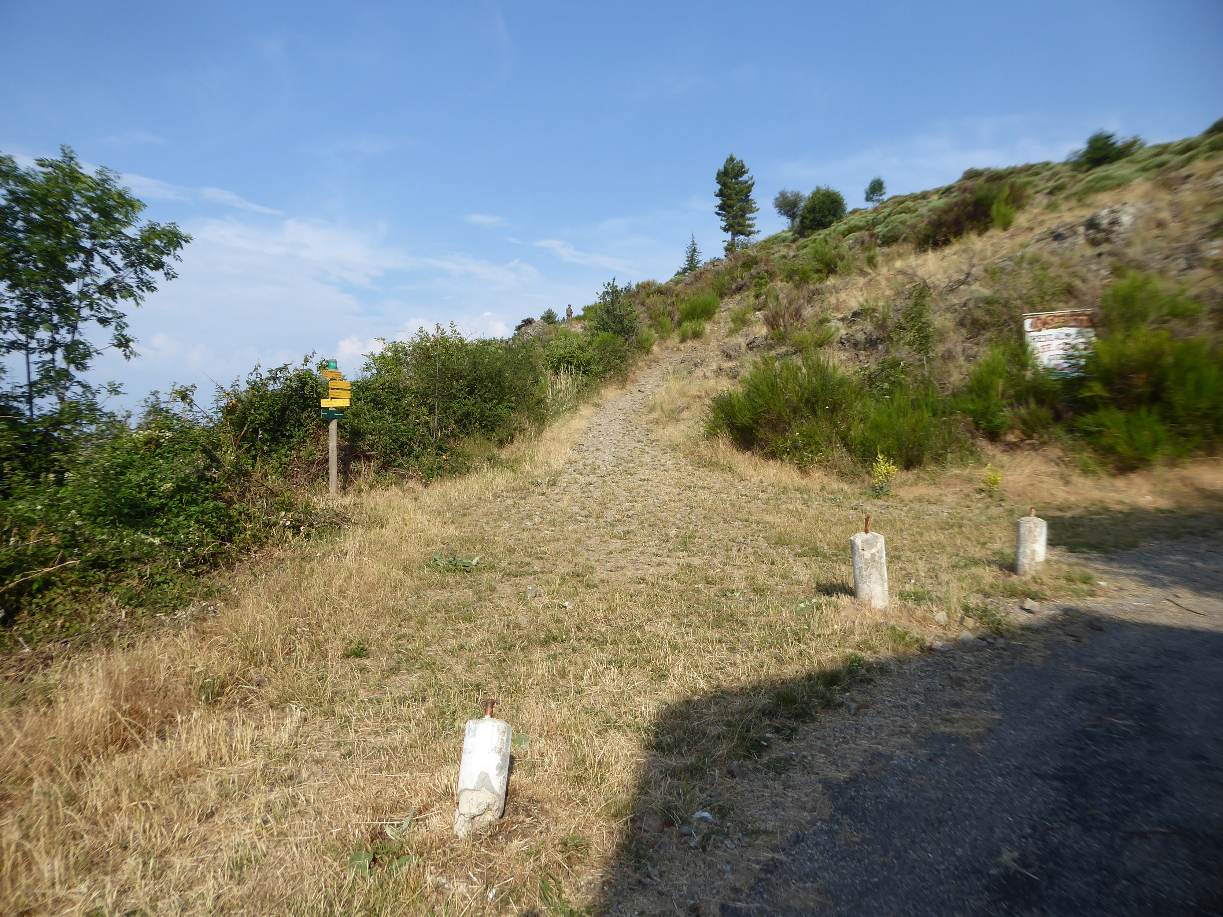 A ce croisement situé à proximité du hameau d'Ardaillers (Mas Gilbert), suivre la route partant sur la droite direction Notre-Dame-de-Rouvière, balisé en rouge et blanc (attention, le tracé en rose sur la carte IGN ne correspond plus au tracé réel sur le terrain : bien suivre les balises rouges et blanches aux différentes intersections dans le hameau)