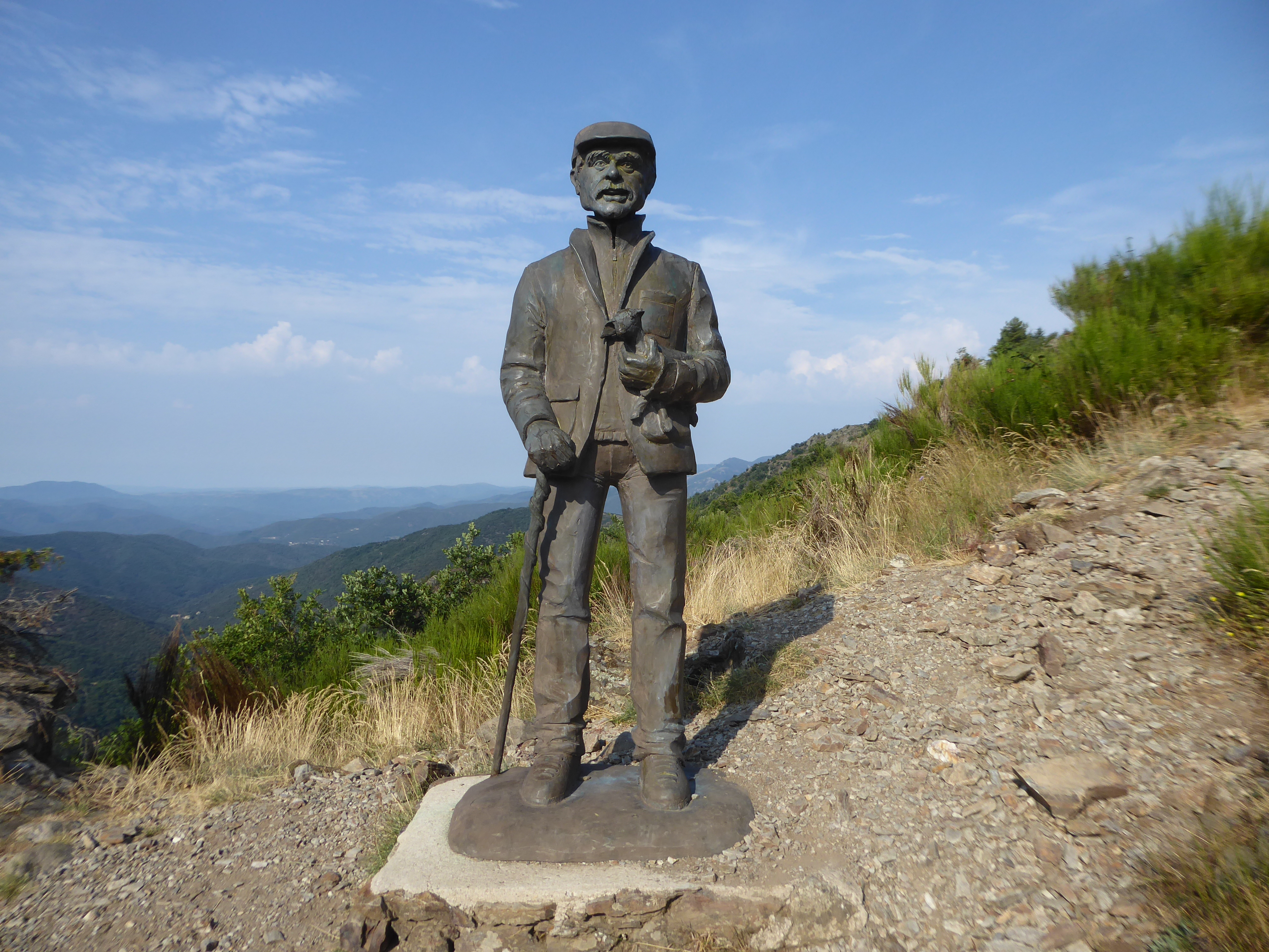 Statue en hommage aux bergers des Cévennes parcourant ces drailles lors des transhumances