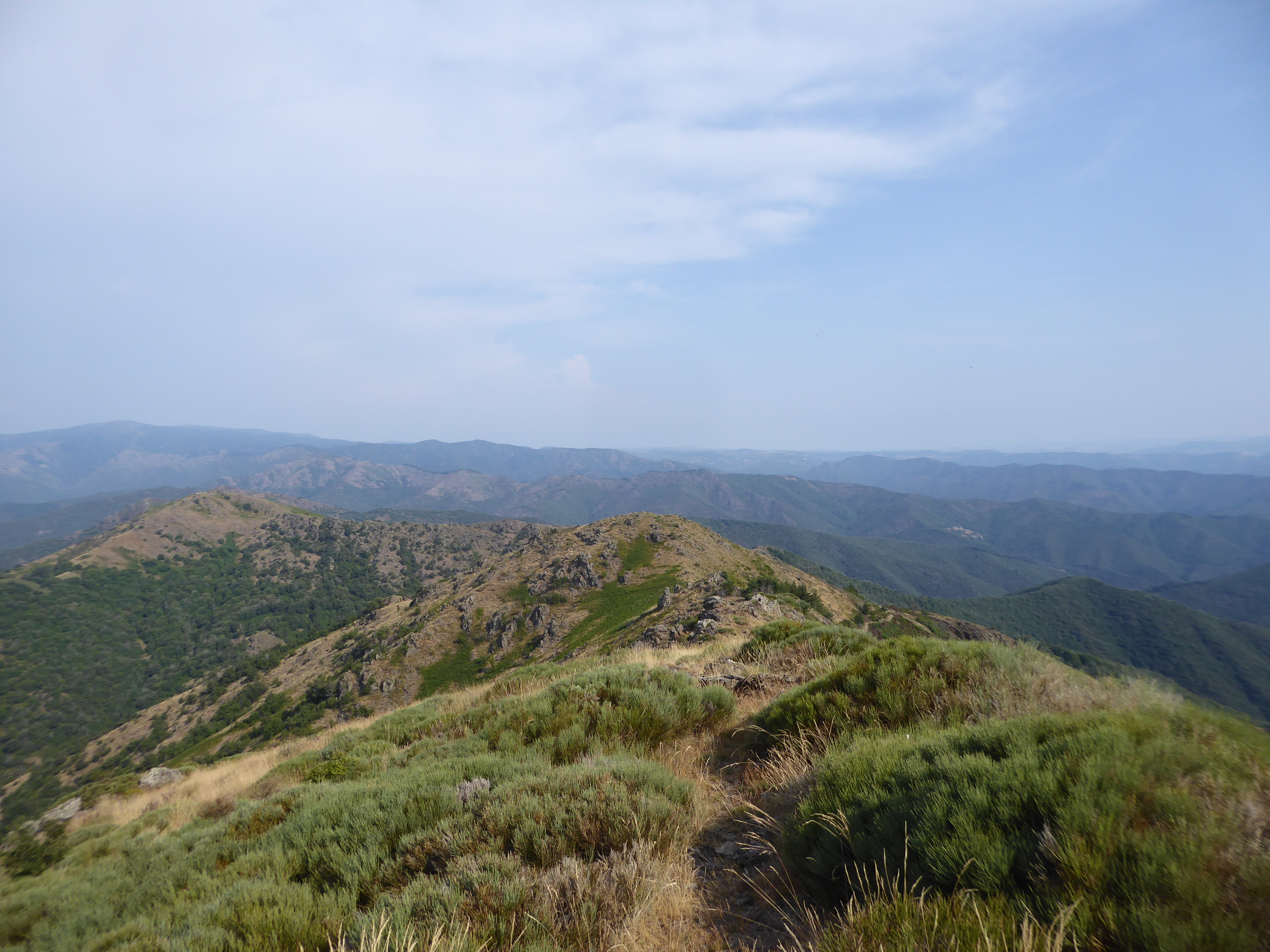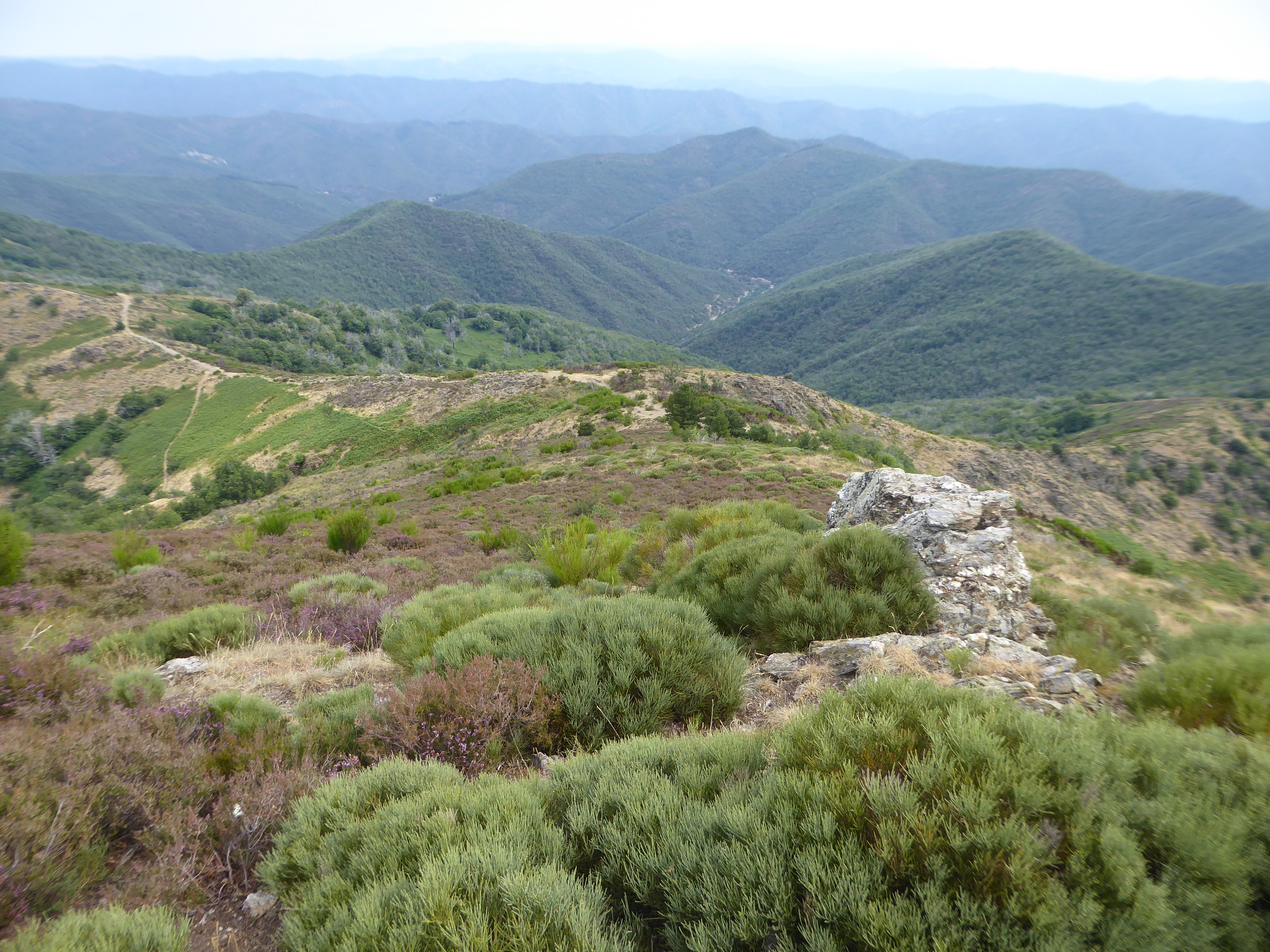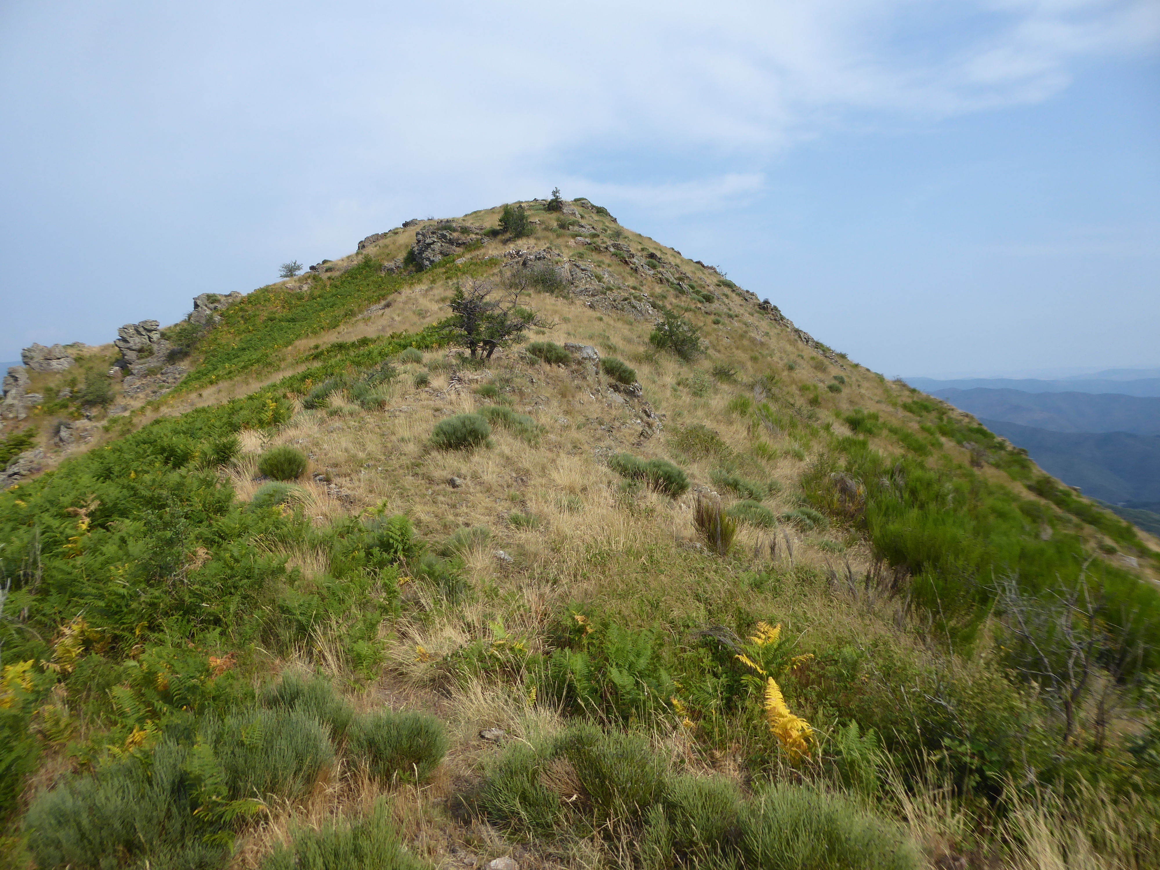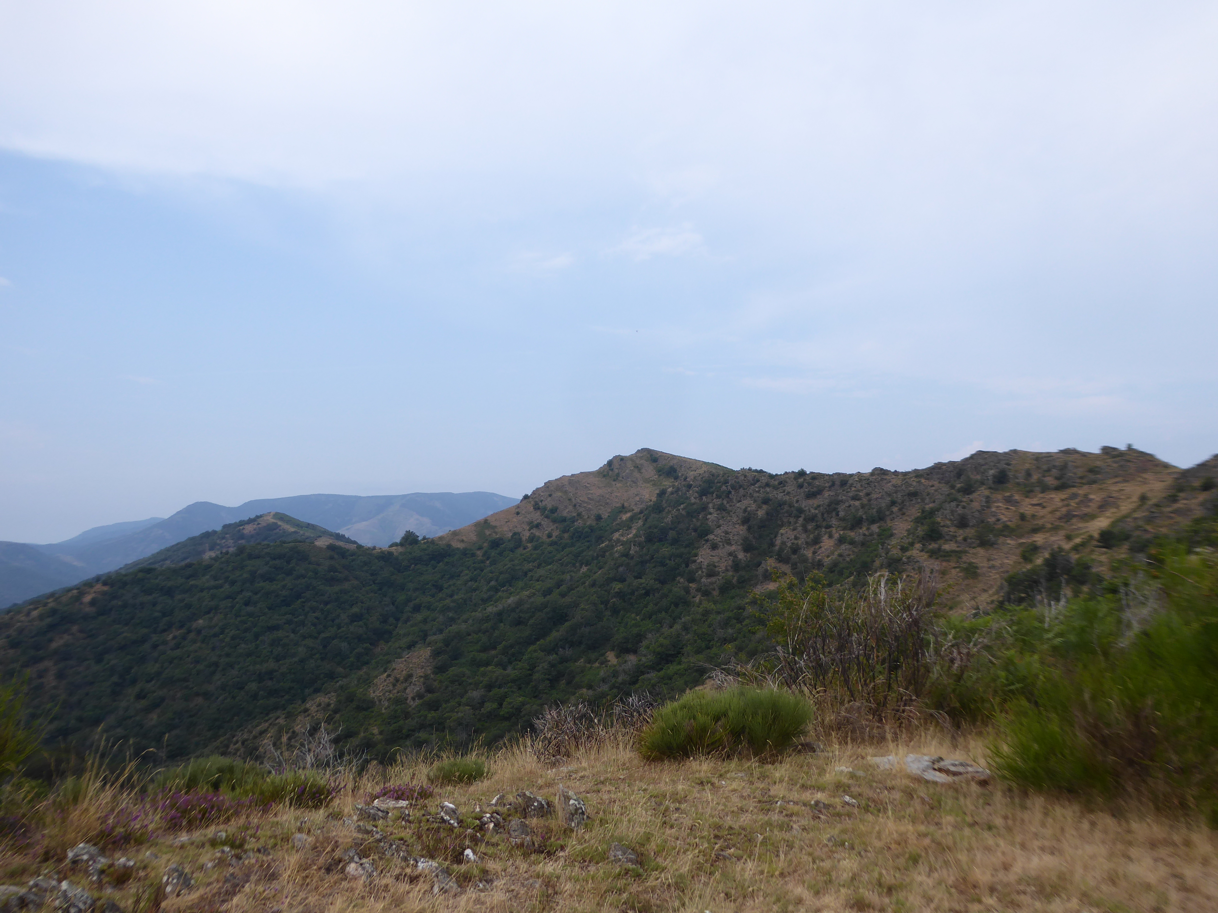 Arrivée au sommet de Lacam (1011 m) : belle vue sur la crête de la Serre de Borgne et celle du Fagéas dominant la Vallée Borgne ... les autres sommets des Cévennes gardoises, lozériennes et héraultaises sont également visibles !