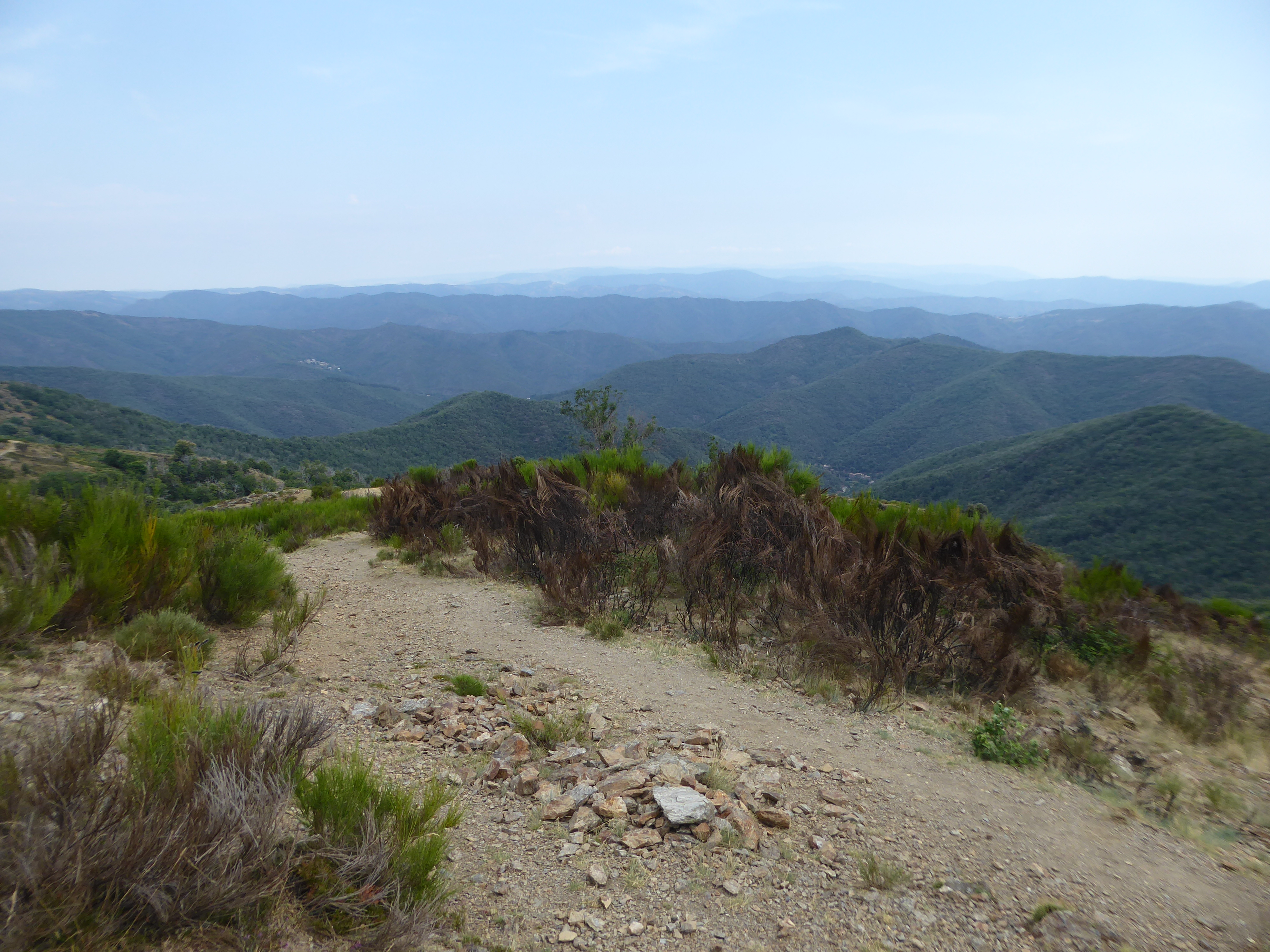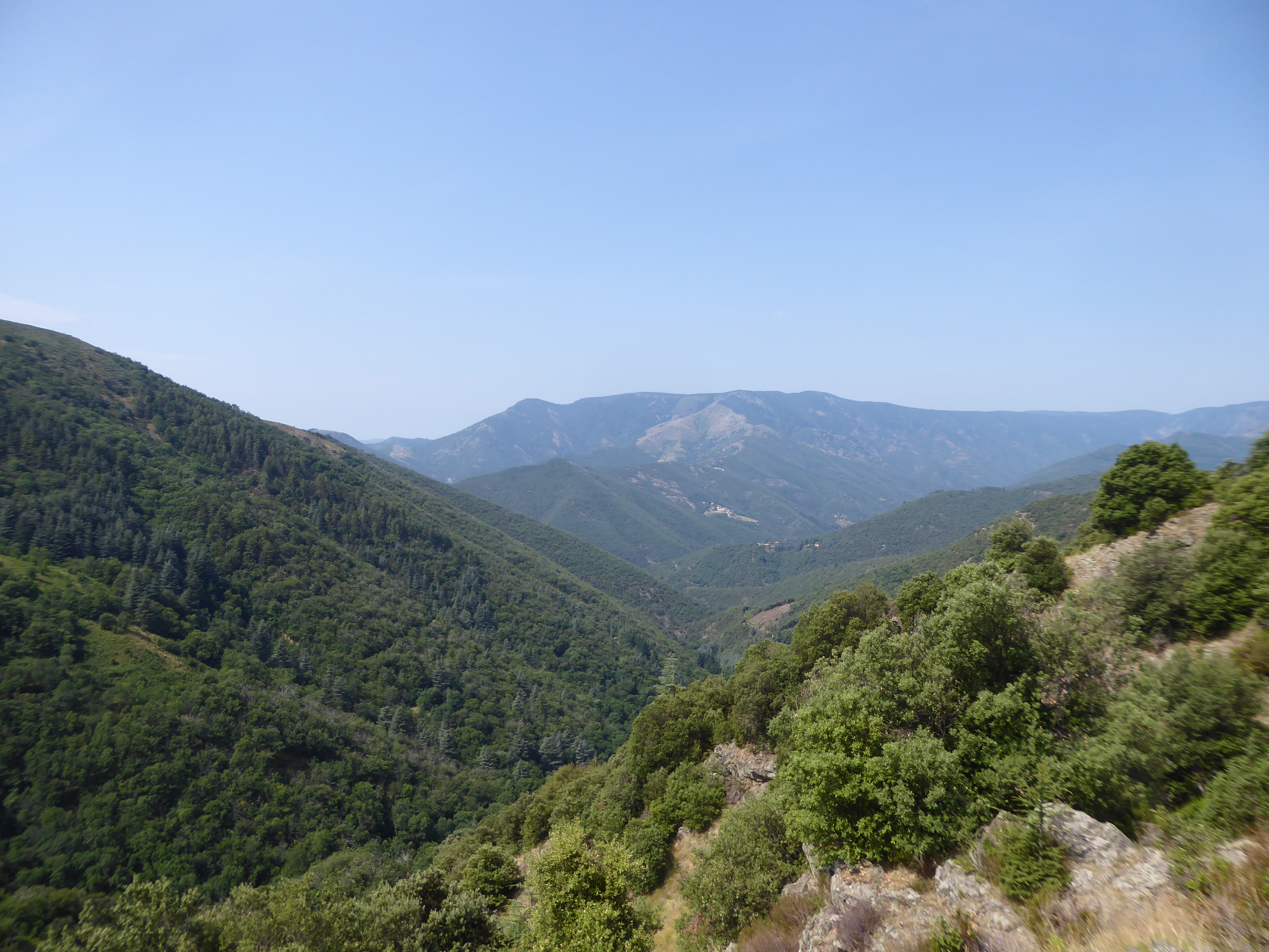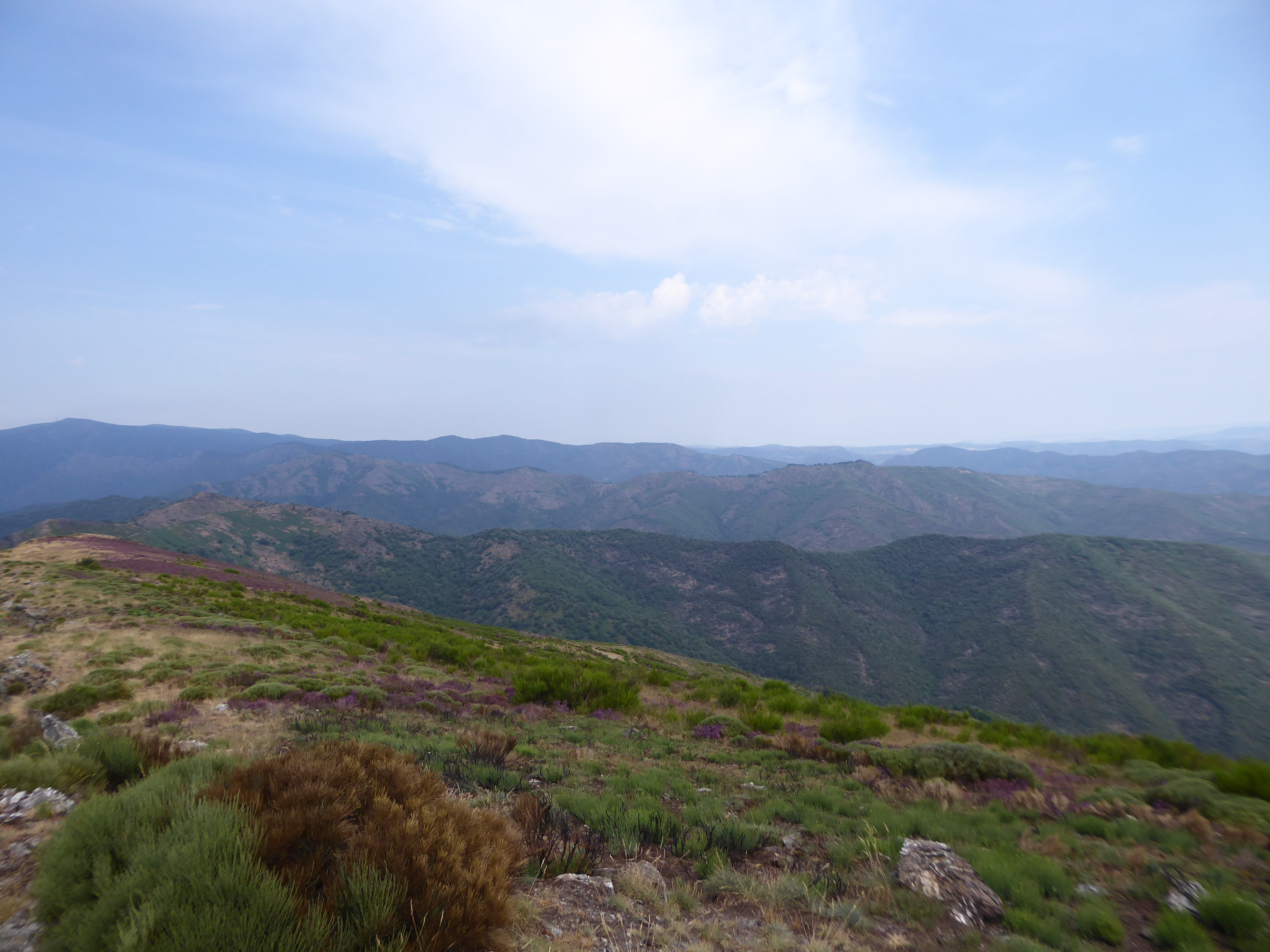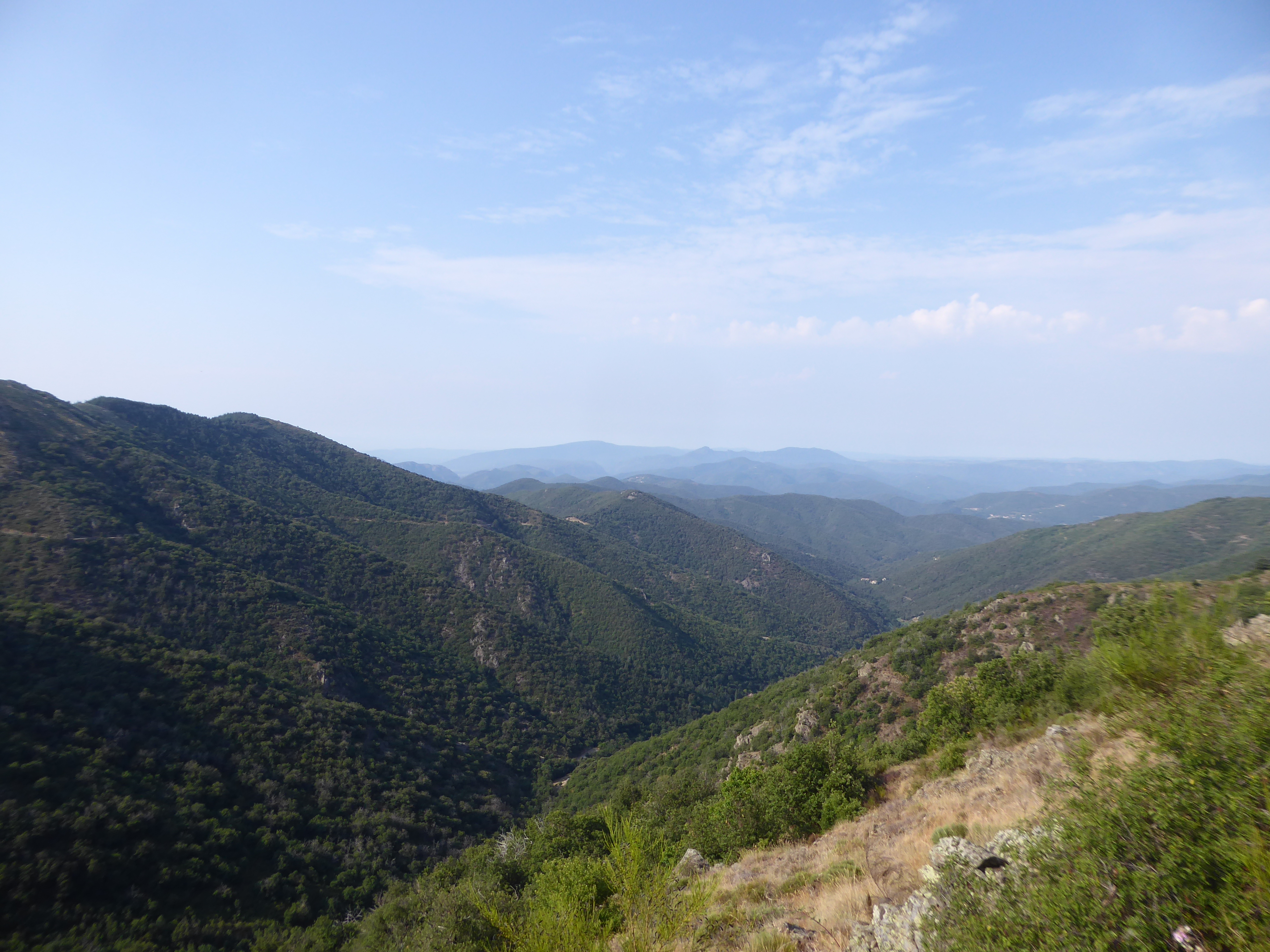Arrivée au sommet de Lacam (1011 m) : belle vue sur la crête de la Serre de Borgne et celle du Fagéas dominant la Vallée Borgne ... les autres sommets des Cévennes gardoises, lozériennes et héraultaises sont également visibles !