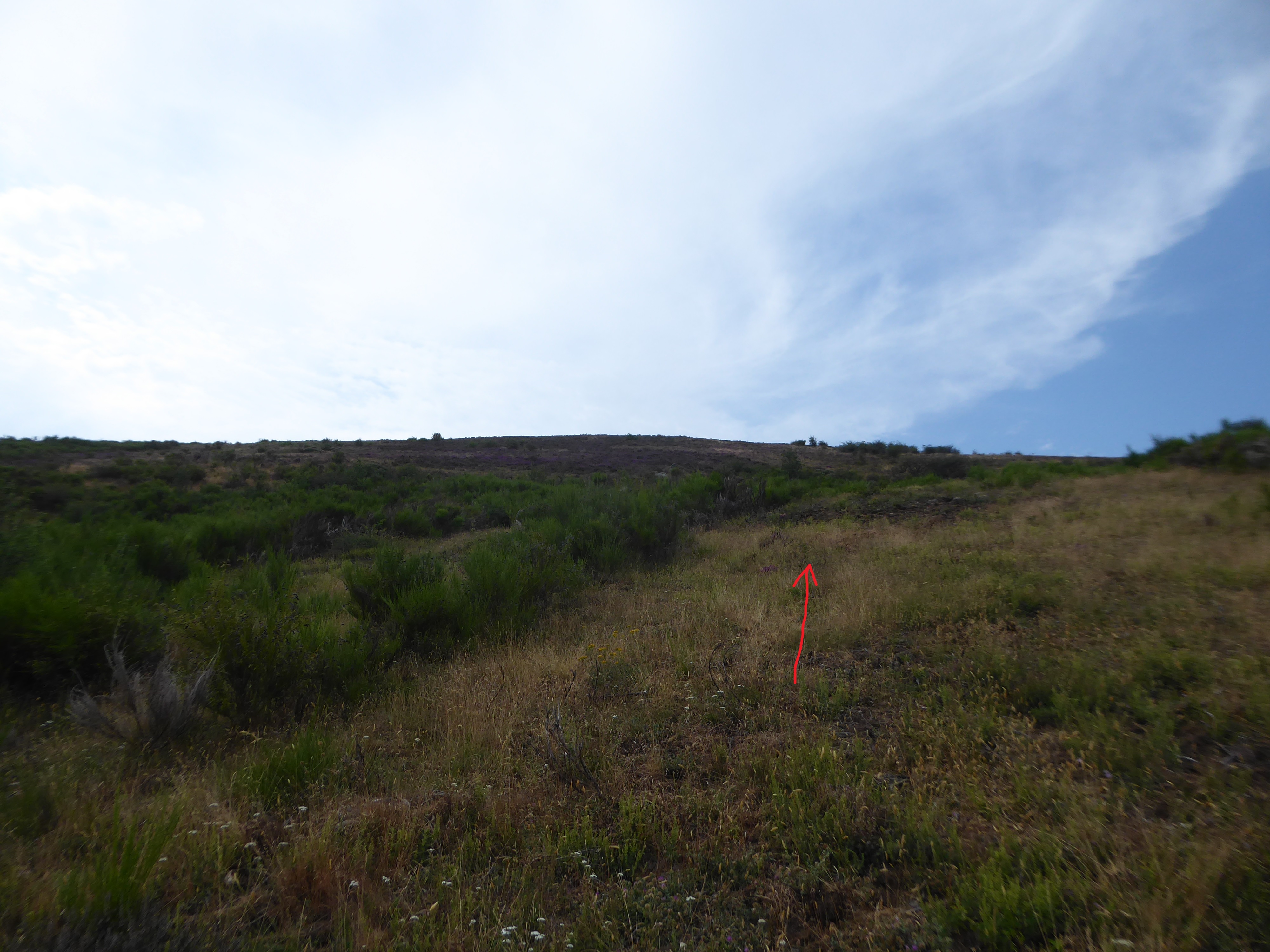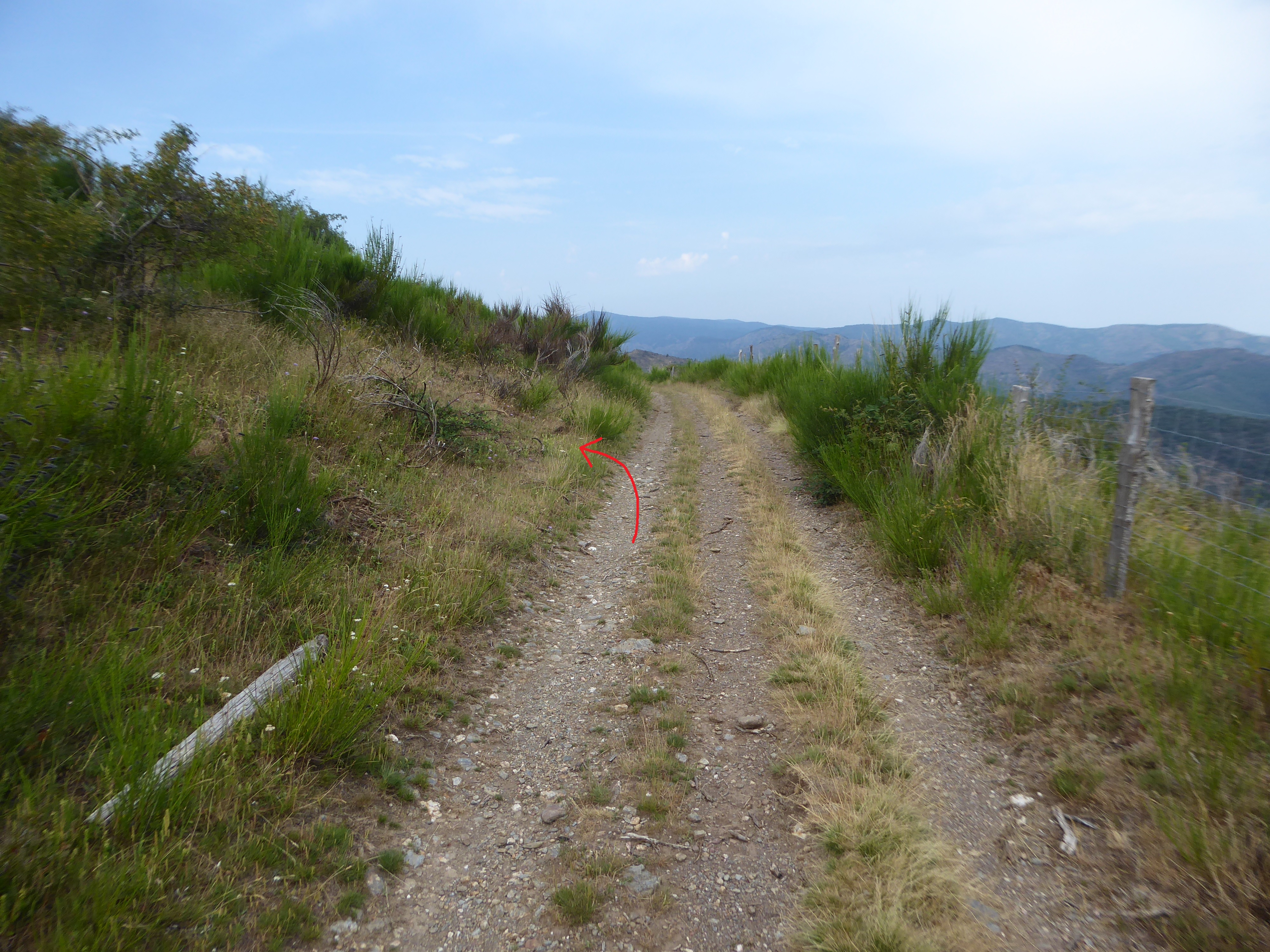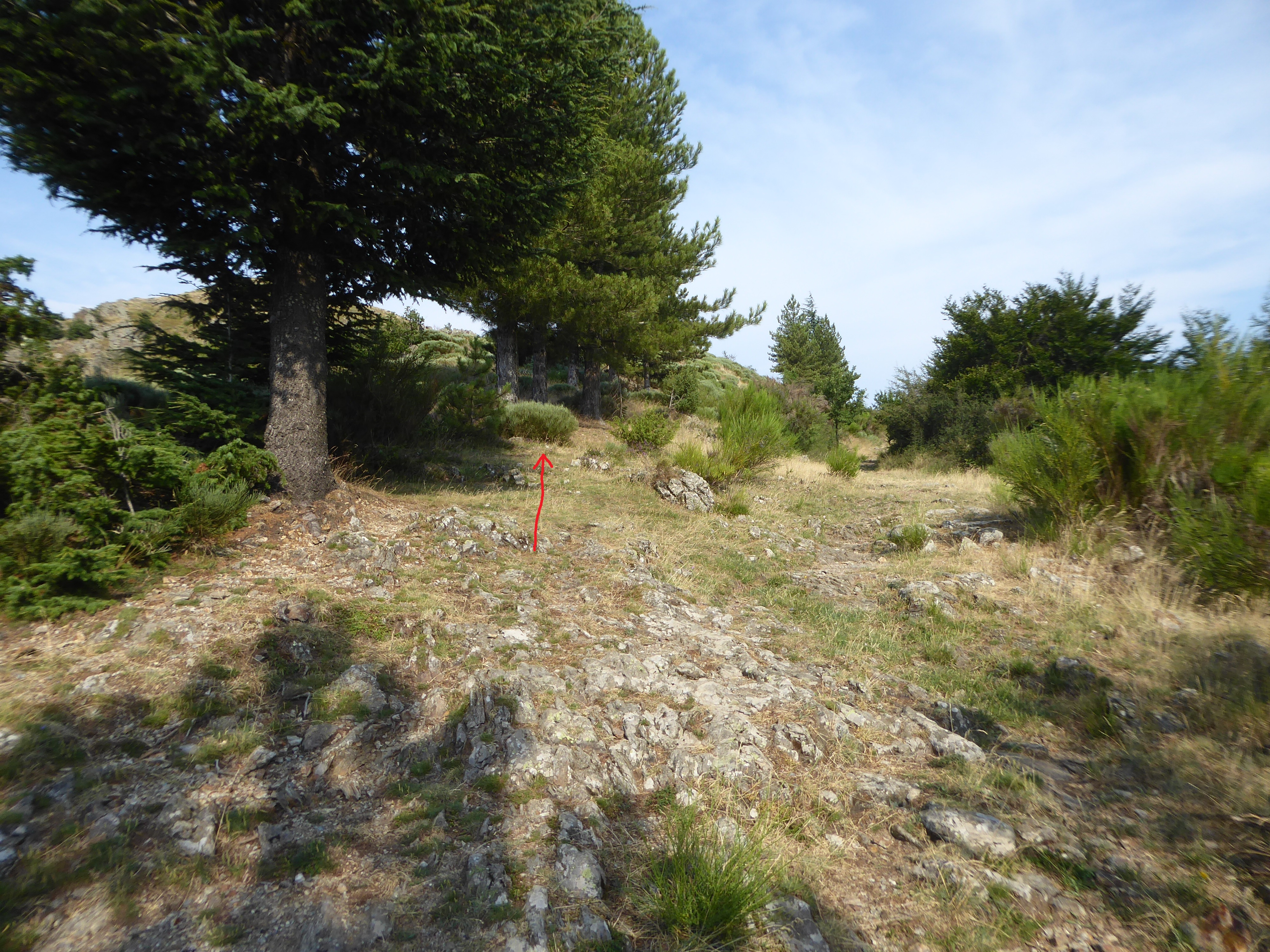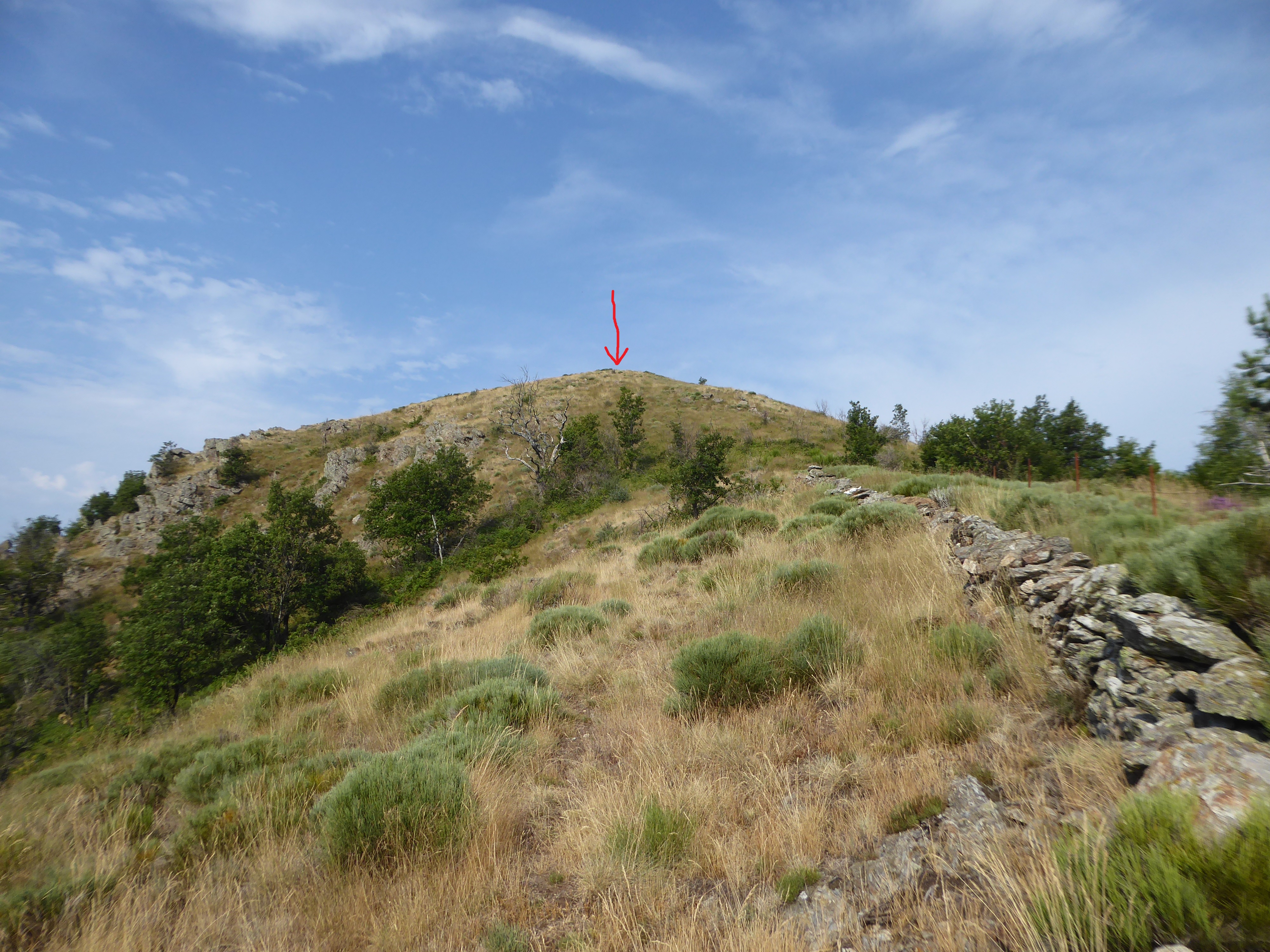 Au niveau de ce piquet couché (1400 mètres après le lieu-dit "Crouzinal"), monter à vue (hors sentier jusqu'au sommet) sur la gauche pour rejoindre le sommet de Lacam direction Lacam, aucun balisage dorénavant
