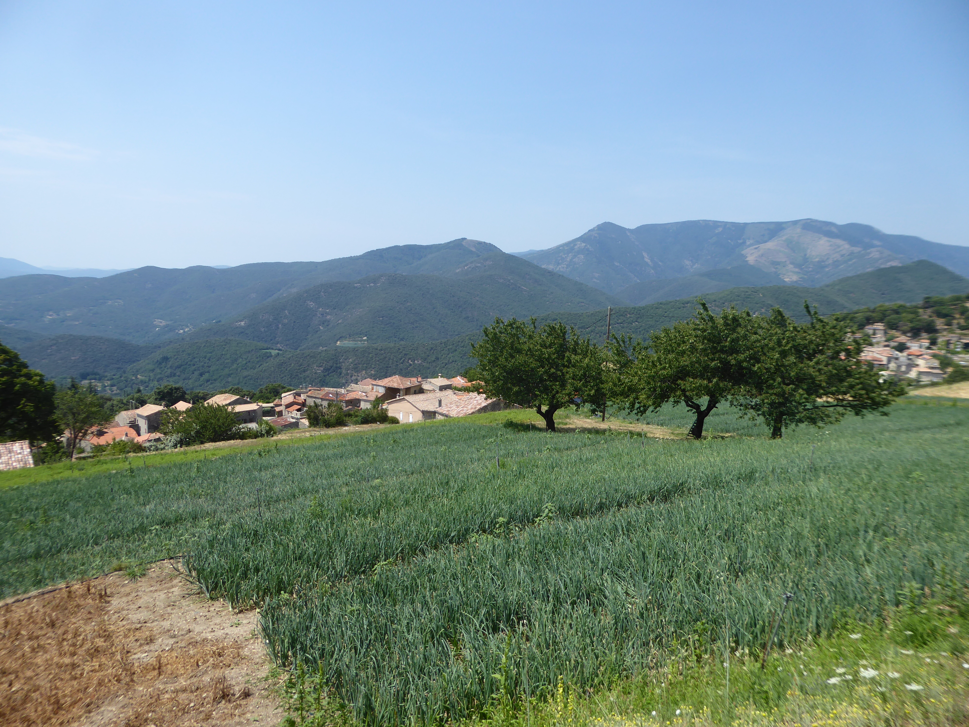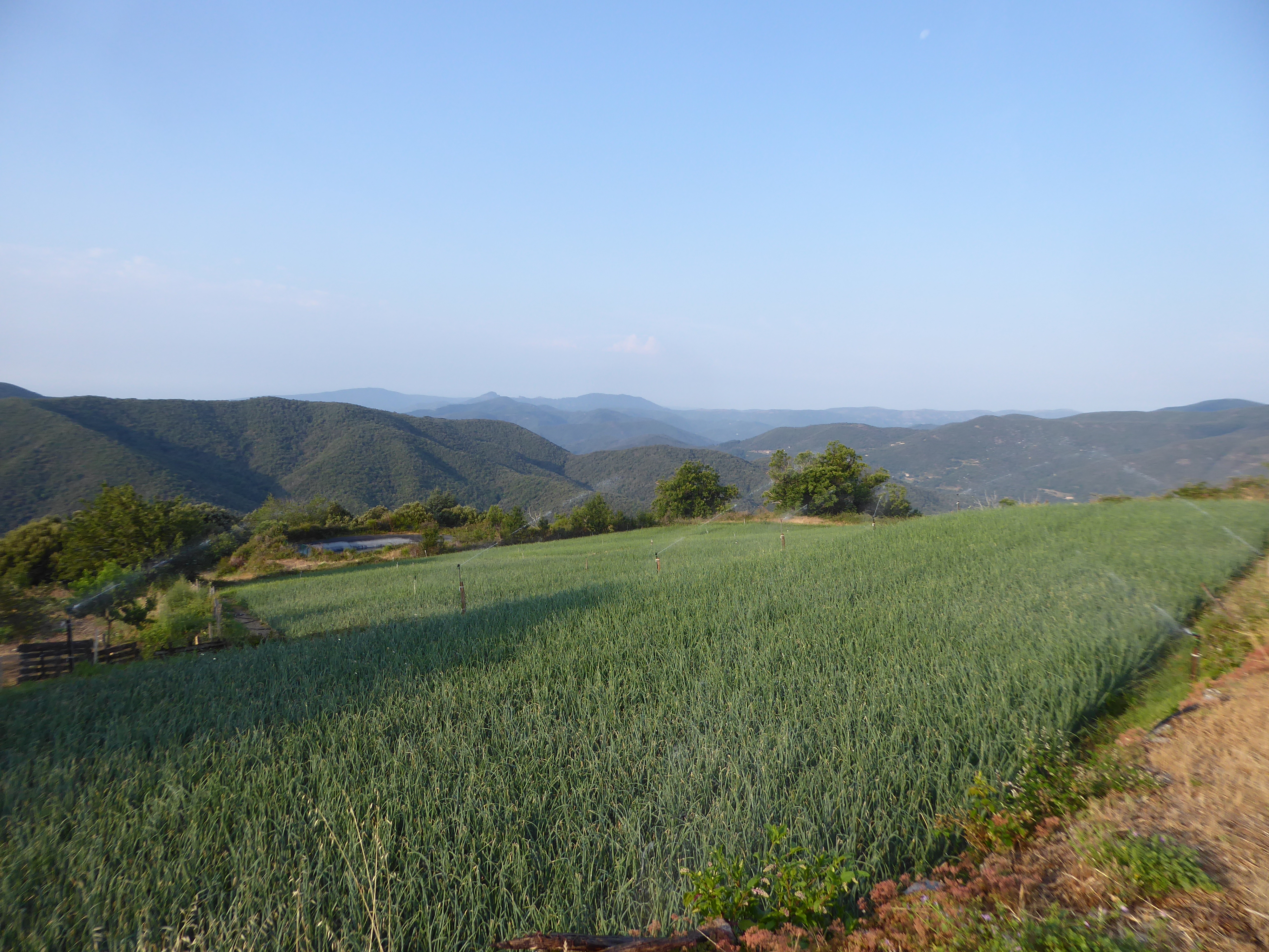 Cultures d'oignons doux des Cévennes ... au loin, la Montagne de la Séranne