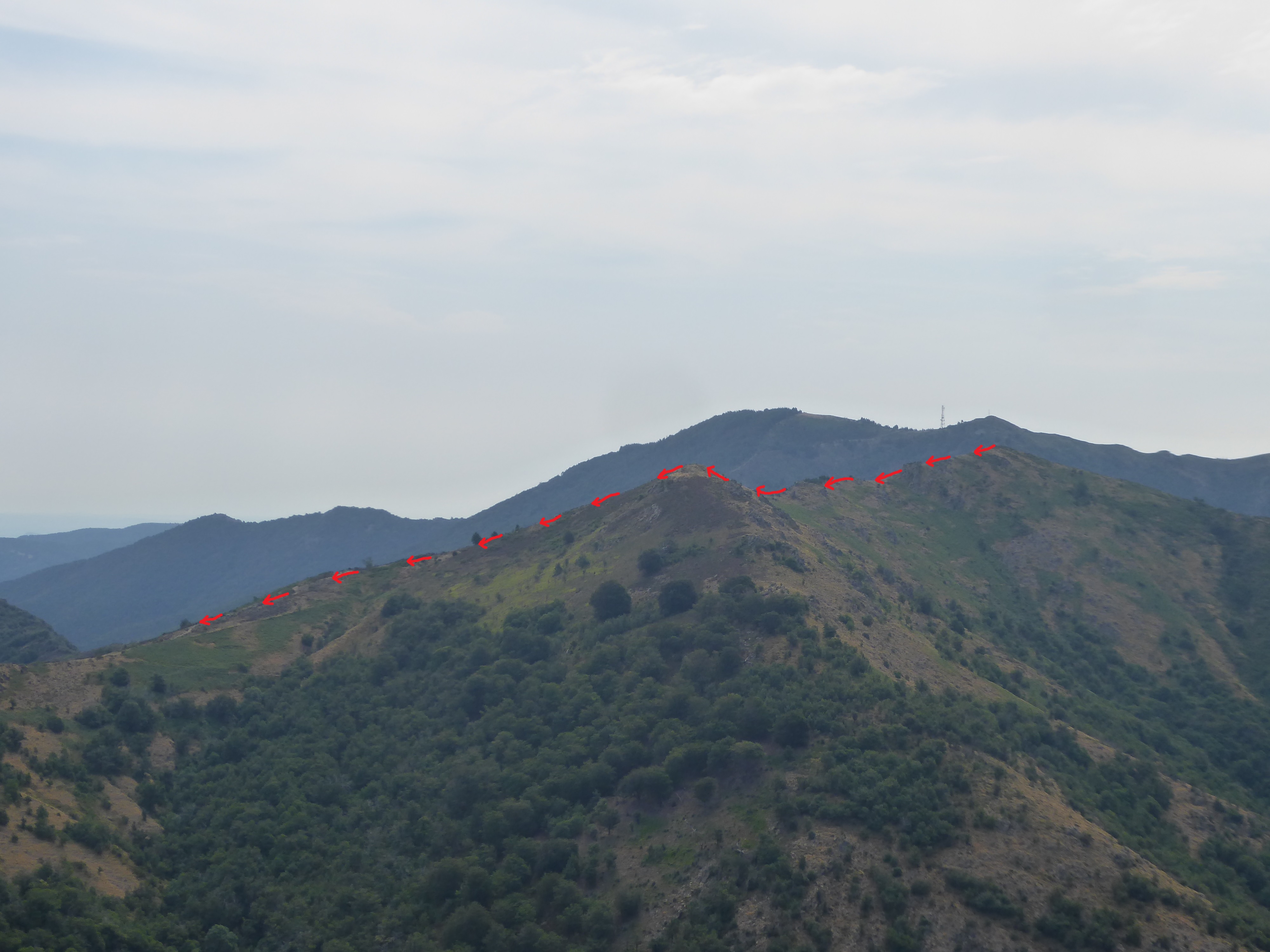 Belle vue d'ensemble sur la descente hors sentier de la Serre de Borgne pour rejoindre le GR