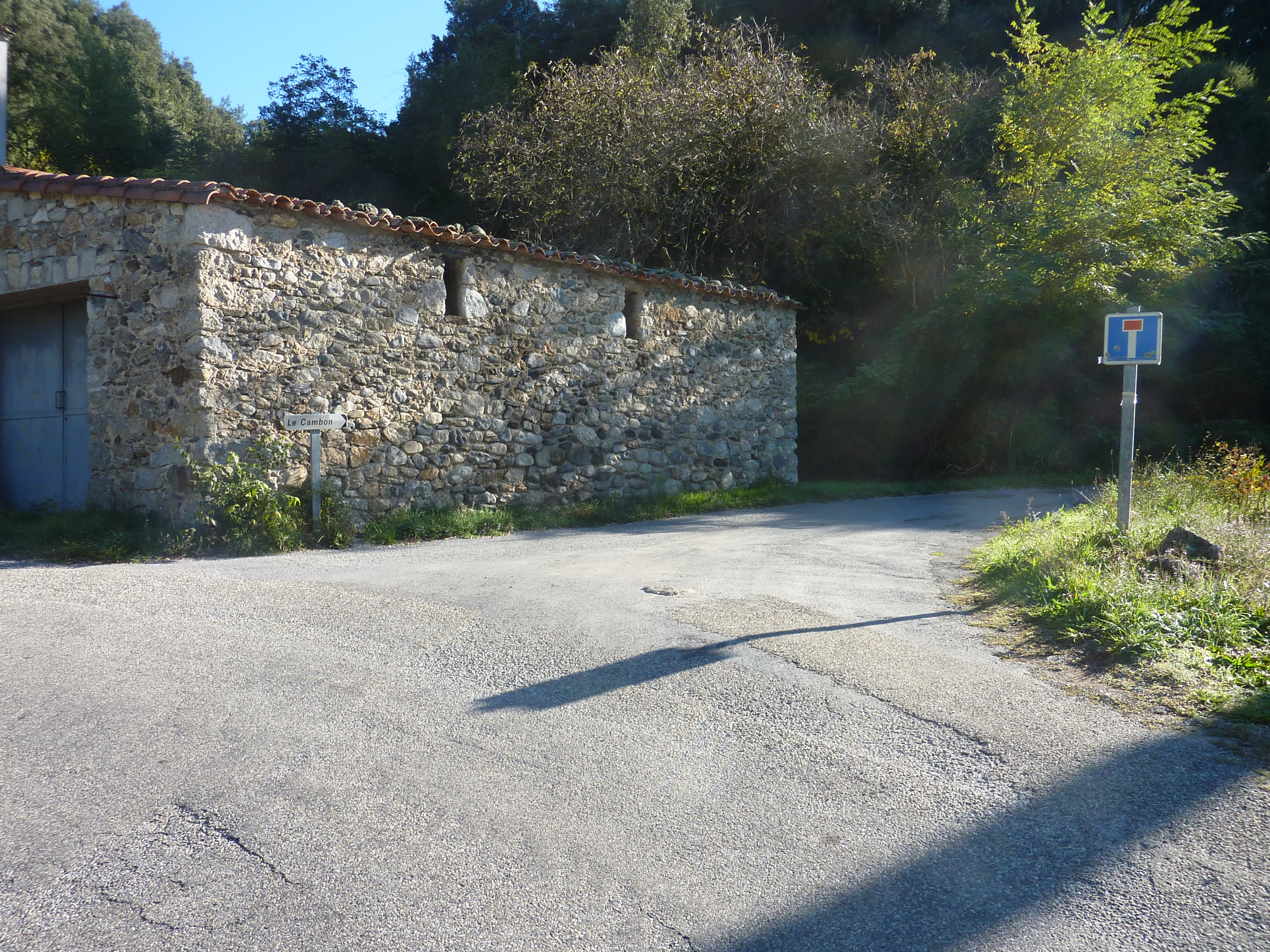 A cette intersection (50 mètres après le lieu-dit "Peyregrosse"), suivre la route partant sur la droite vers le lieu-dit "le Cambon" direction Valbonne, balisé en jaune désuet