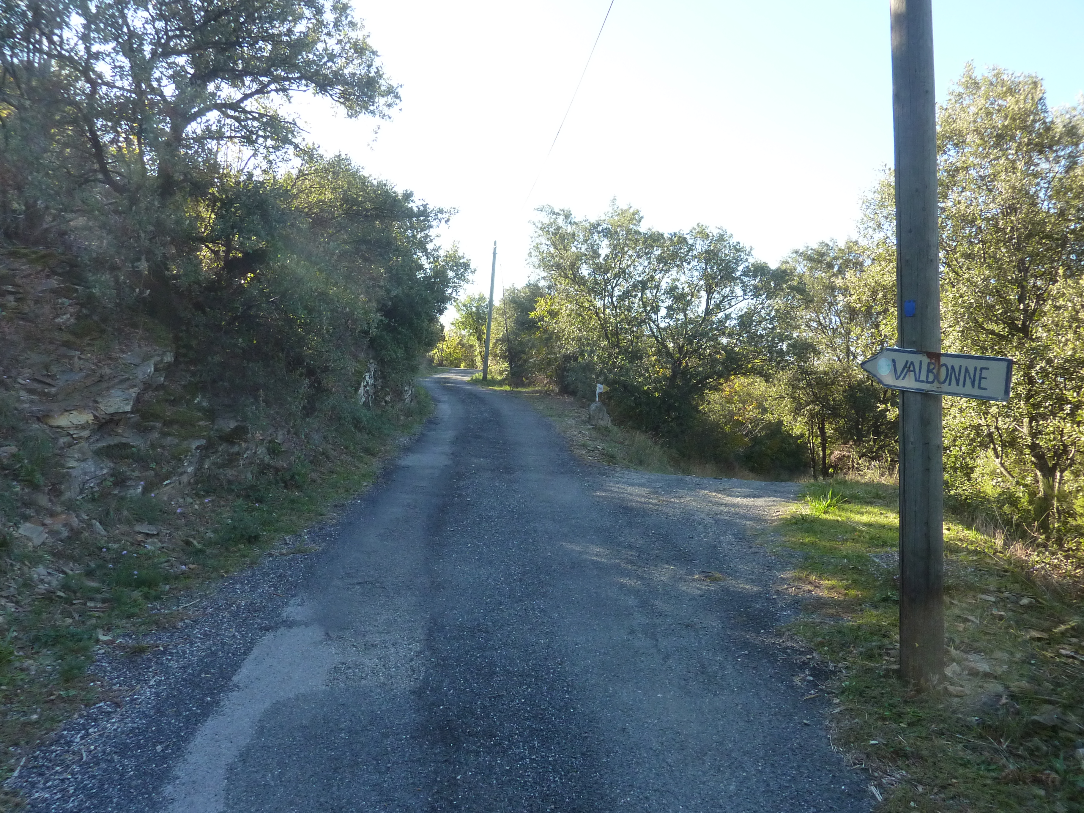 A cette intersection située juste après le hameau de Valbonne Bas (1200 mètres après le précédent), suivre la route partant sur la droite direction Col de Peyreraube, balisé en jaune dorénavant (la route arrivant de la gauche est le sentier balisé en jaune venant de Peyregrosse)