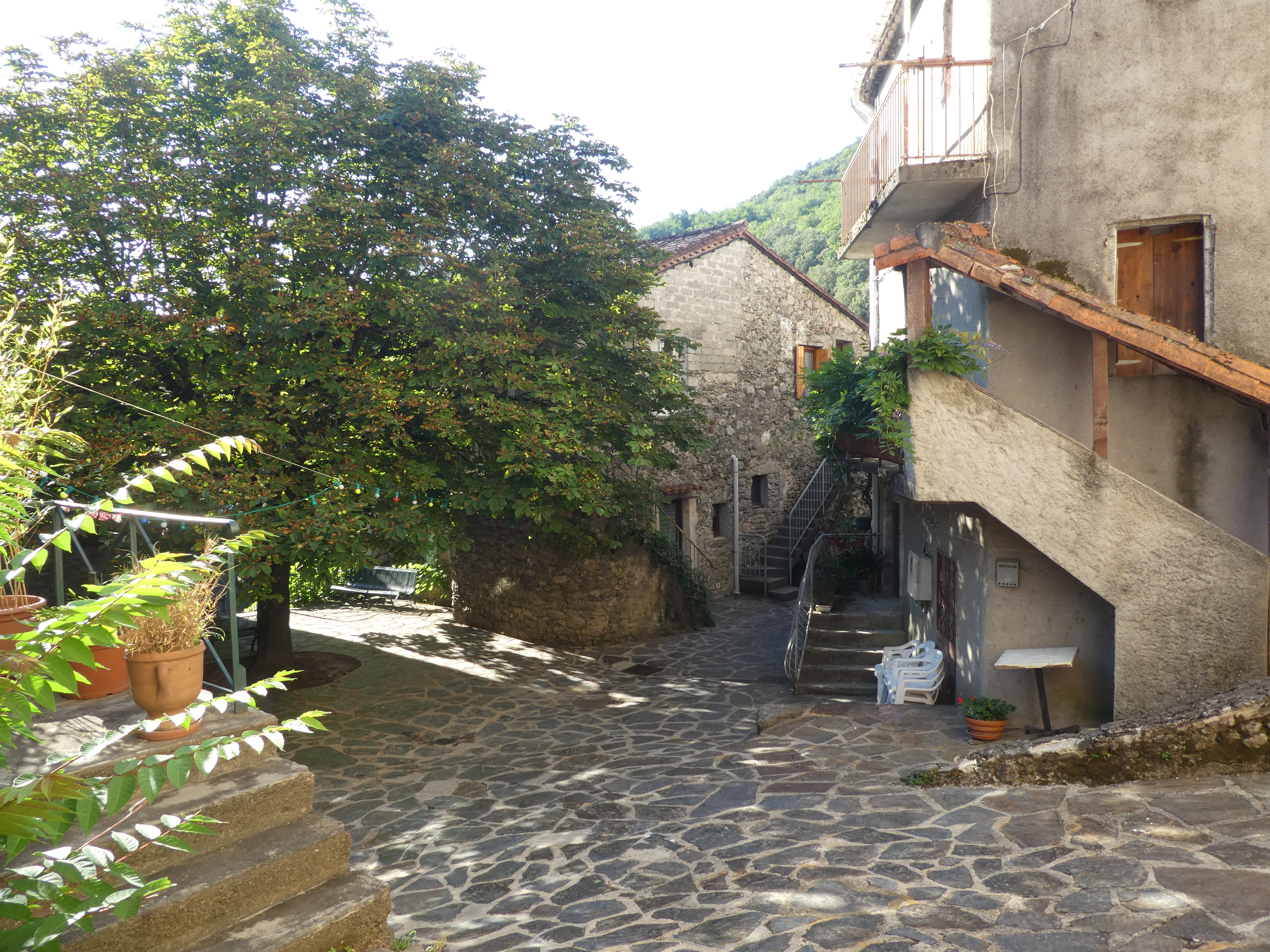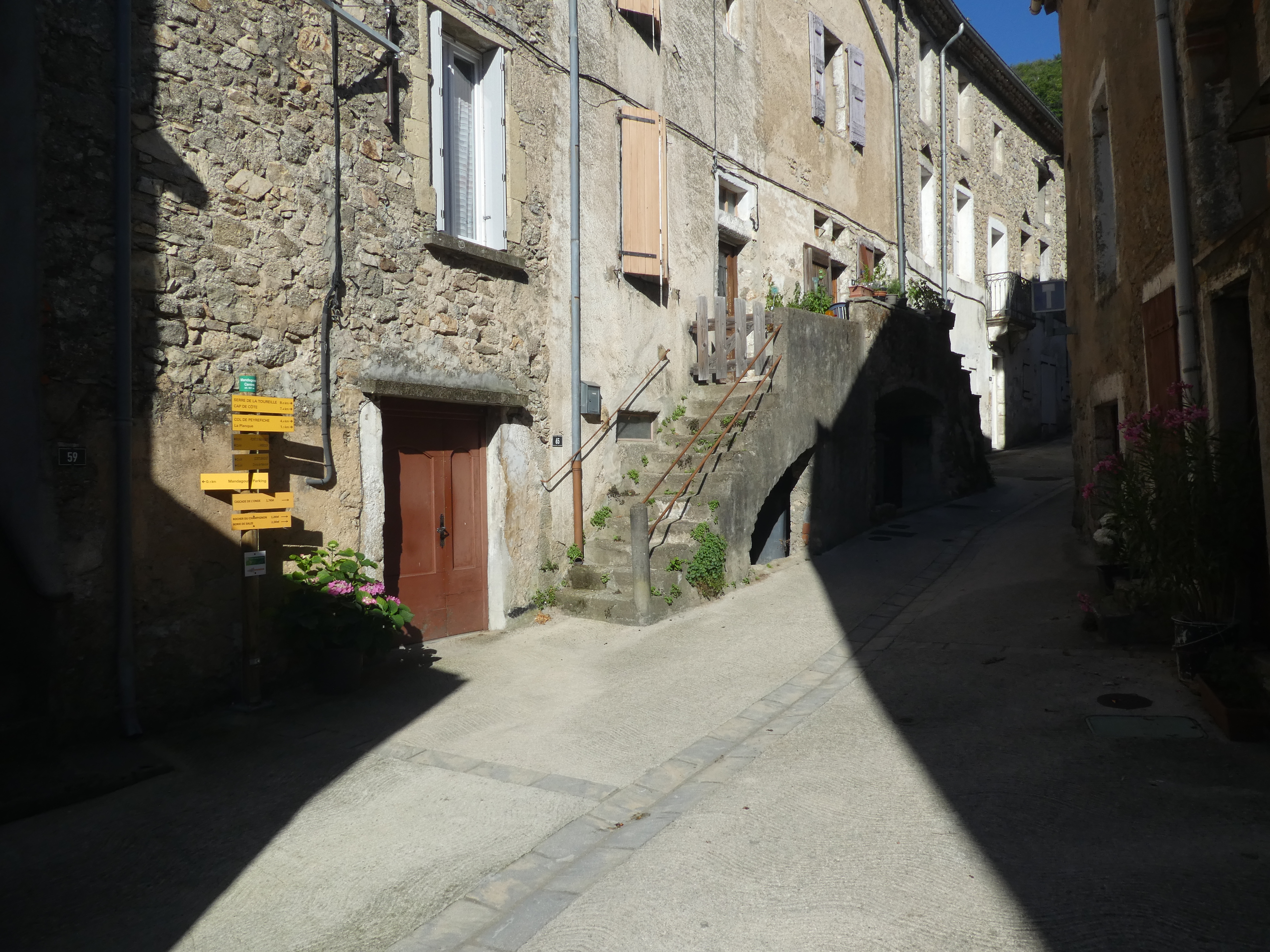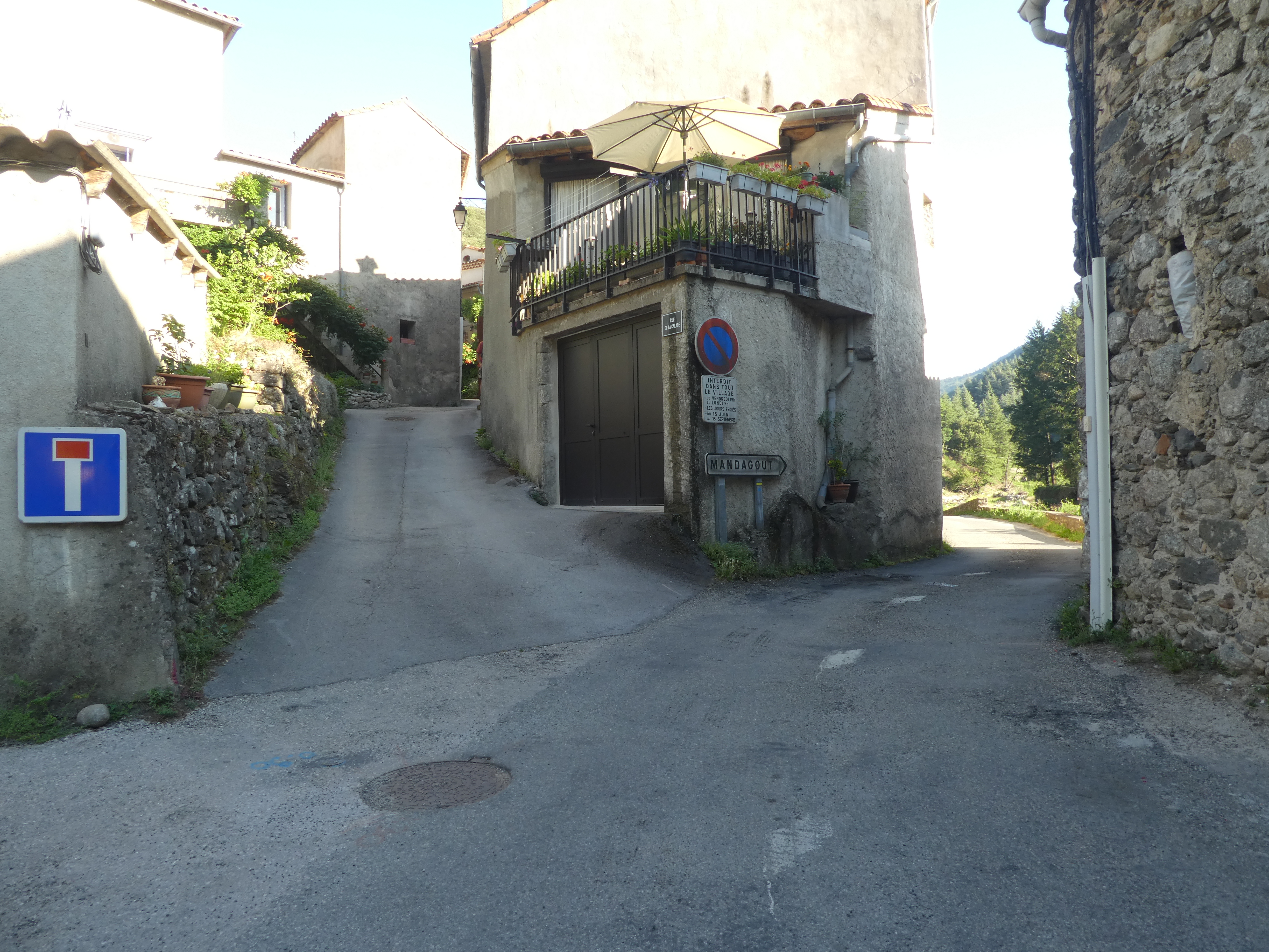 Mandagout - Centre (497 m) : suivre la ruelle partant légèrement sur la droite direction Col de Peyrefiche, balisé en jaune