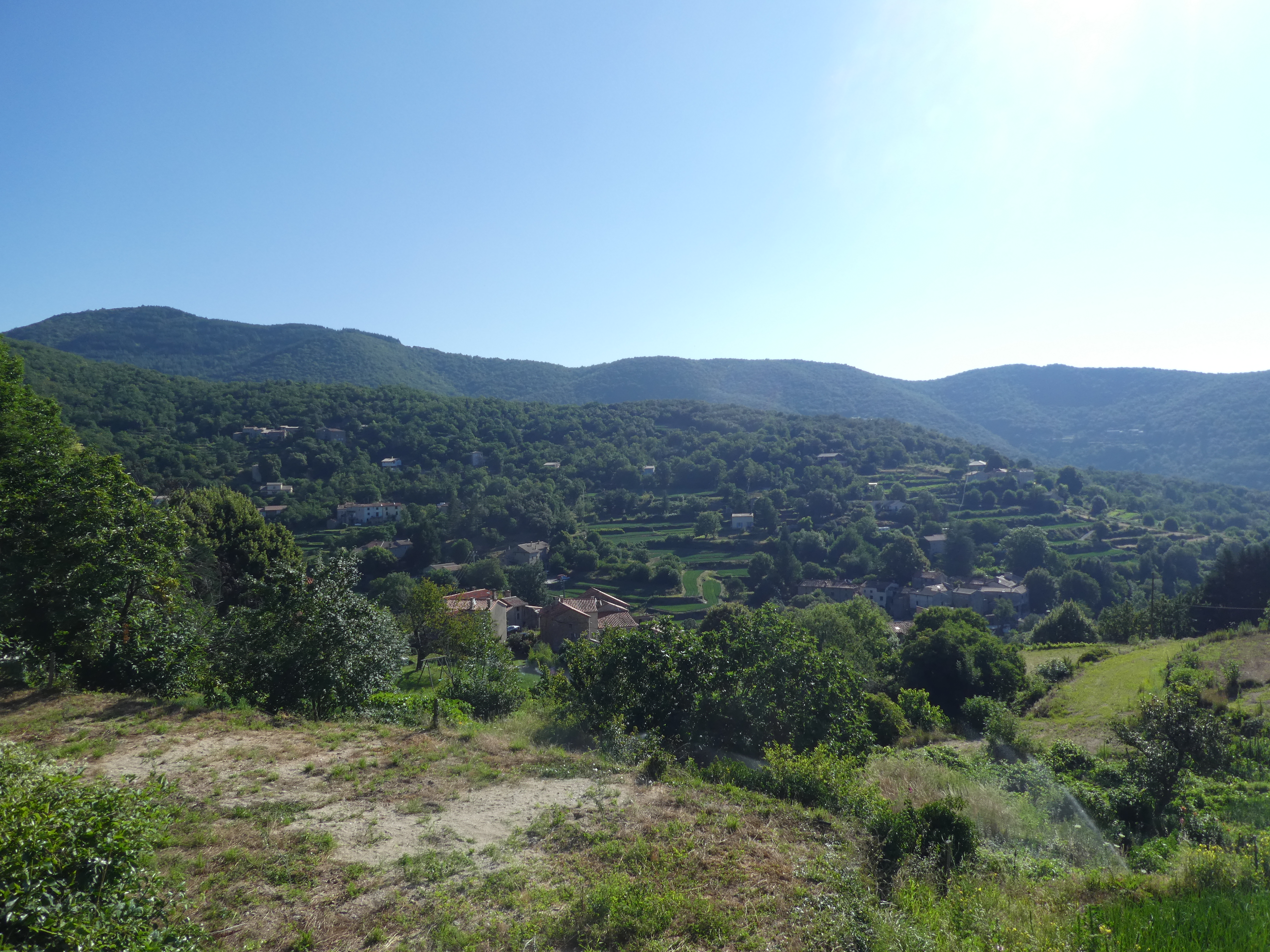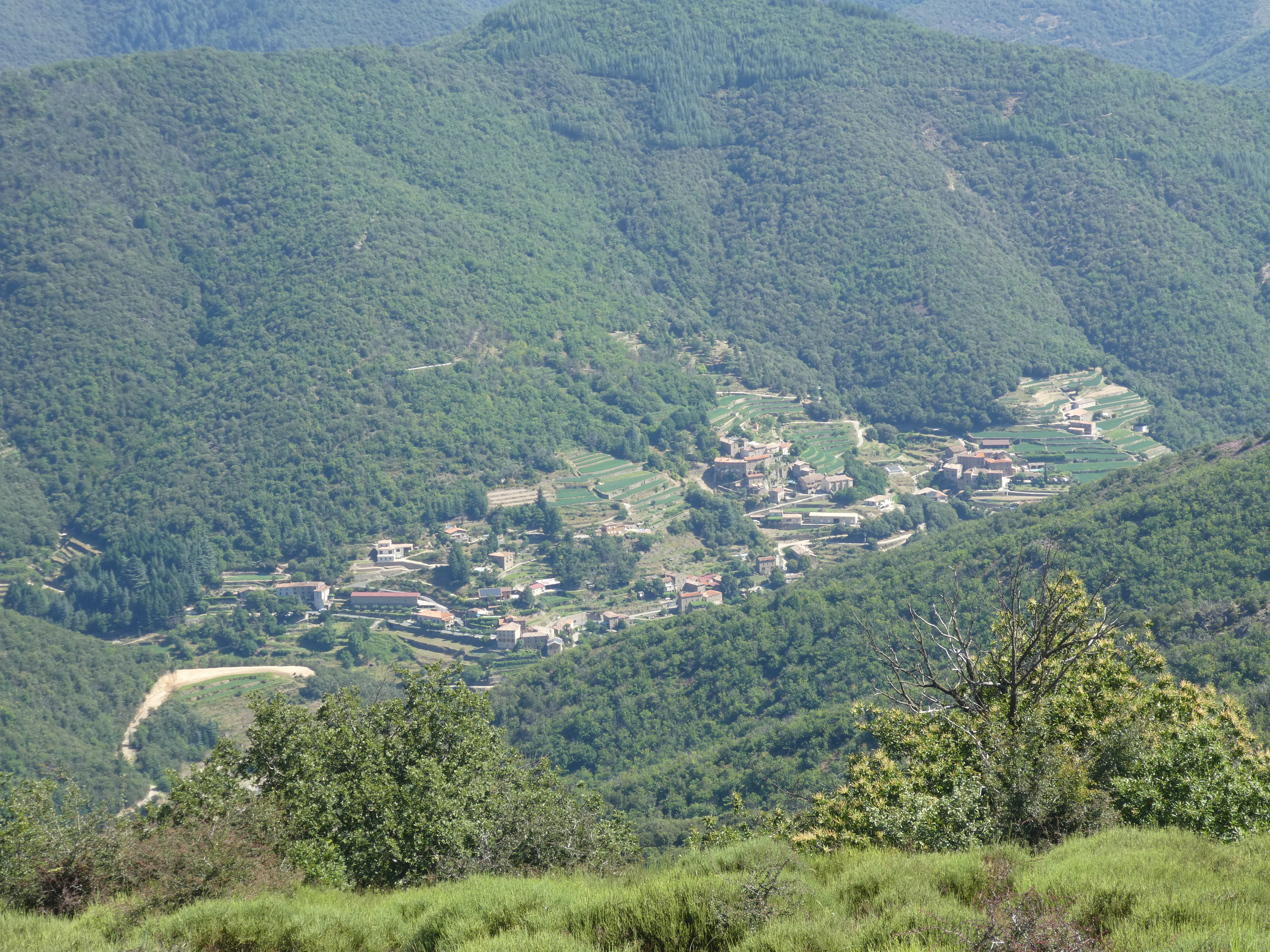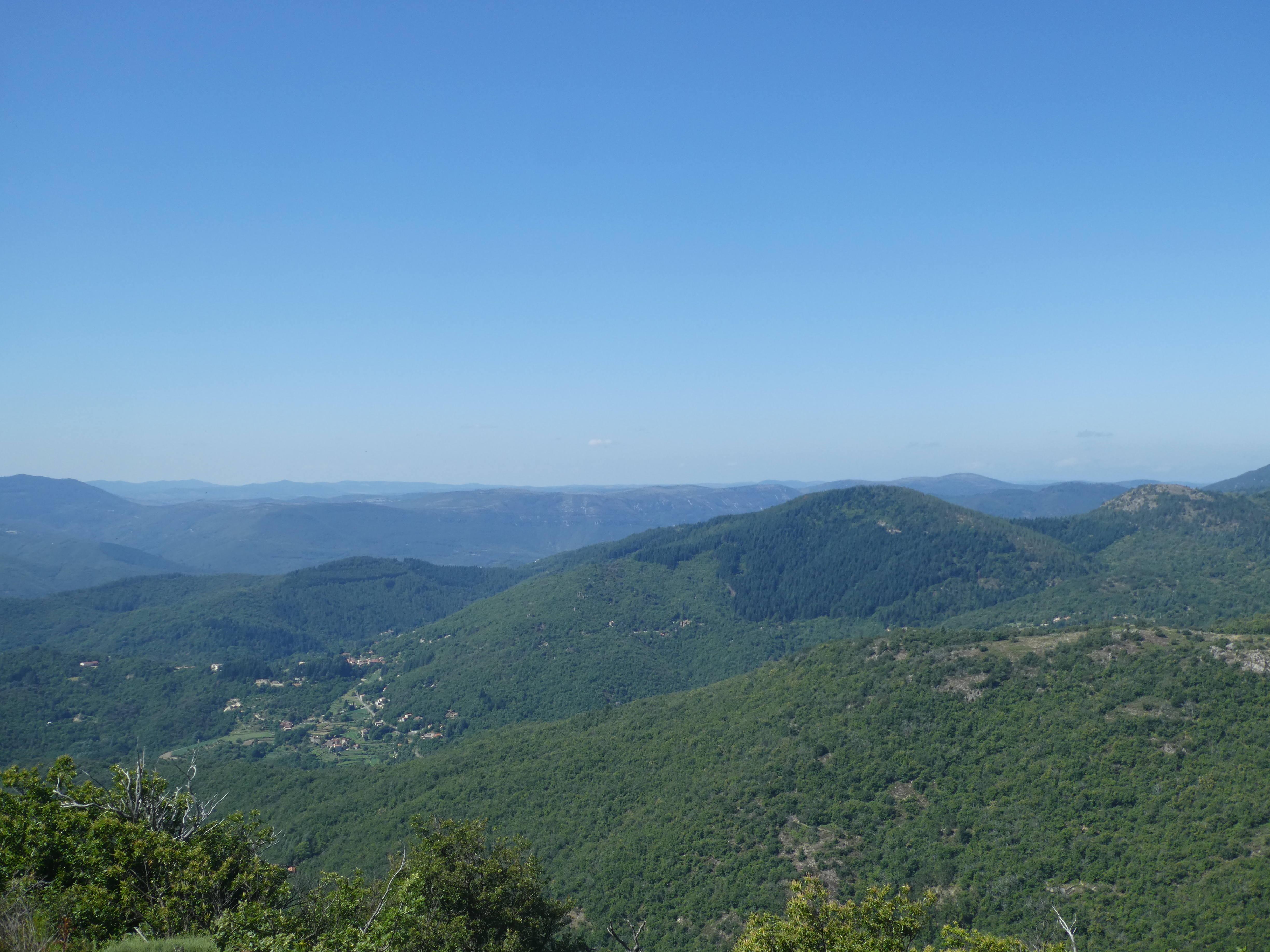 Belle vue sur les crêtes entre Vallée de l'Hérault et Vallée Borgne ... en bas, le hameau de Taleyrac