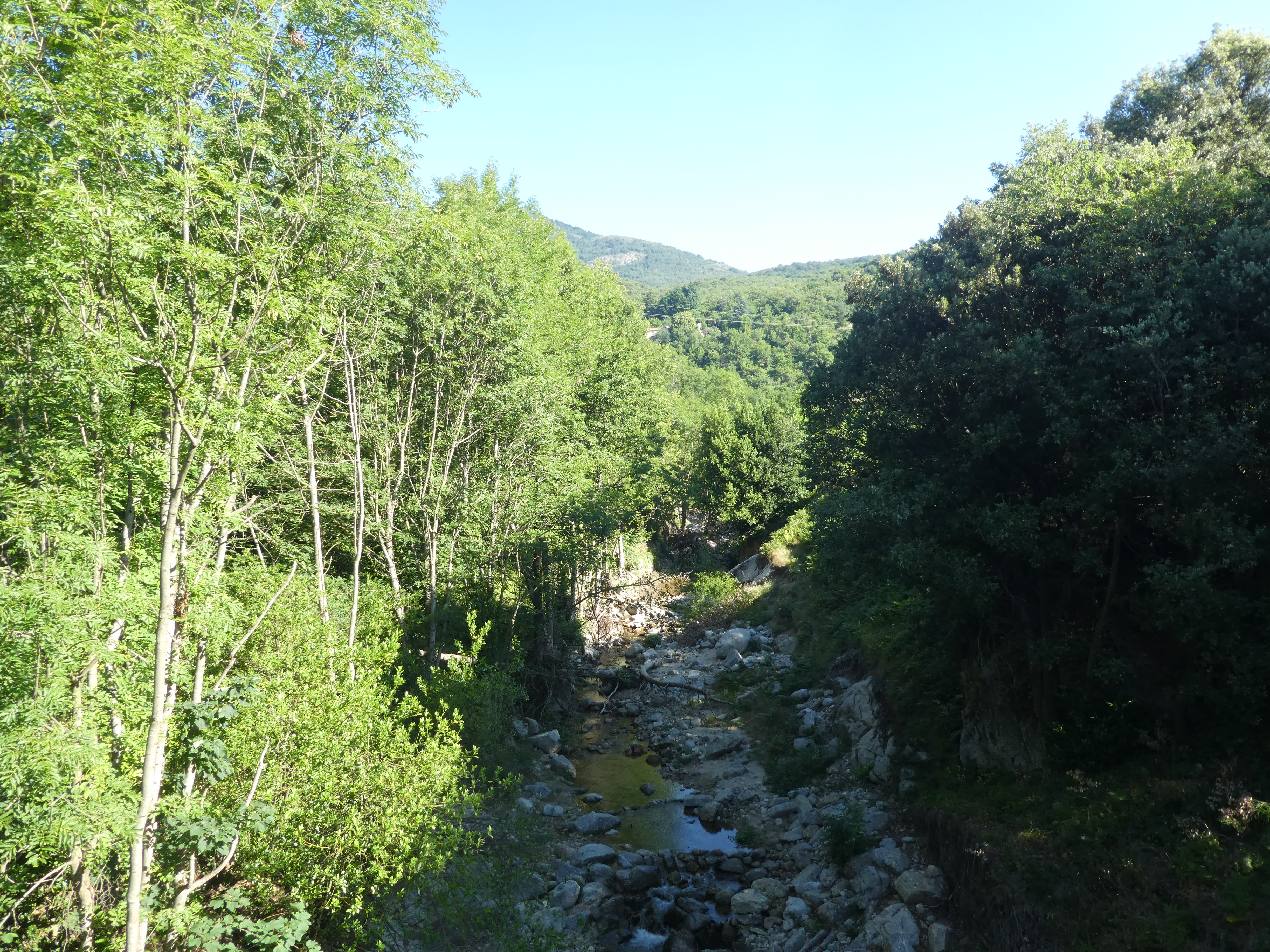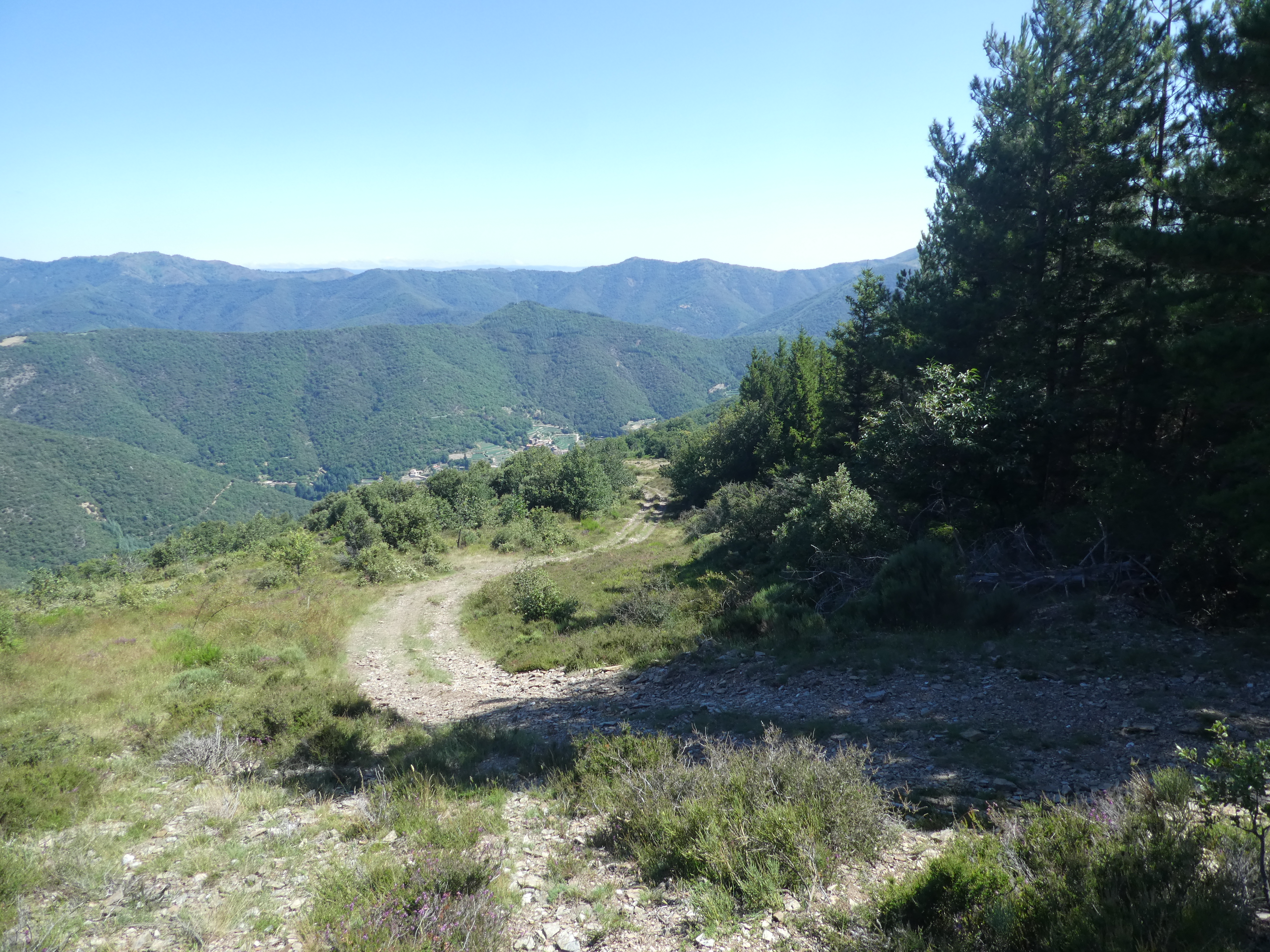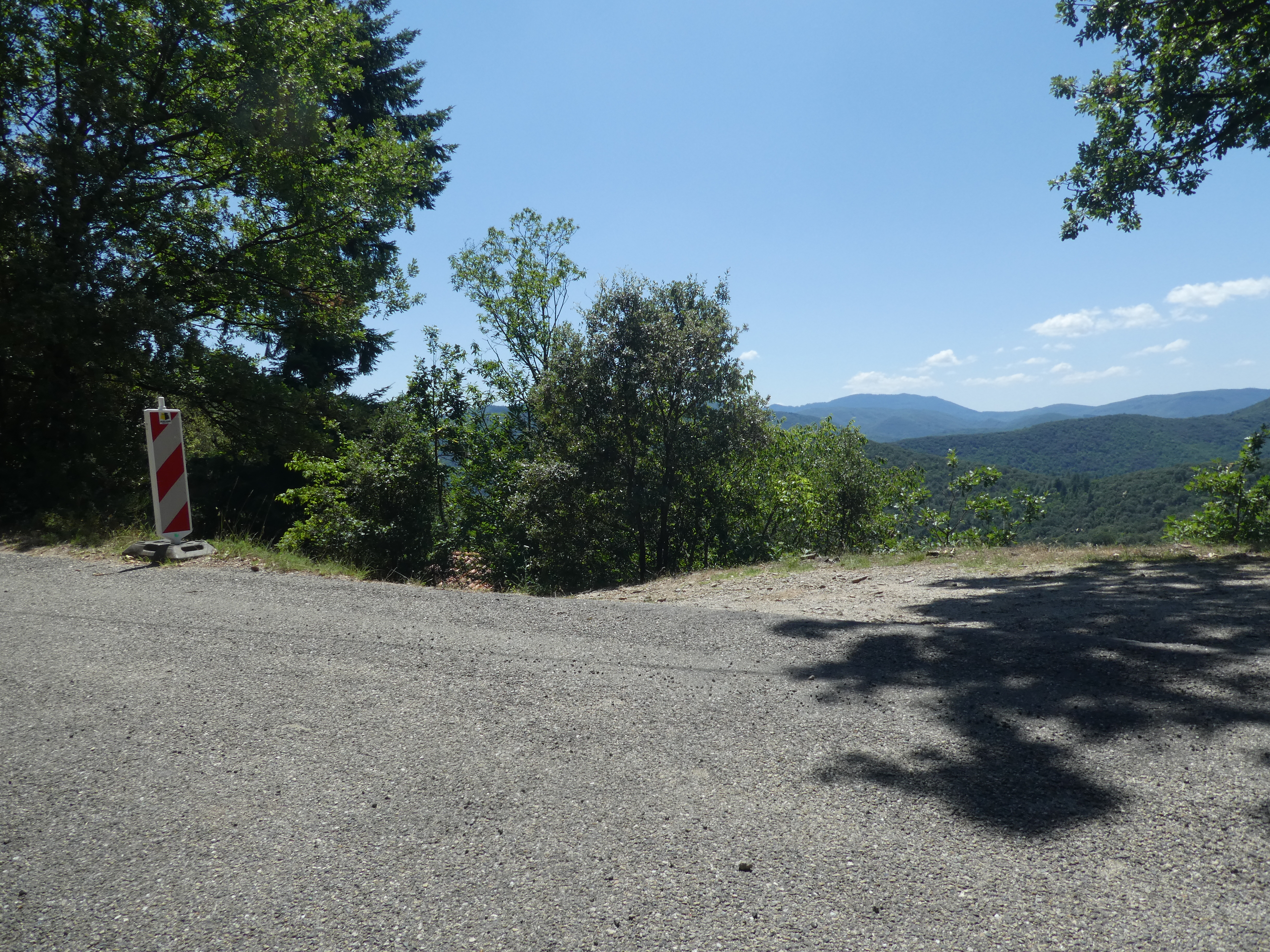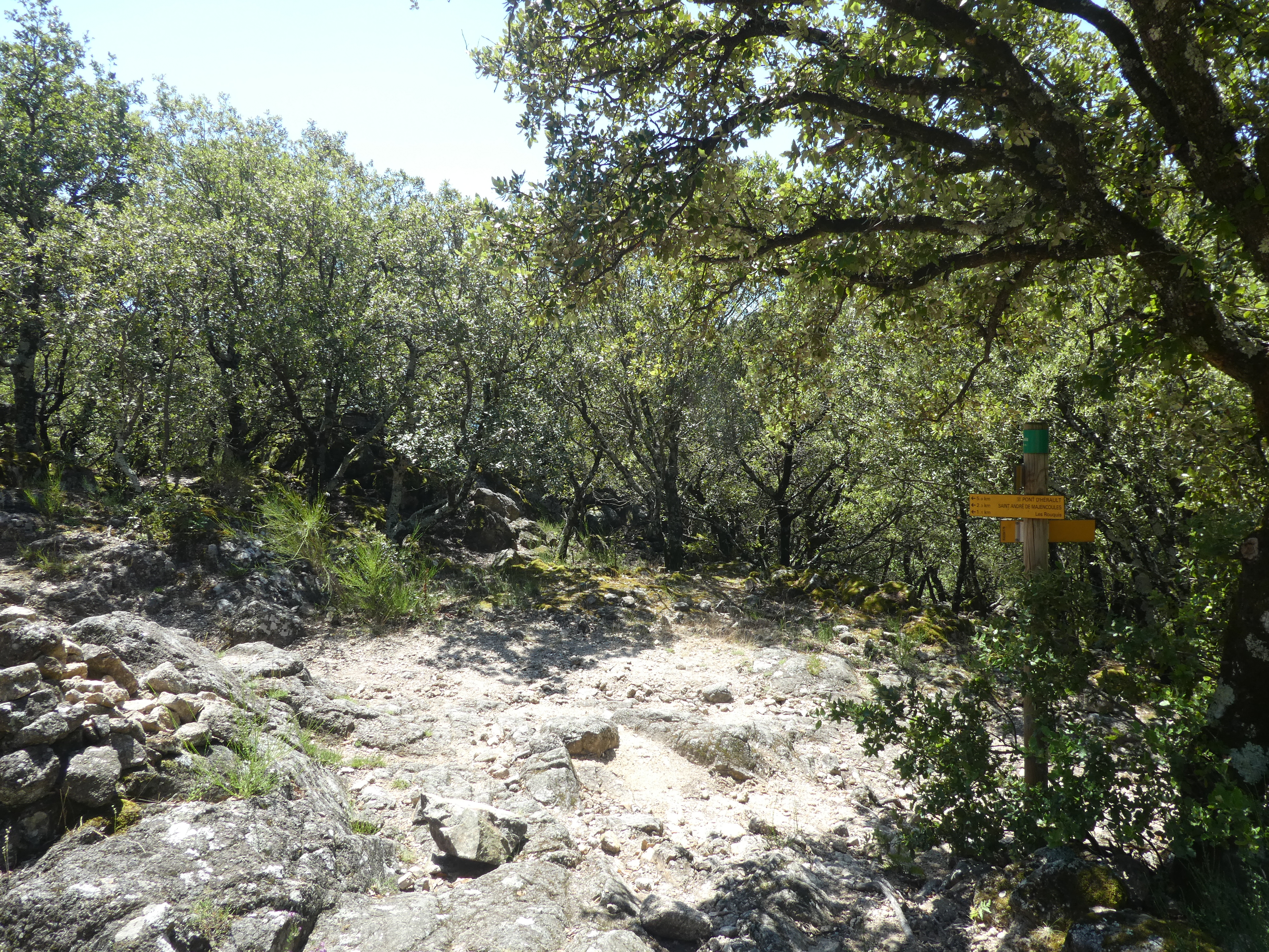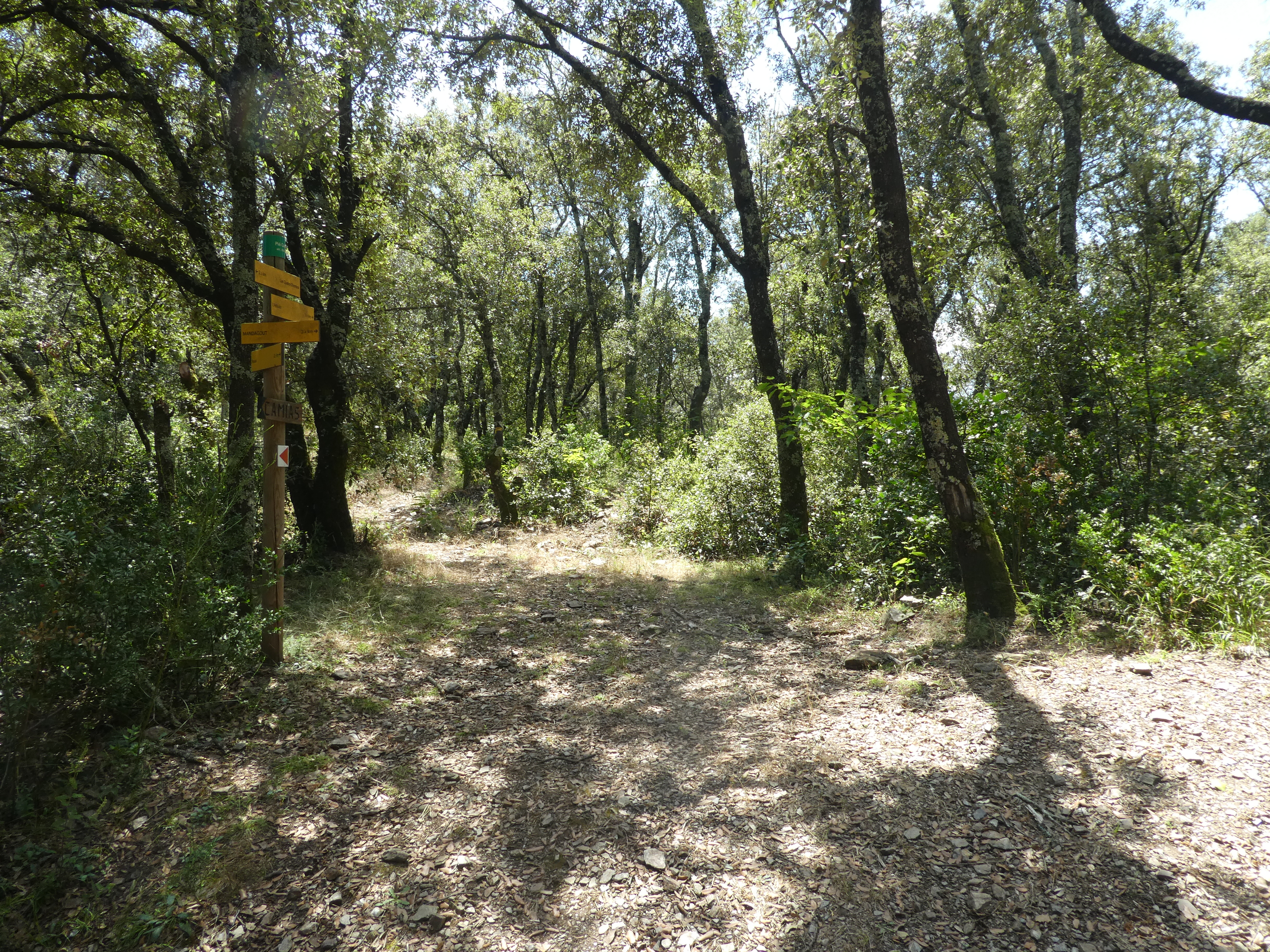 Col de Peyrefiche (714 m) : suivre la route partant sur la droite direction Pont d'Hérault, balisé en rouge et blanc, et en jaune dorénavant