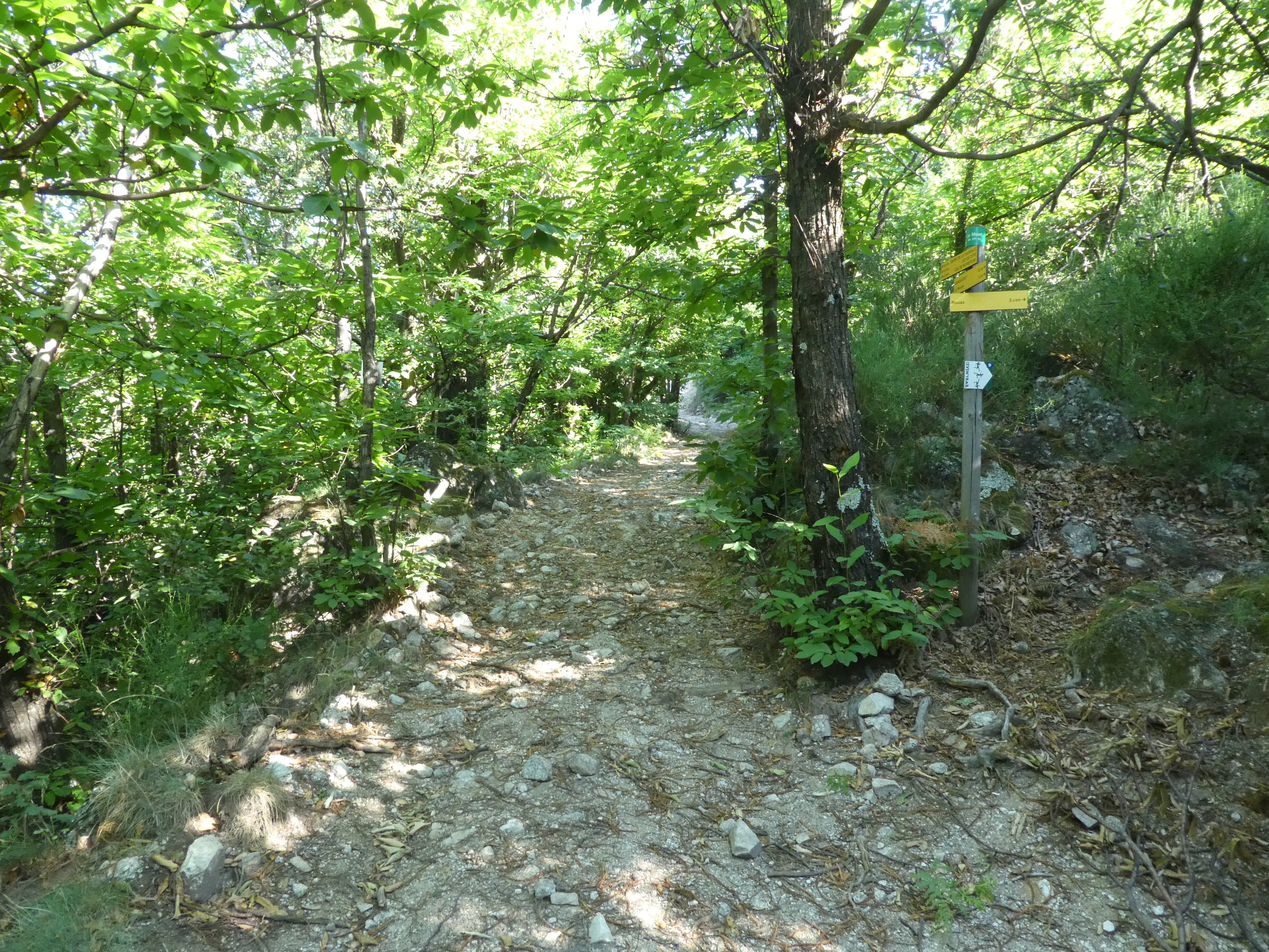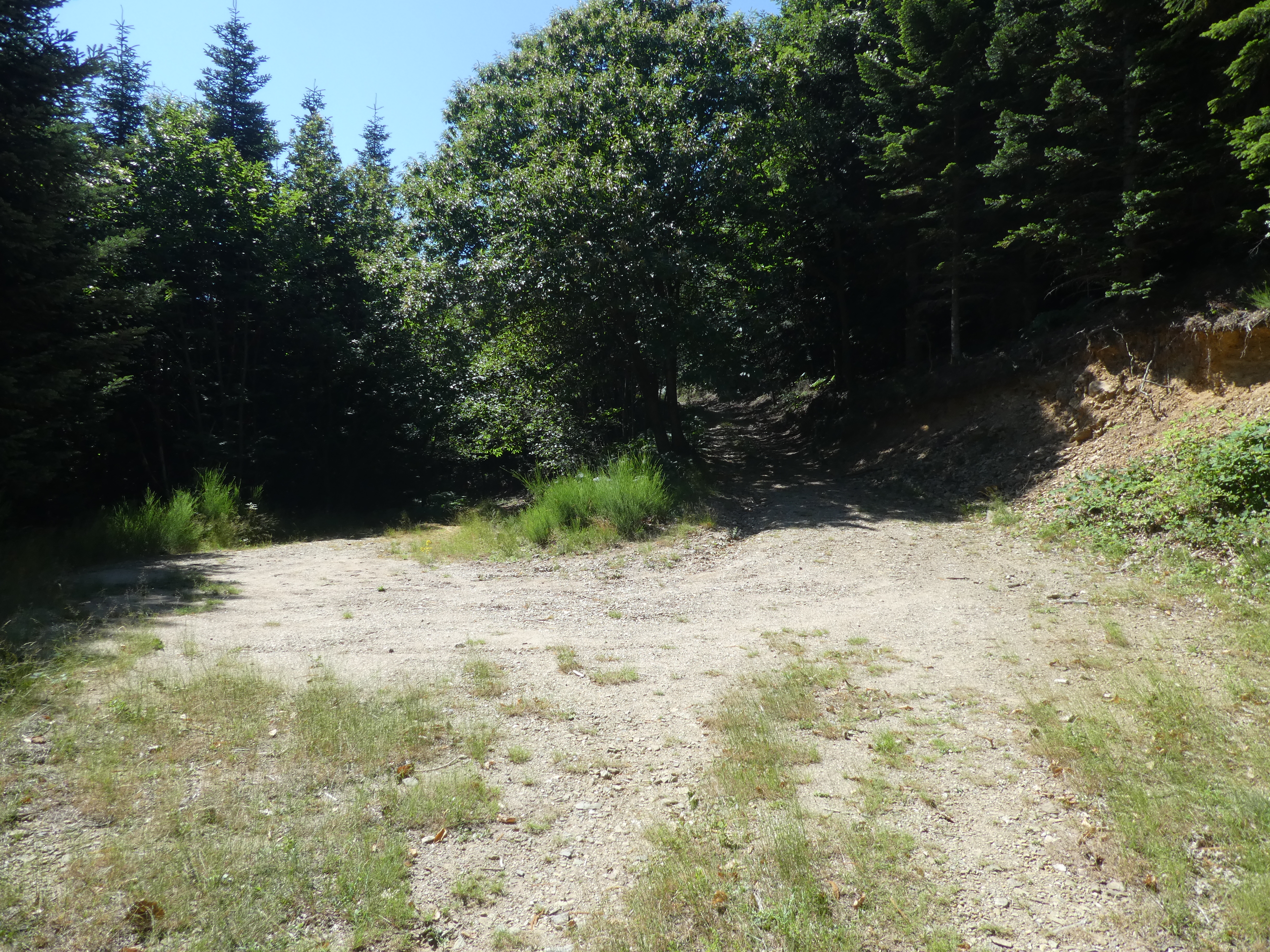 A ce croisement avec le chemin de montée vers le sommet (600 mètres après le précédent), suivre ce dernier sur la gauche direction Serre de Rouas
