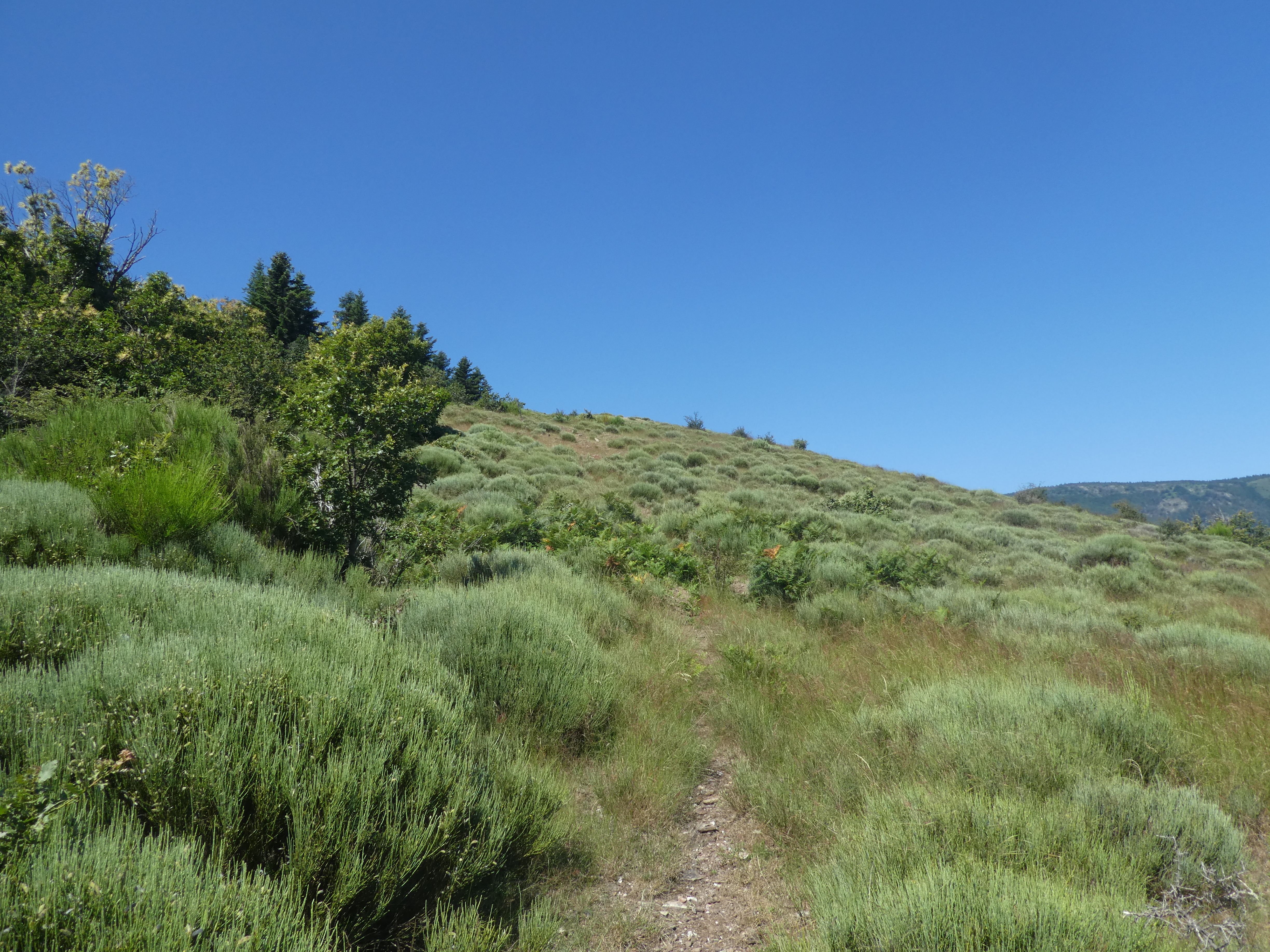 Le chemin d'accès, plus ou moins bien tracé, au sommet du Serre de Rouas
