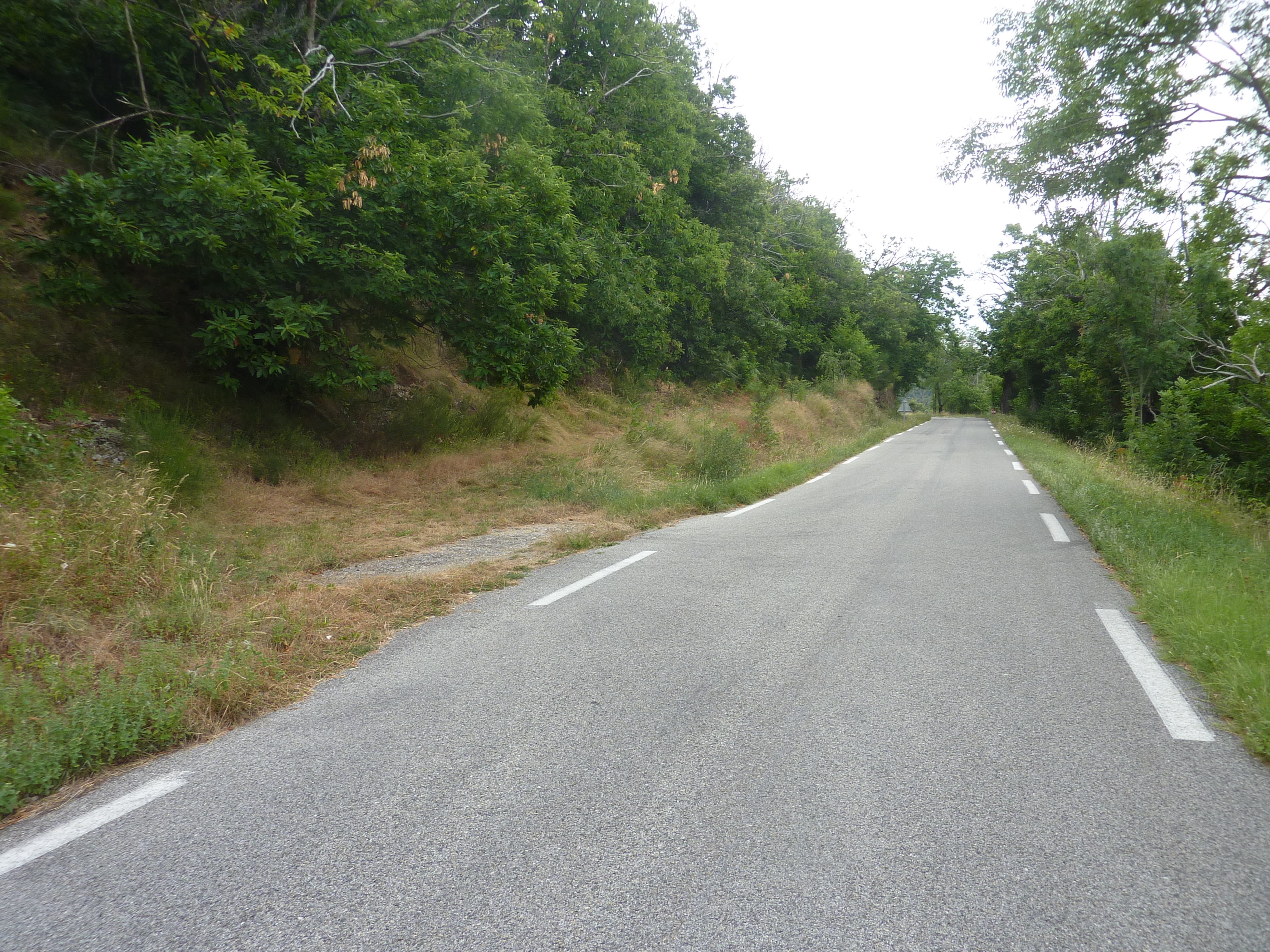 Le Moulinet (481 m) : continuer à suivre la D10 partant tout droit direction le Pont Marès, aucun balisage dorénavant (le chemin indiqué en pointillés roses sur la carte IGN partant vers le lieu-dit "Montredon" a été fermé ...)
