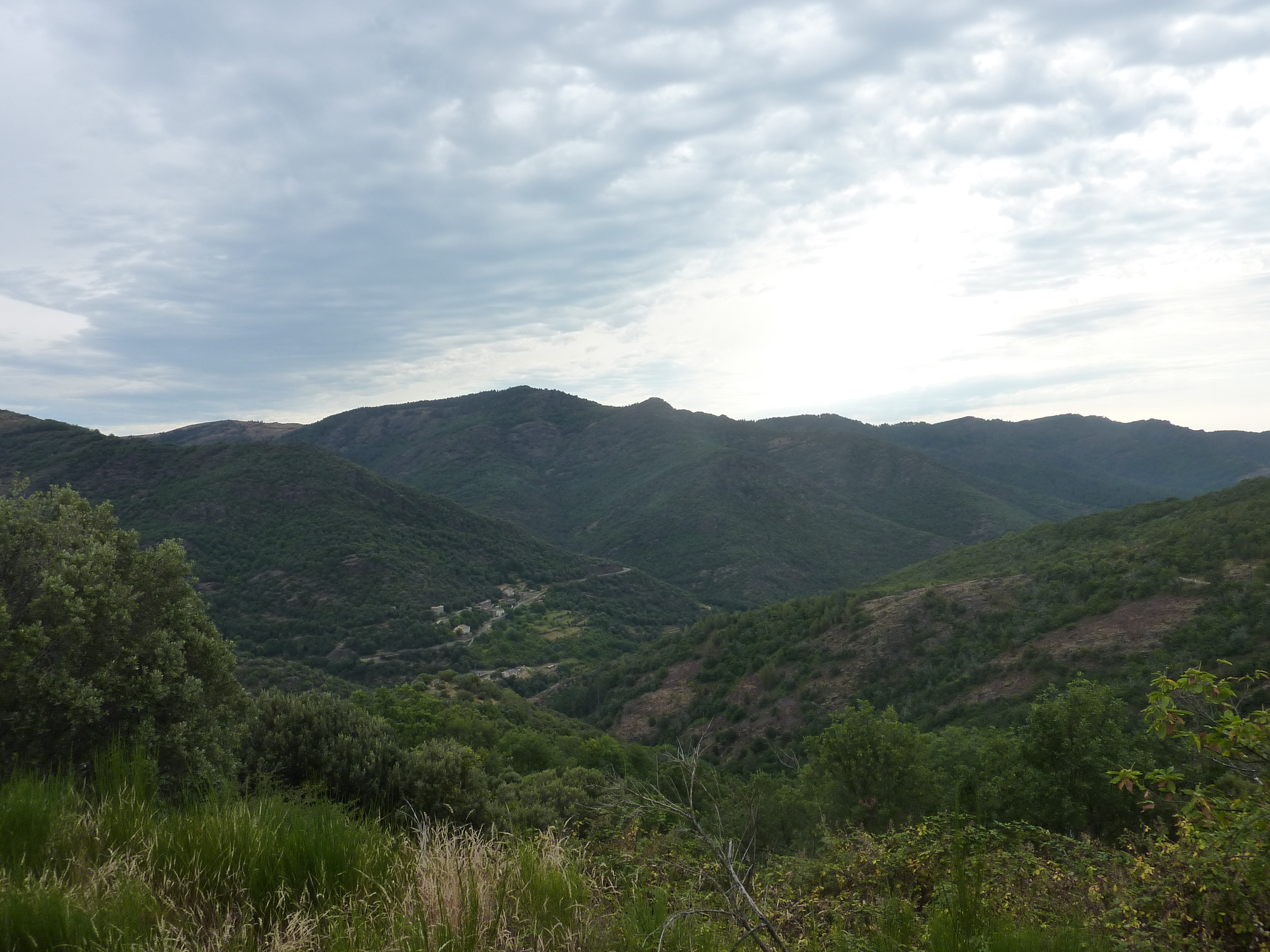Vue vers la fin de la Vallée Borgne qui débouche sur la Vallée du Tarnon (frontière des bassins versants atlantique et méditerranéen)