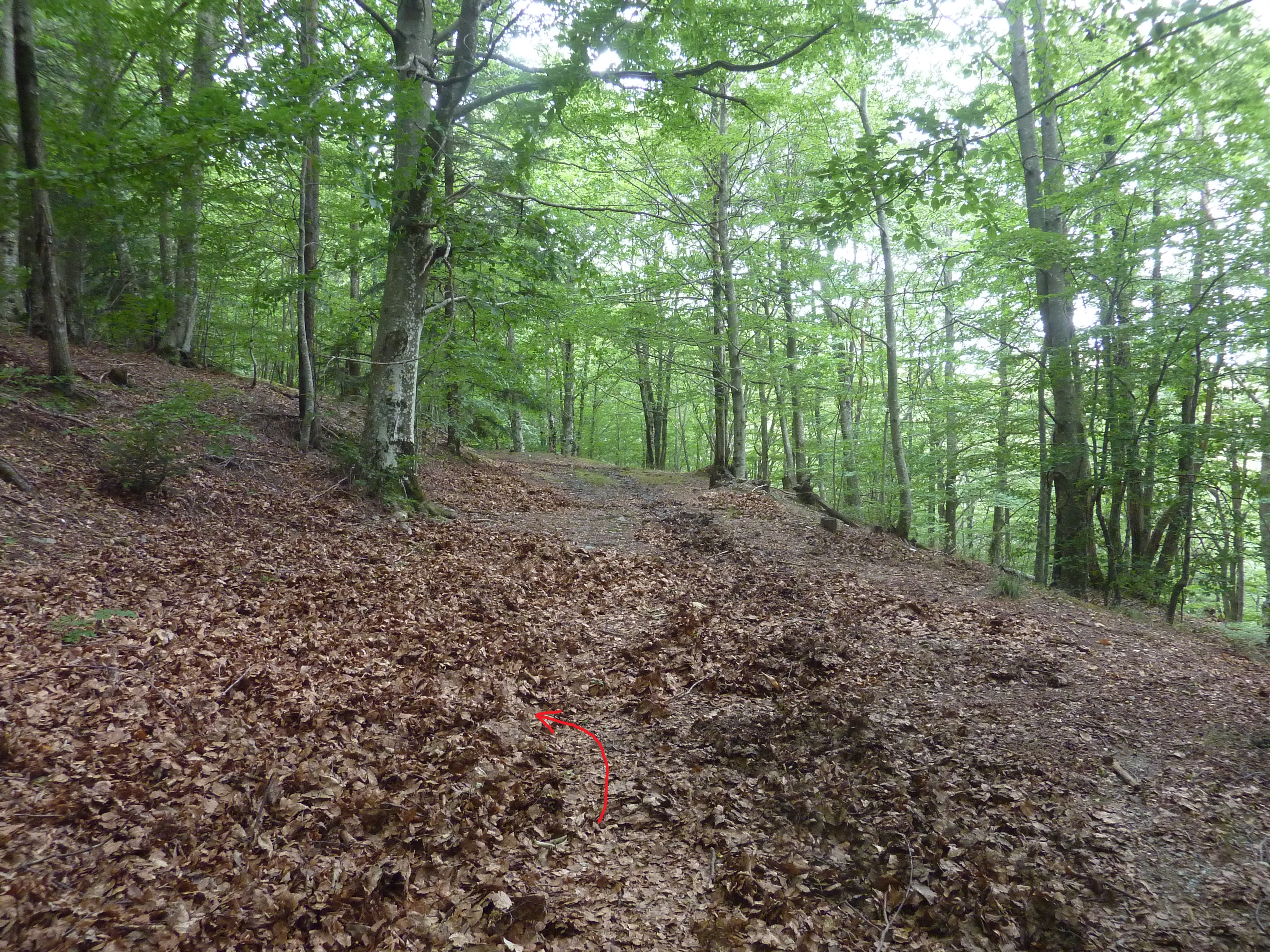 A ce croisement (1400 mètres après être entré dans le Parc National des Cévennes), suivre le chemin montant raidement sur la gauche direction Col Salidès, balisé en jaune (chemin non indiqué sur la carte IGN)