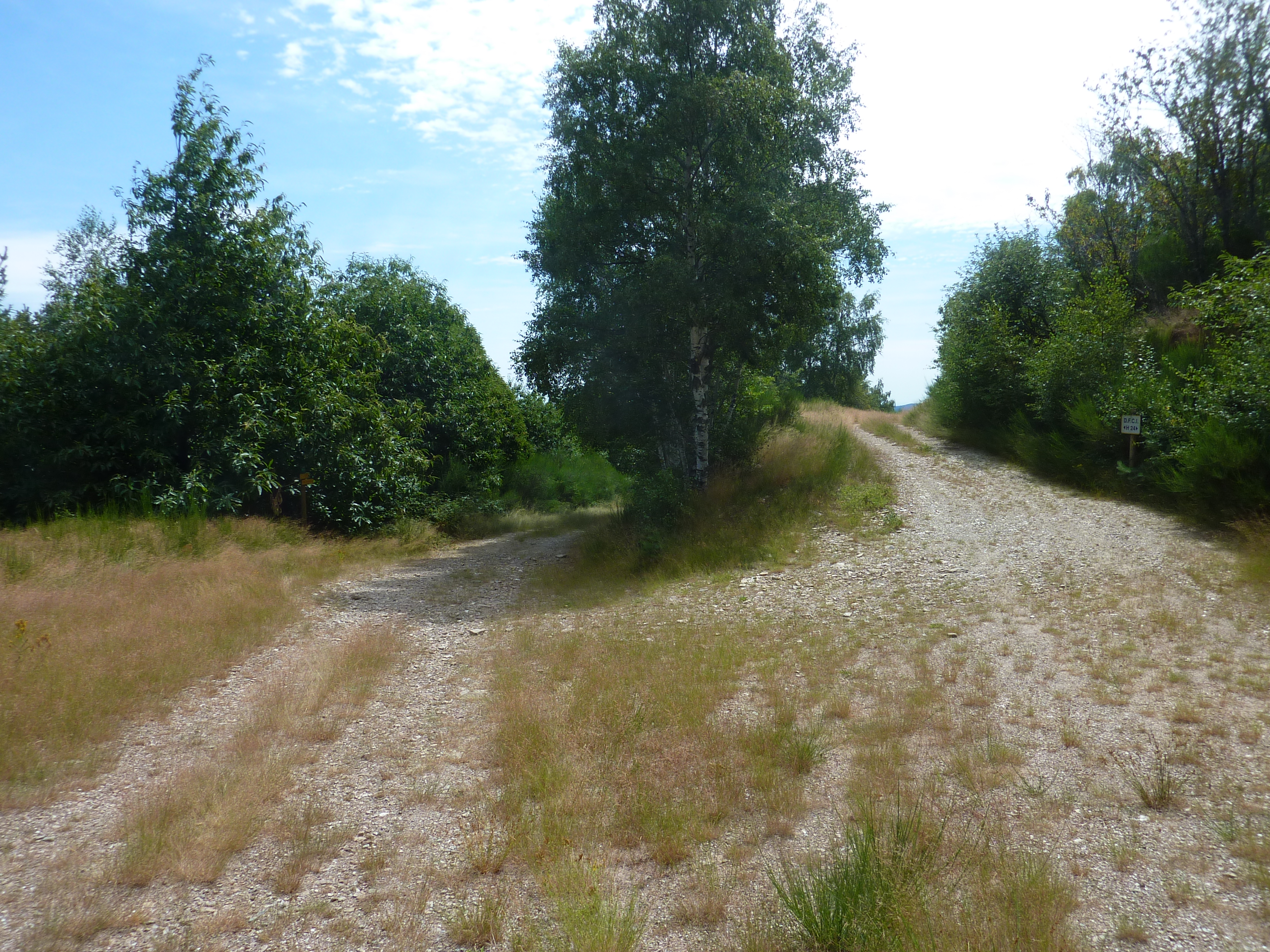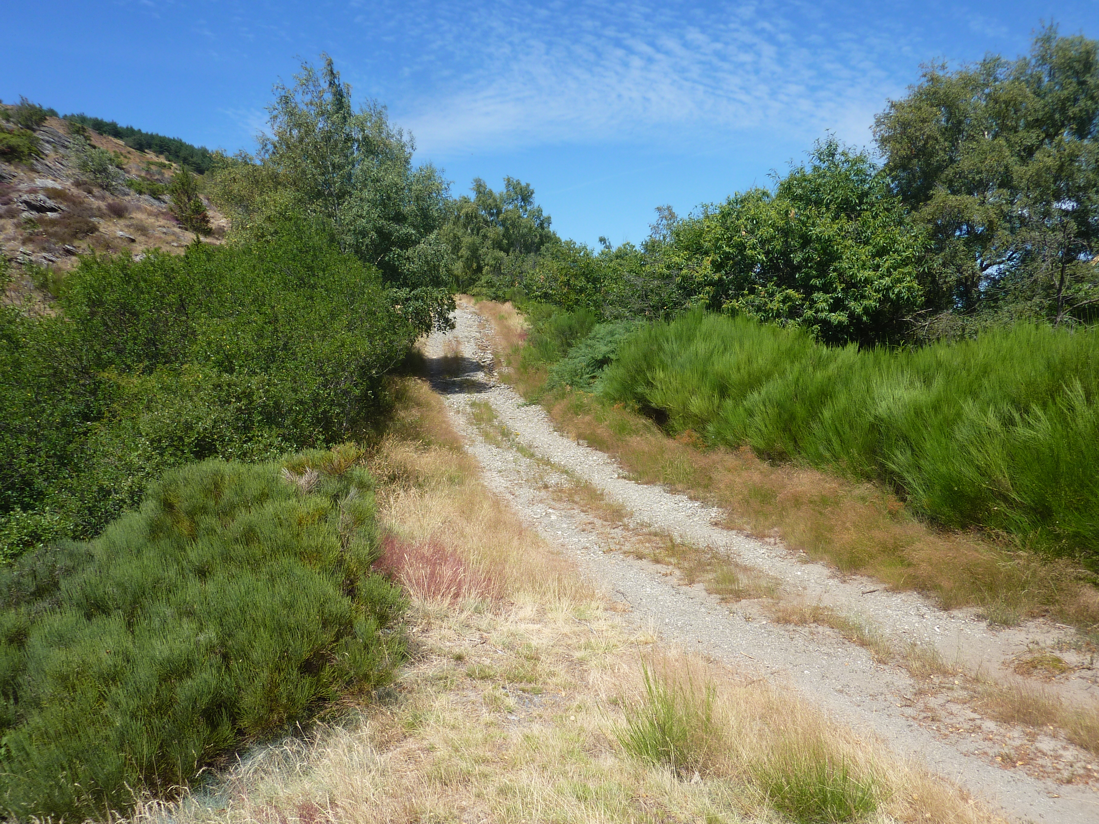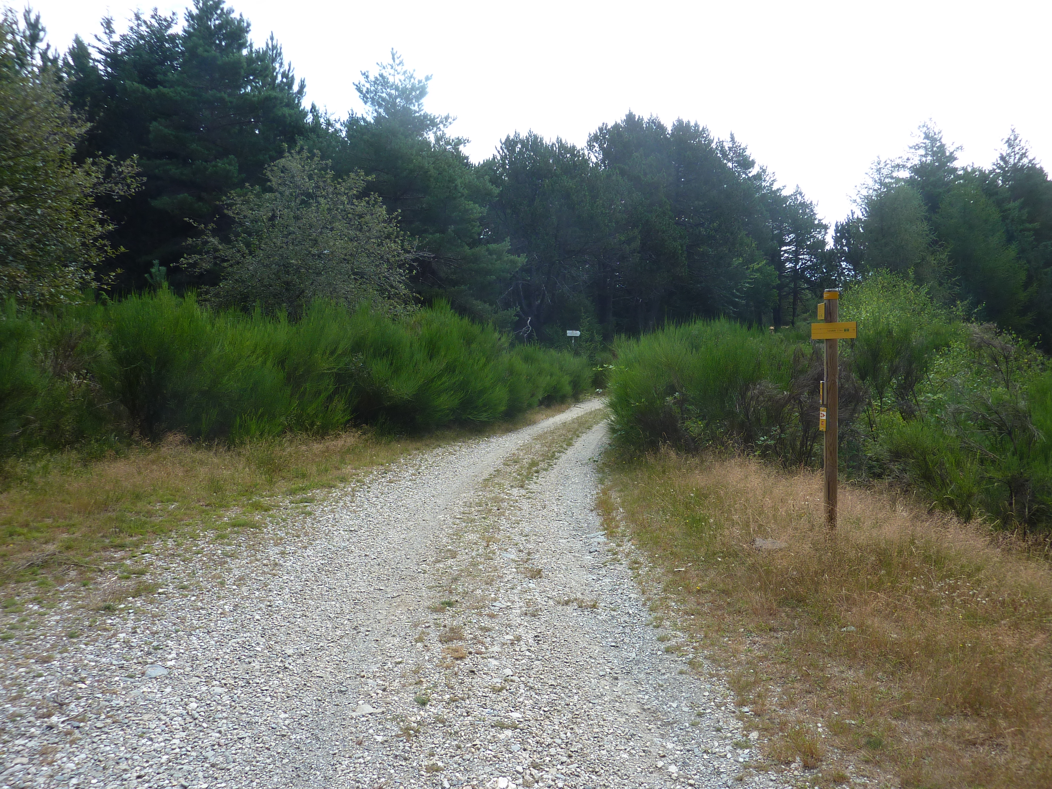 A ce croisement (700 mètres après avoir quitté la D907) (805 m), suivre la piste partant légèrement sur la gauche direction Col Salidès, balisé en jaune (entrée dans le Parc National des Cévennes et dans le département de la Lozère)
