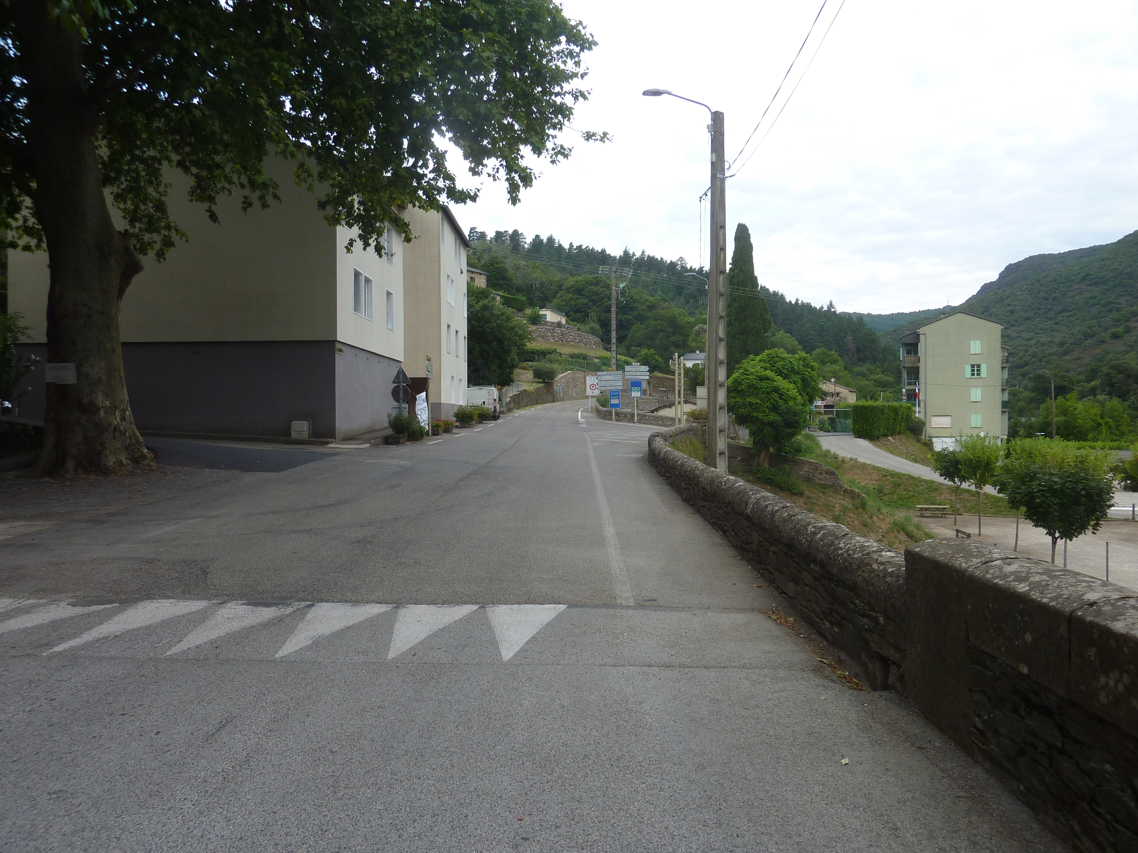 A cette intersection située au niveau du lieu-dit "le Cambon" (300 mètres après le lieu-dit "le Moulinet"), continuer à suivre la D10 partant tout droit direction le Pont Marès