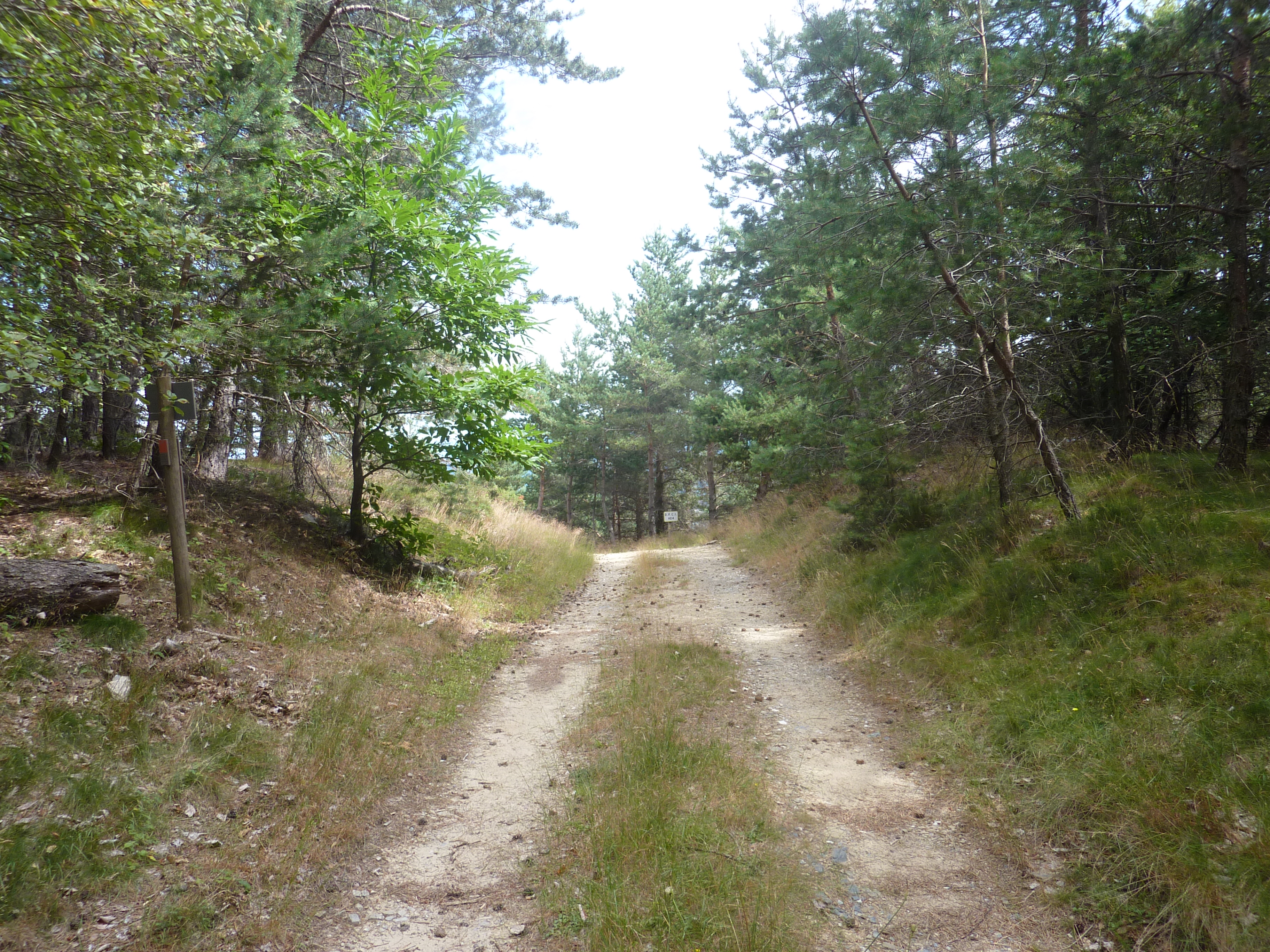 Puech Redon (1083 m) : continuer à suivre la piste partant tout droit direction Mont Aigoual, balisé en rouge et blanc, et en jaune