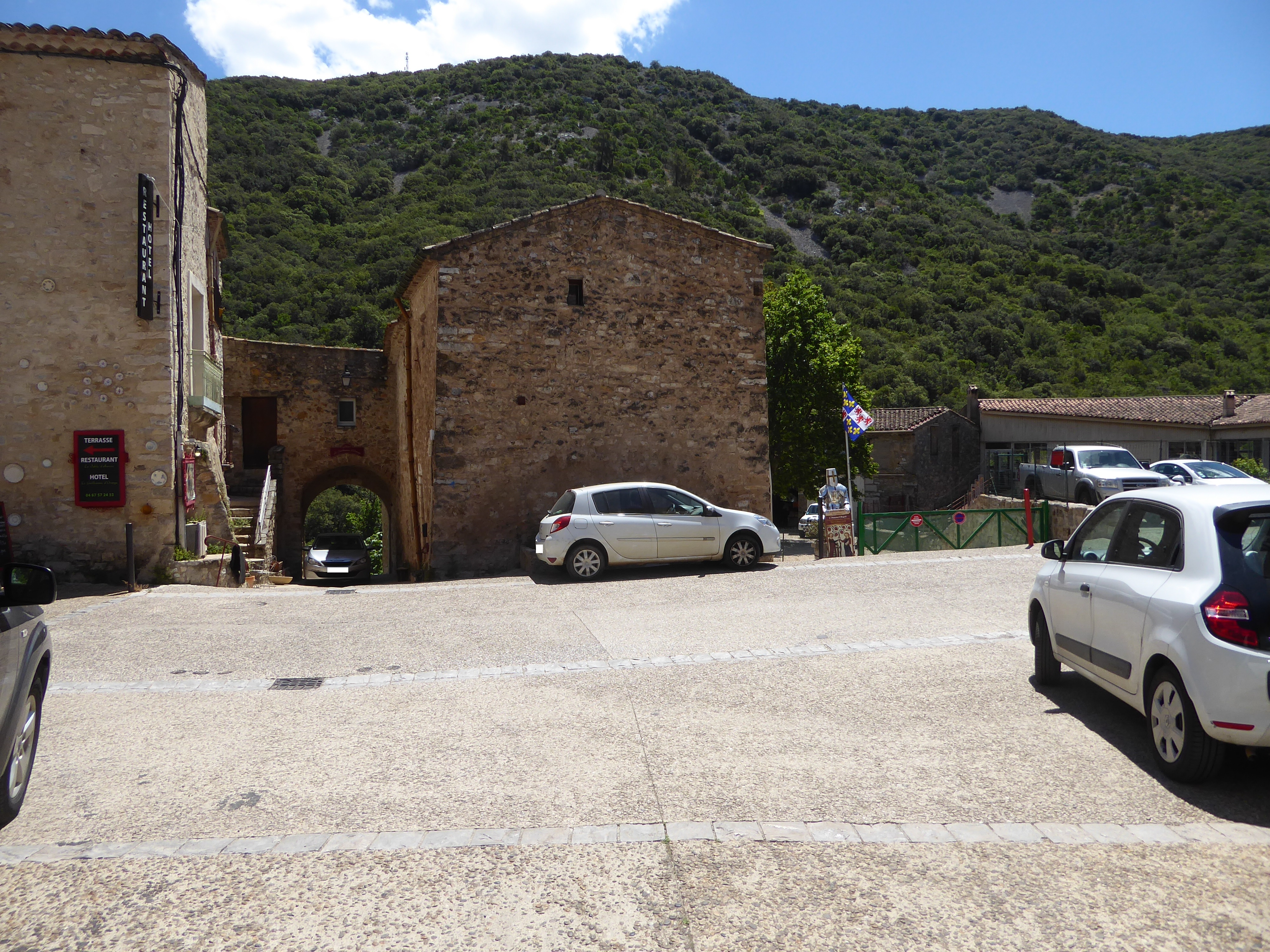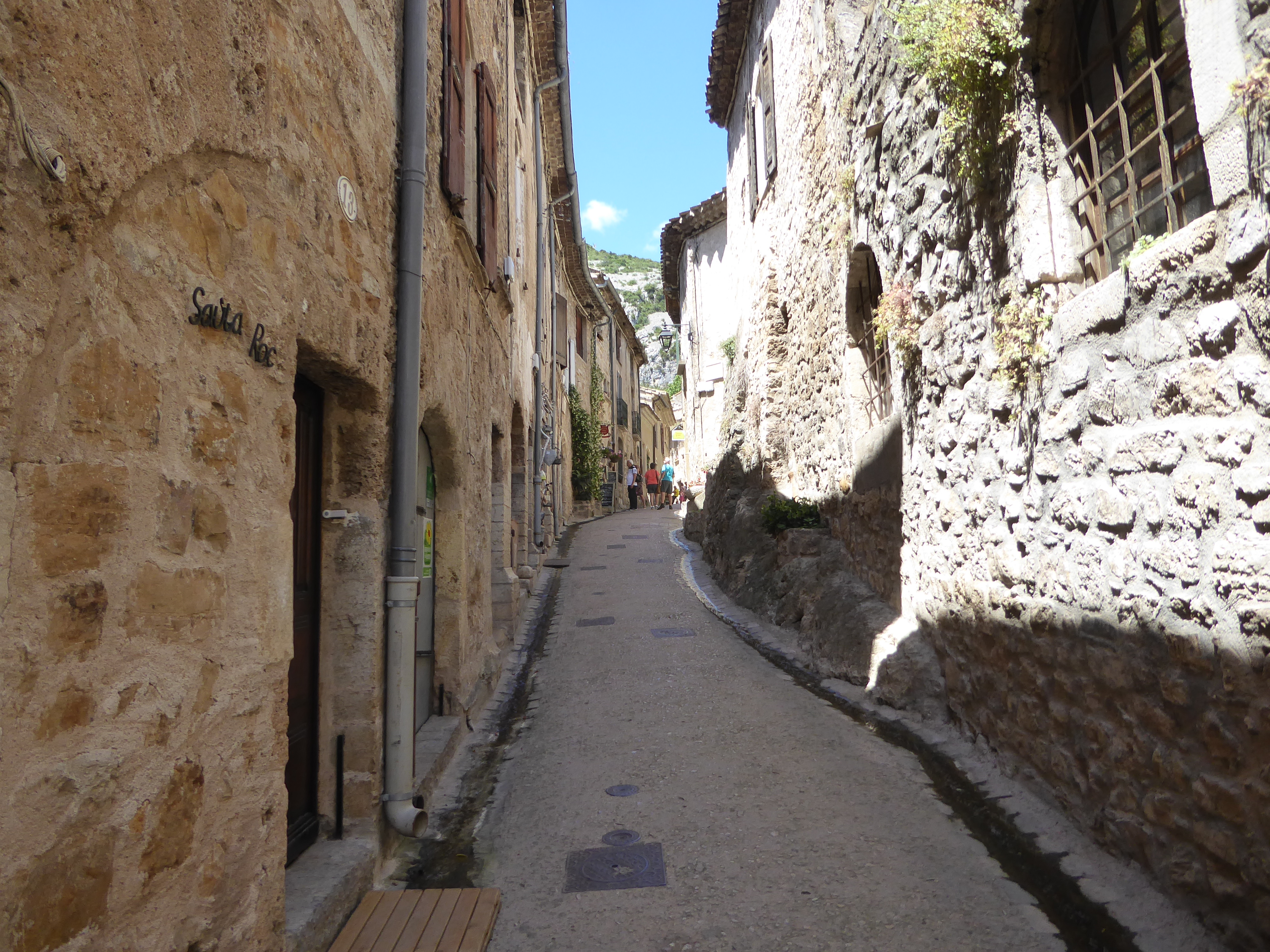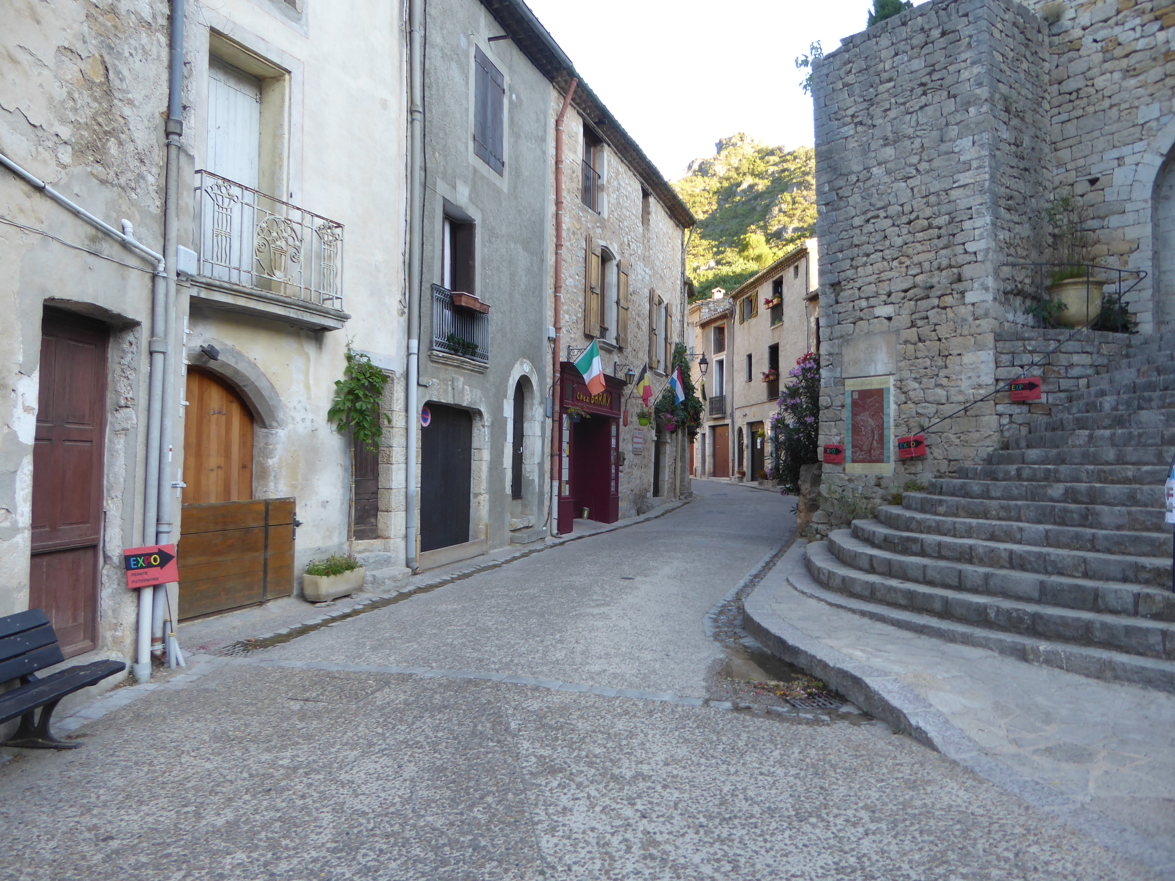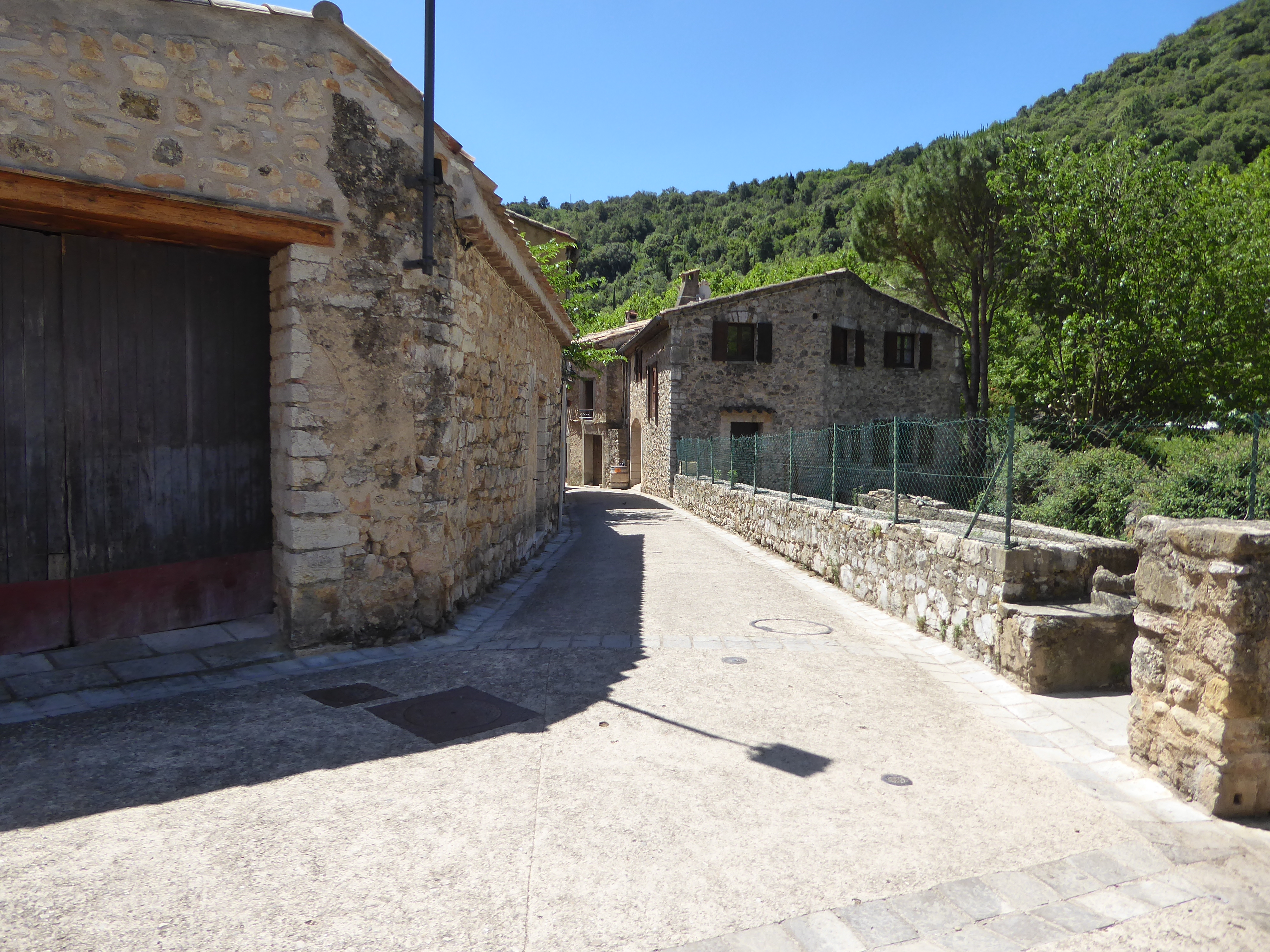A ce croisement à proximité du parking central, suivre la rue partant tout droit direction Saint-Guilhem-le-Désert, aucun balisage dorénavant (ne pas hésiter à visiter le village avant de rejoindre le point d'arrivée)