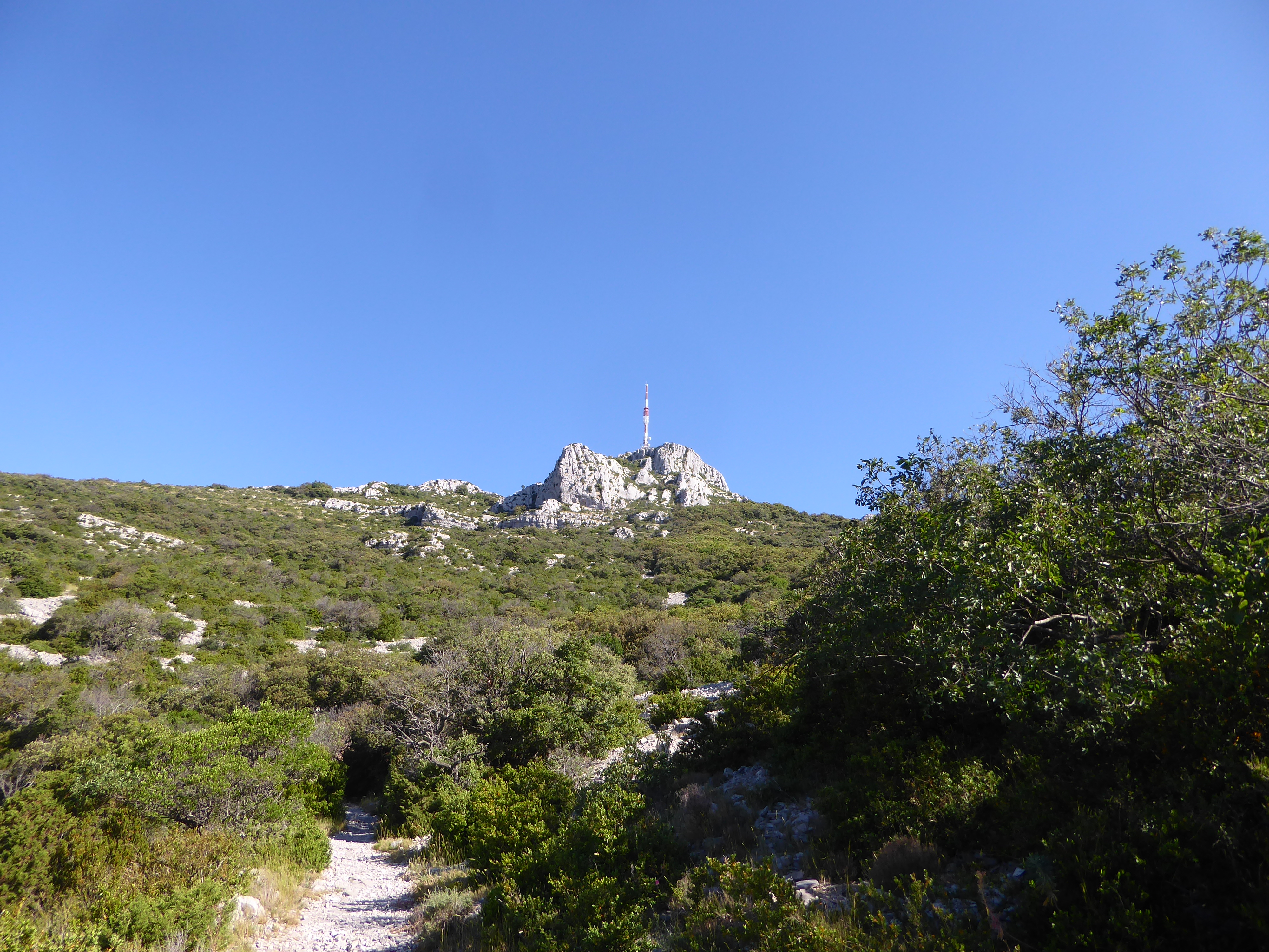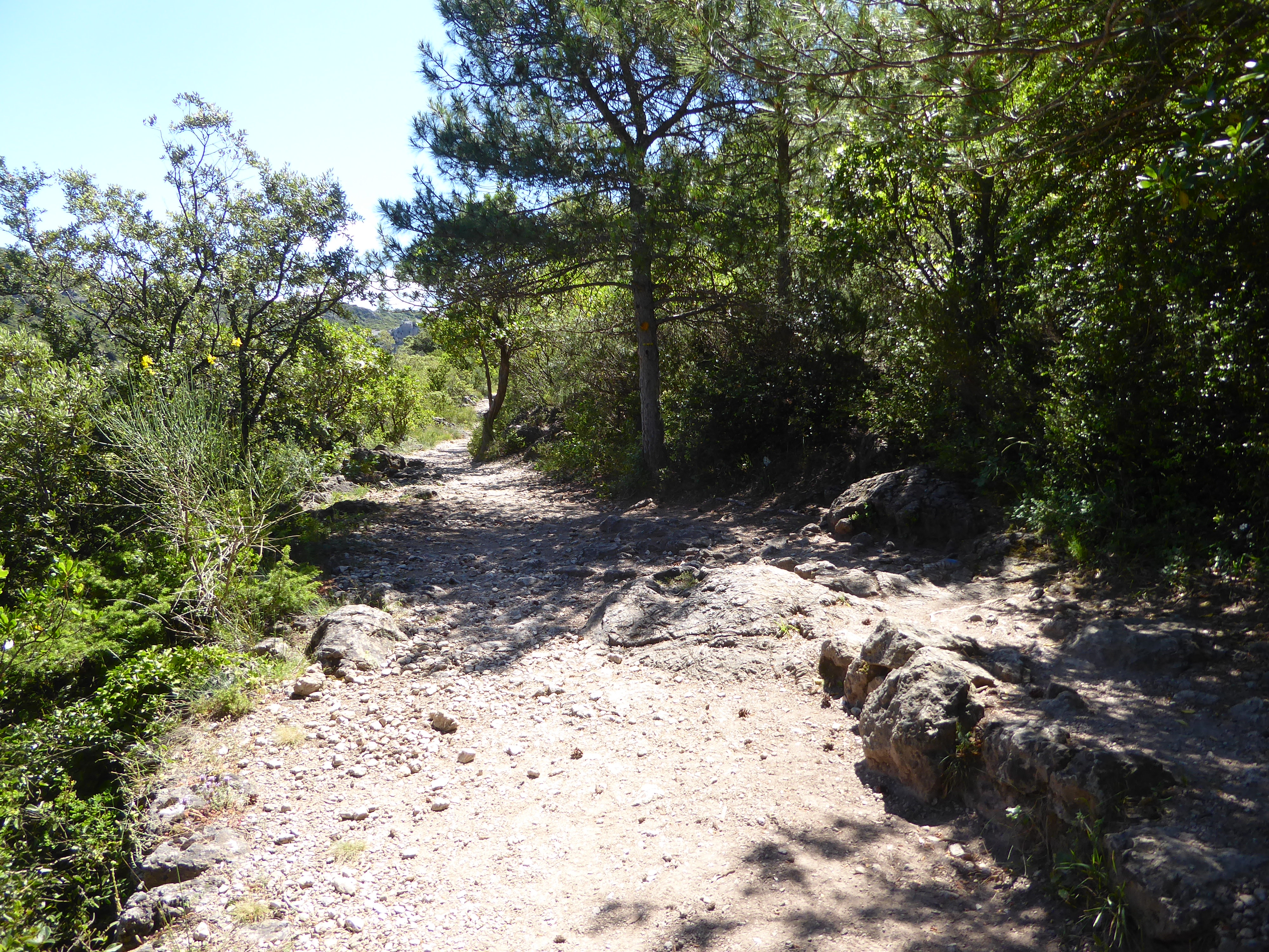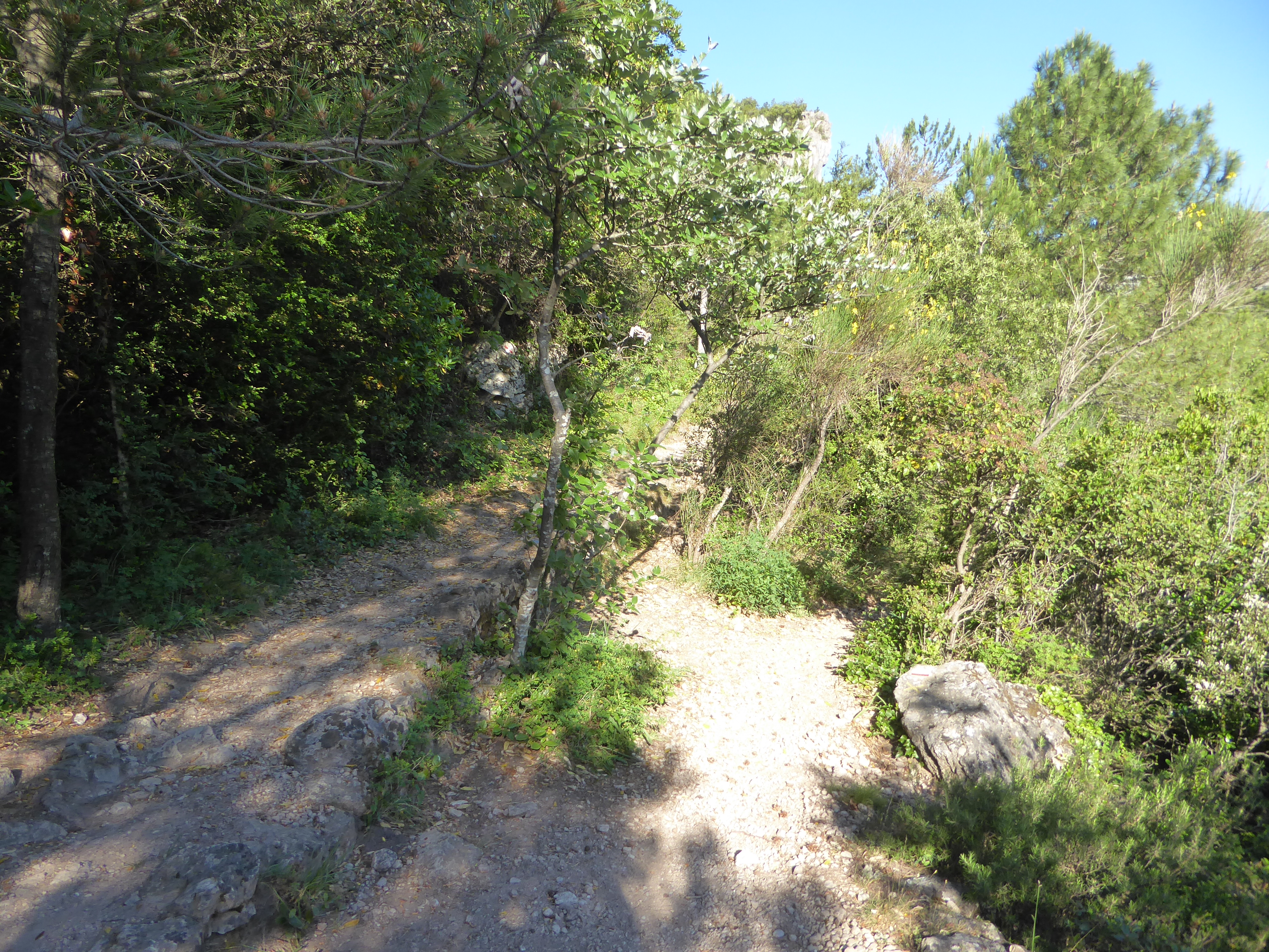 Roc de la Bissonne (237 m) : suivre le chemin descendant tout droit direction Saint-Guilhem-le-Désert, balisé en rouge et blanc