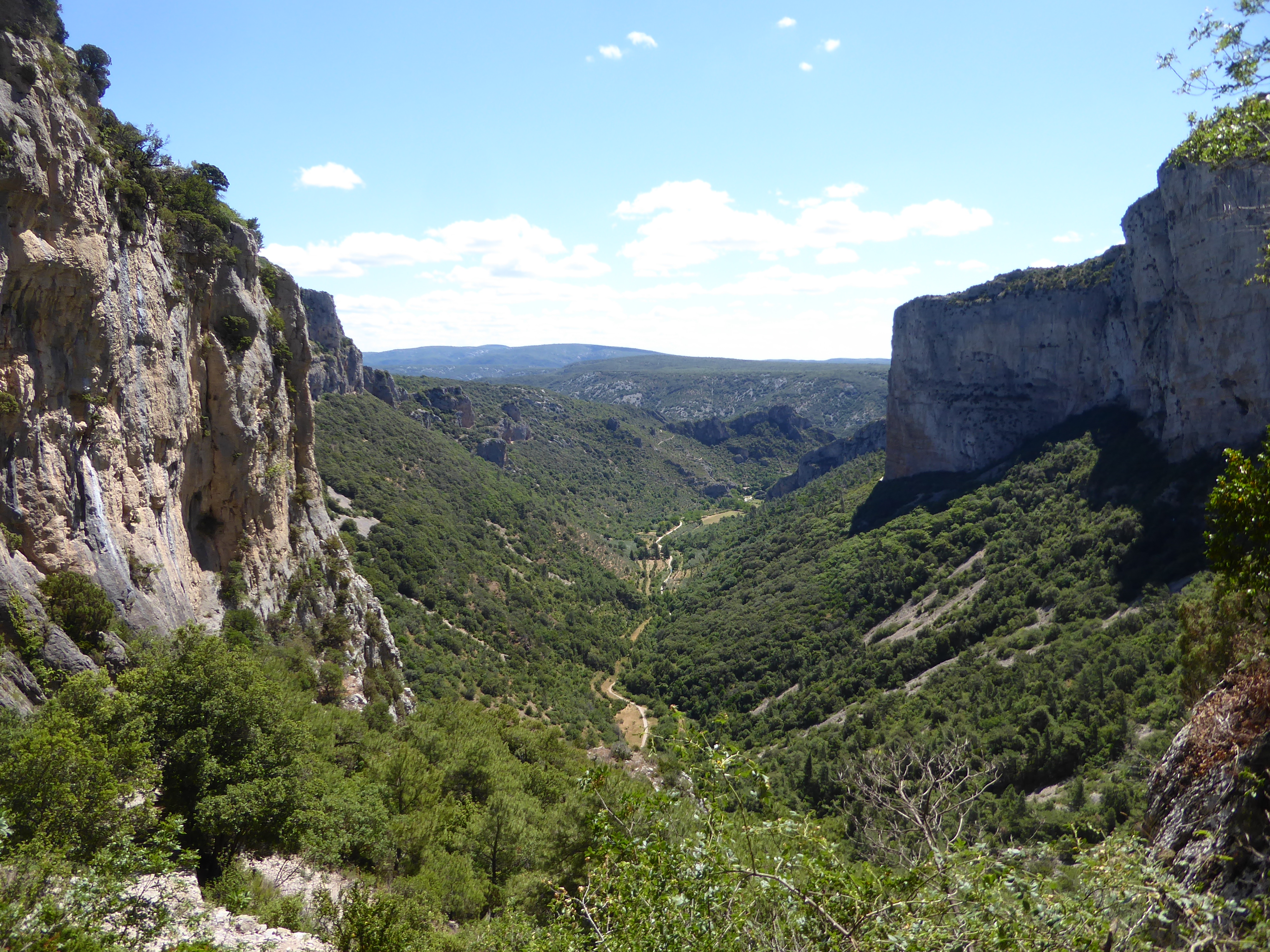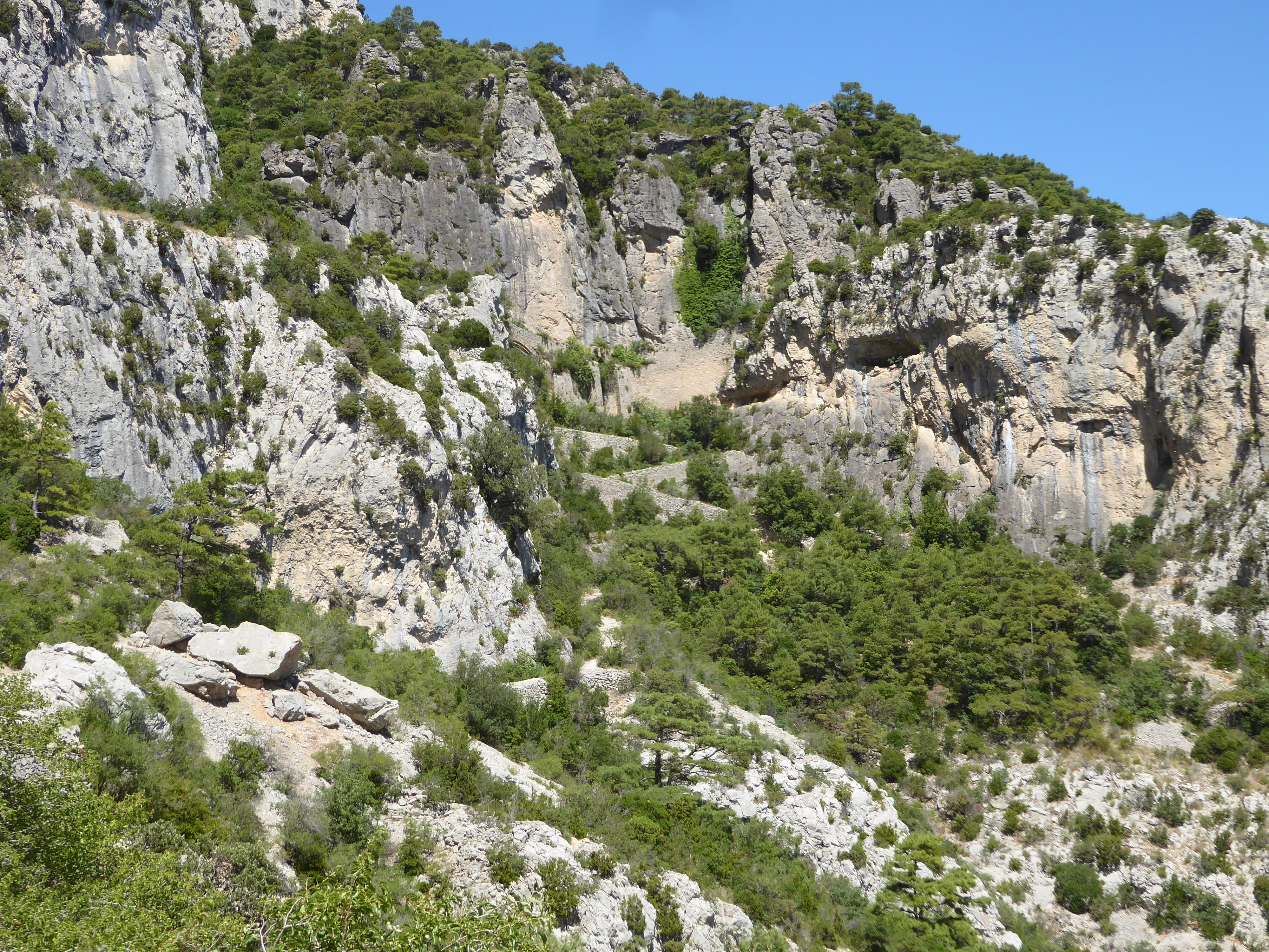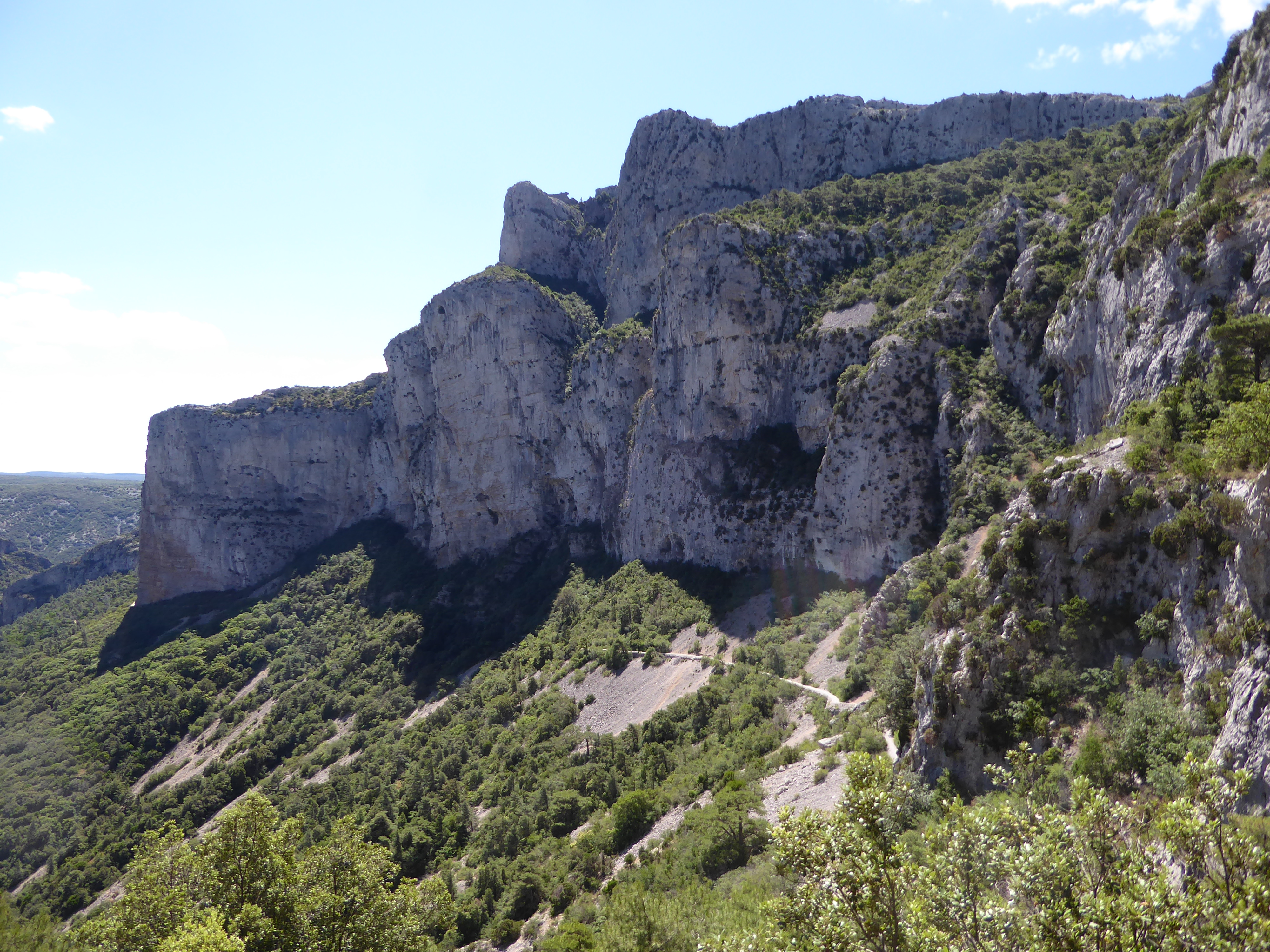 Vue sur le GR passant au pied de la falaise du Max Nègre