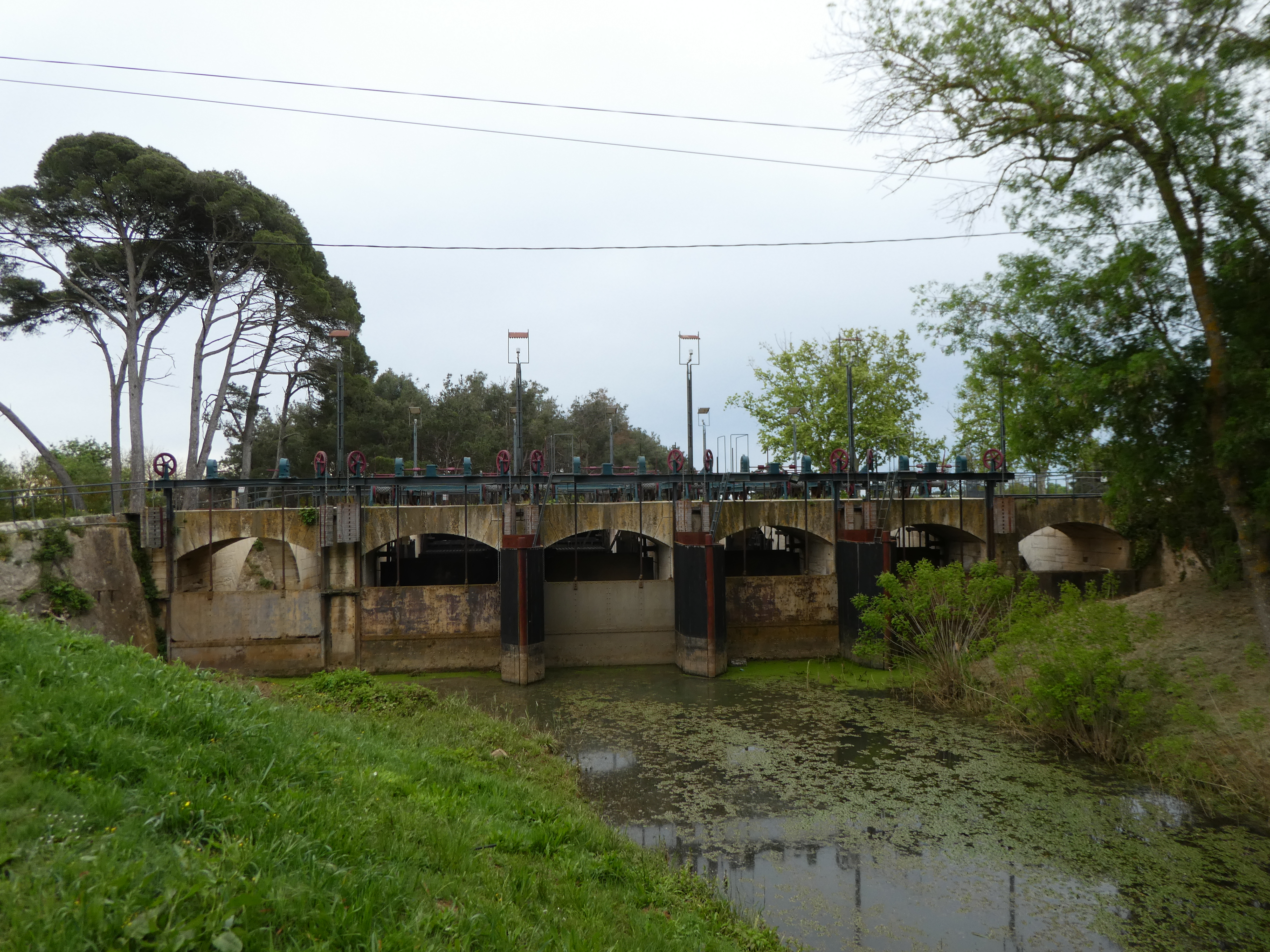 L'un des nombreux barrages anti-sel du Sansouïre empêchant l'eau de mer de remonter dans la Grande Maïre, fleuve d'eau douce