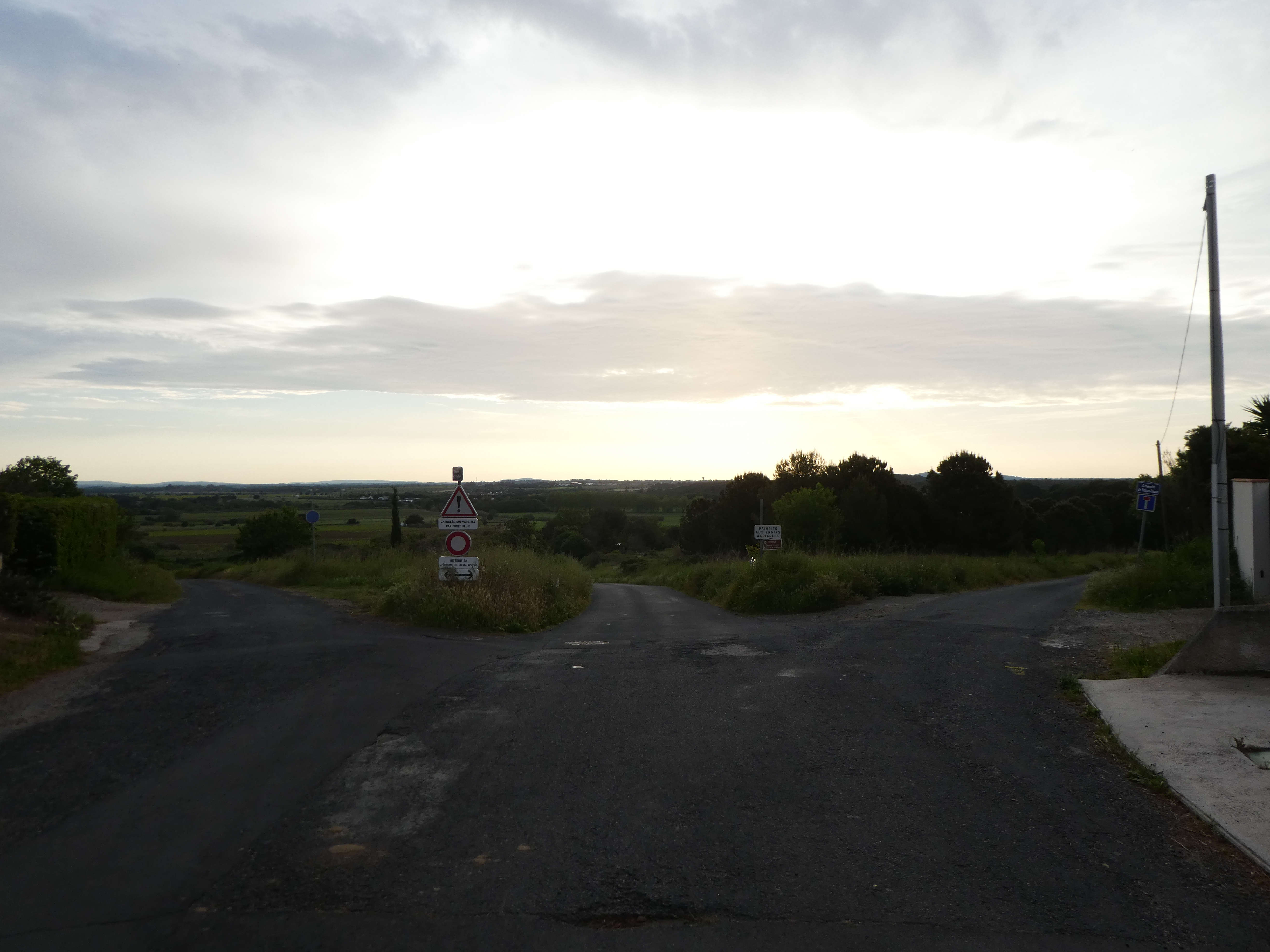 A cette intersection située au bout de la côte et à la sortie de Portiragnes (200 mètres après la précédente), suivre la route partant tout droit direction Domaine de Médeilhan