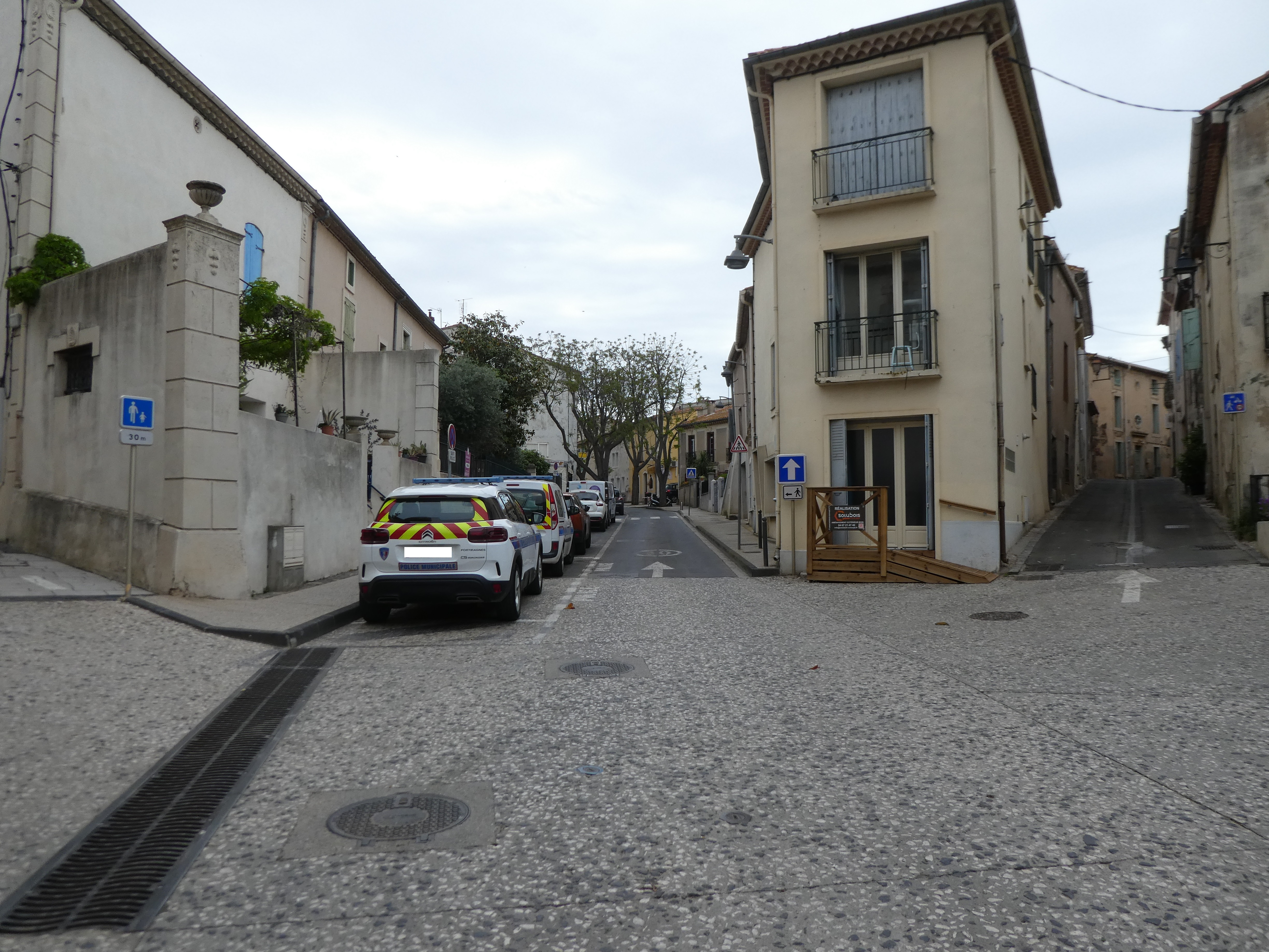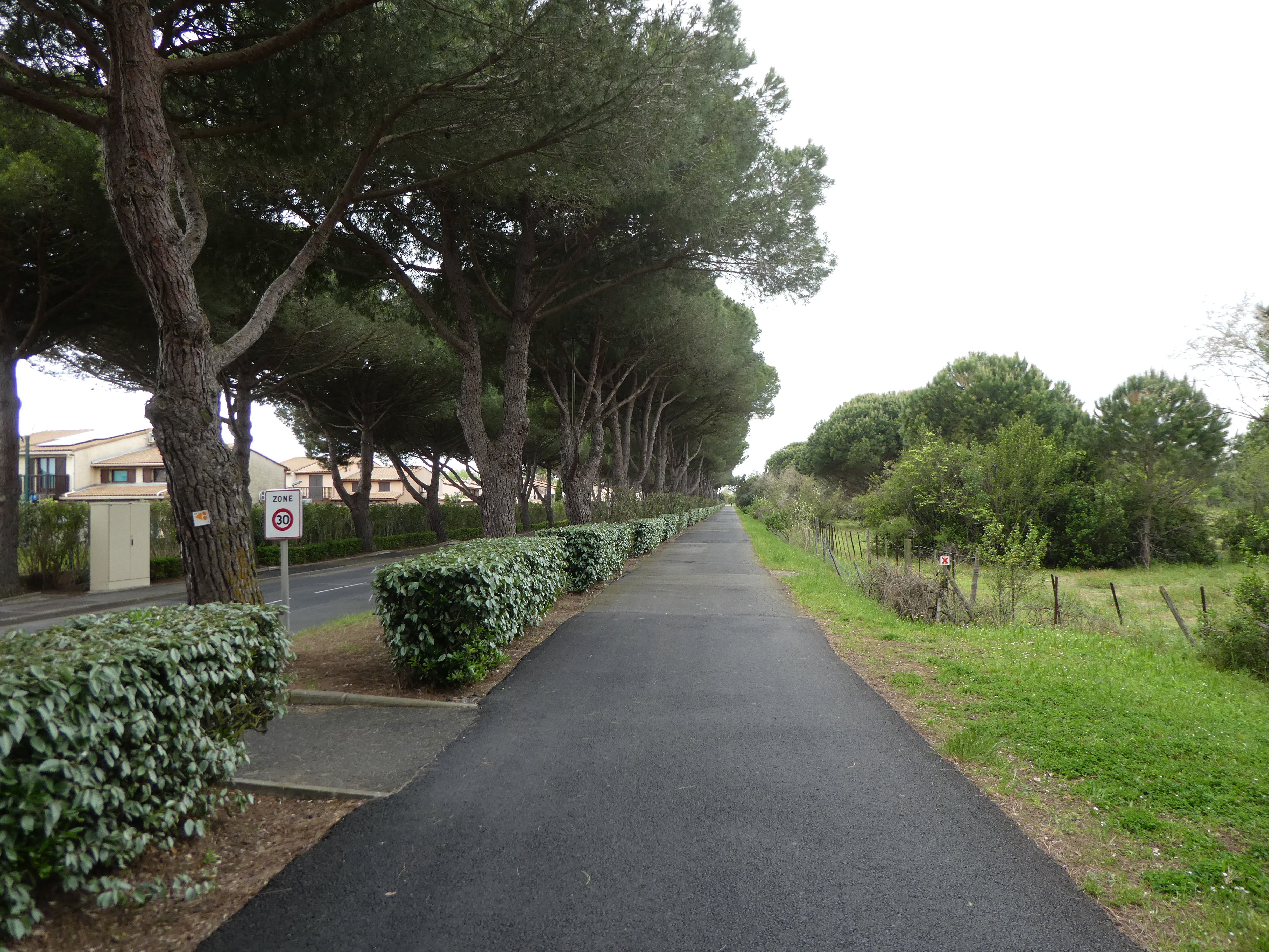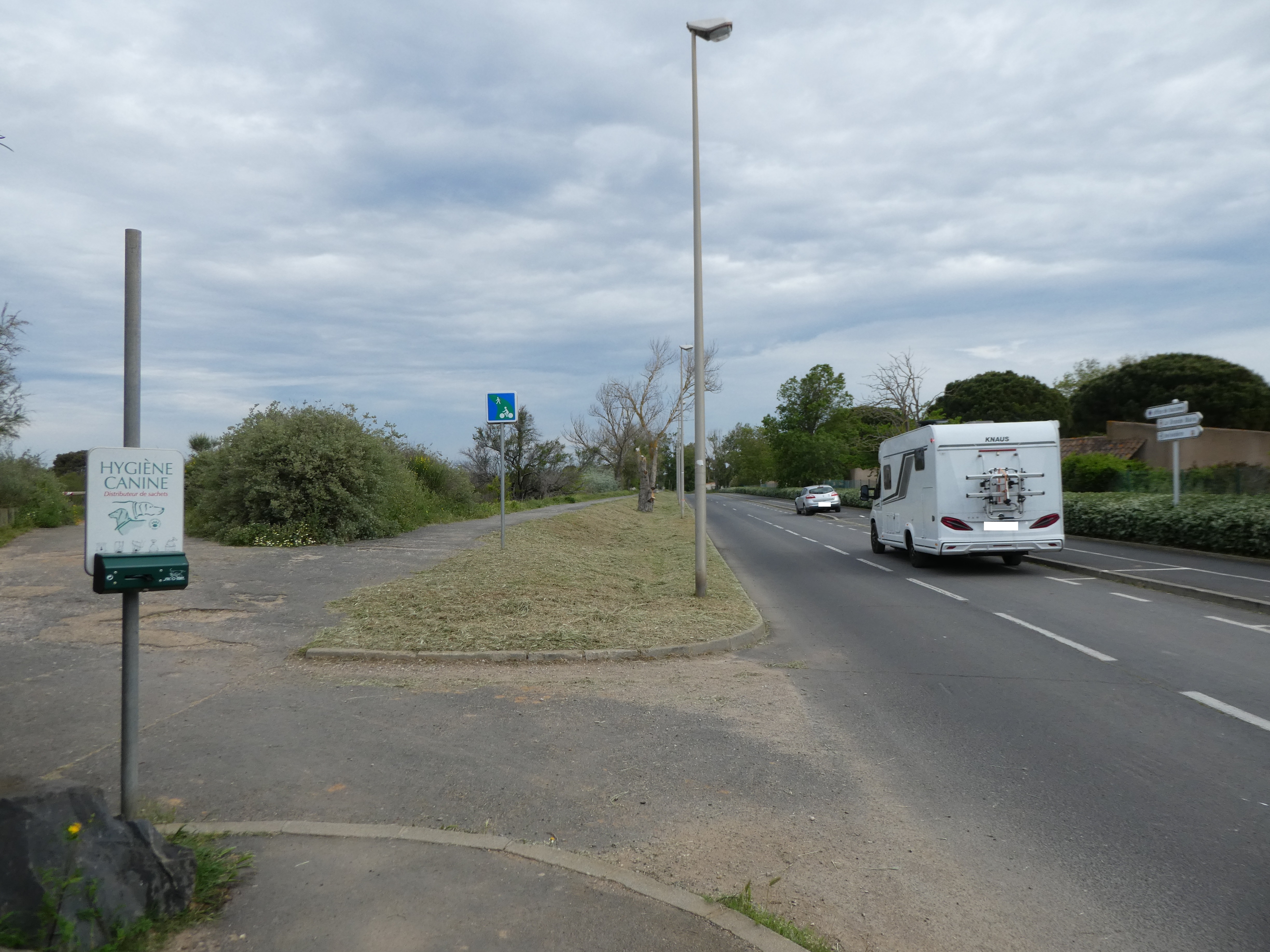 Départ Portiragnes - Mairie (15 m) : suivre la rue partant tout droit (Avenue de l'Égalité) direction Domaine de Médeilhan, aucun balisage