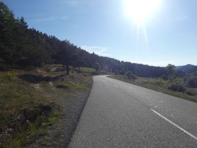 A ce croisement avec la D62 (300 mètres après avoir quitté le sommet), suivre cette dernière sur la droite direction Barre-des-Cévennes, balisé en rouge et blanc dorénavant