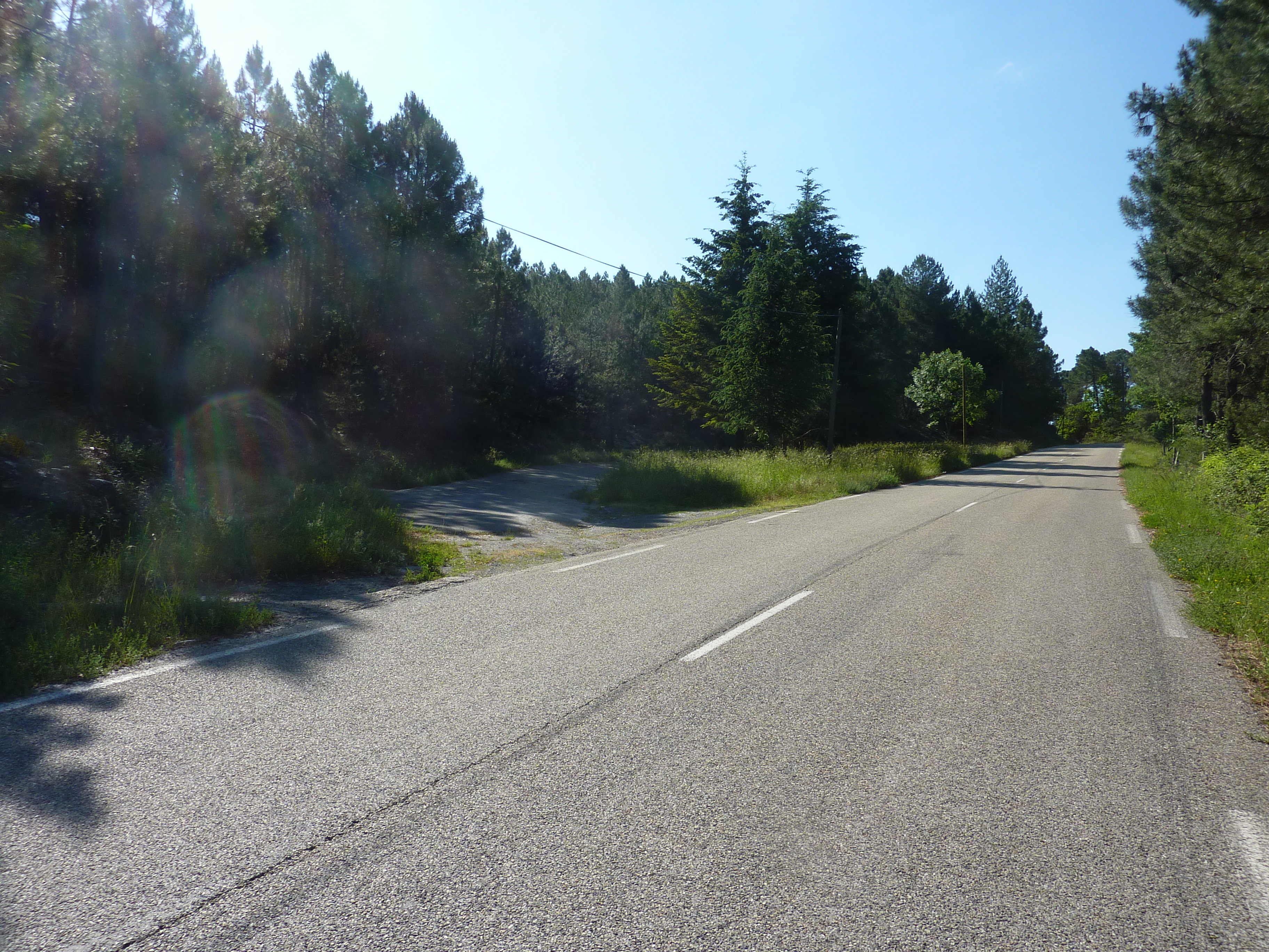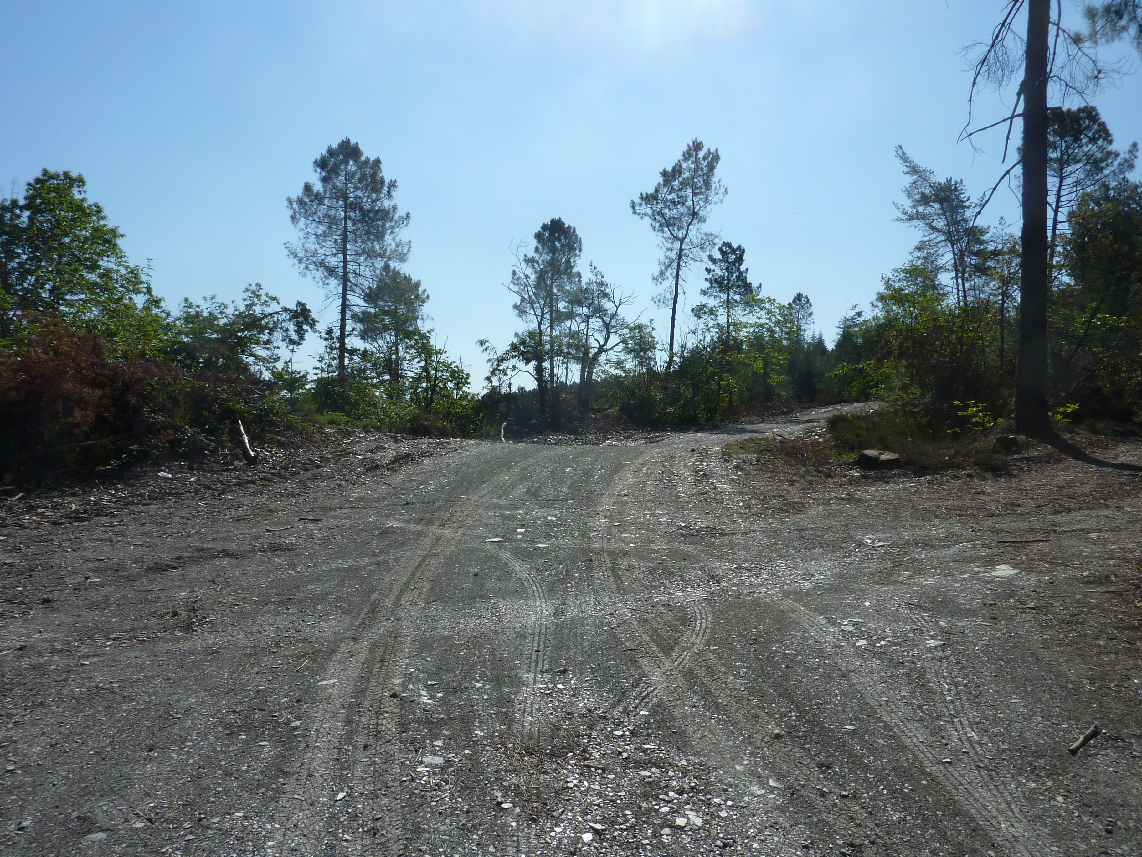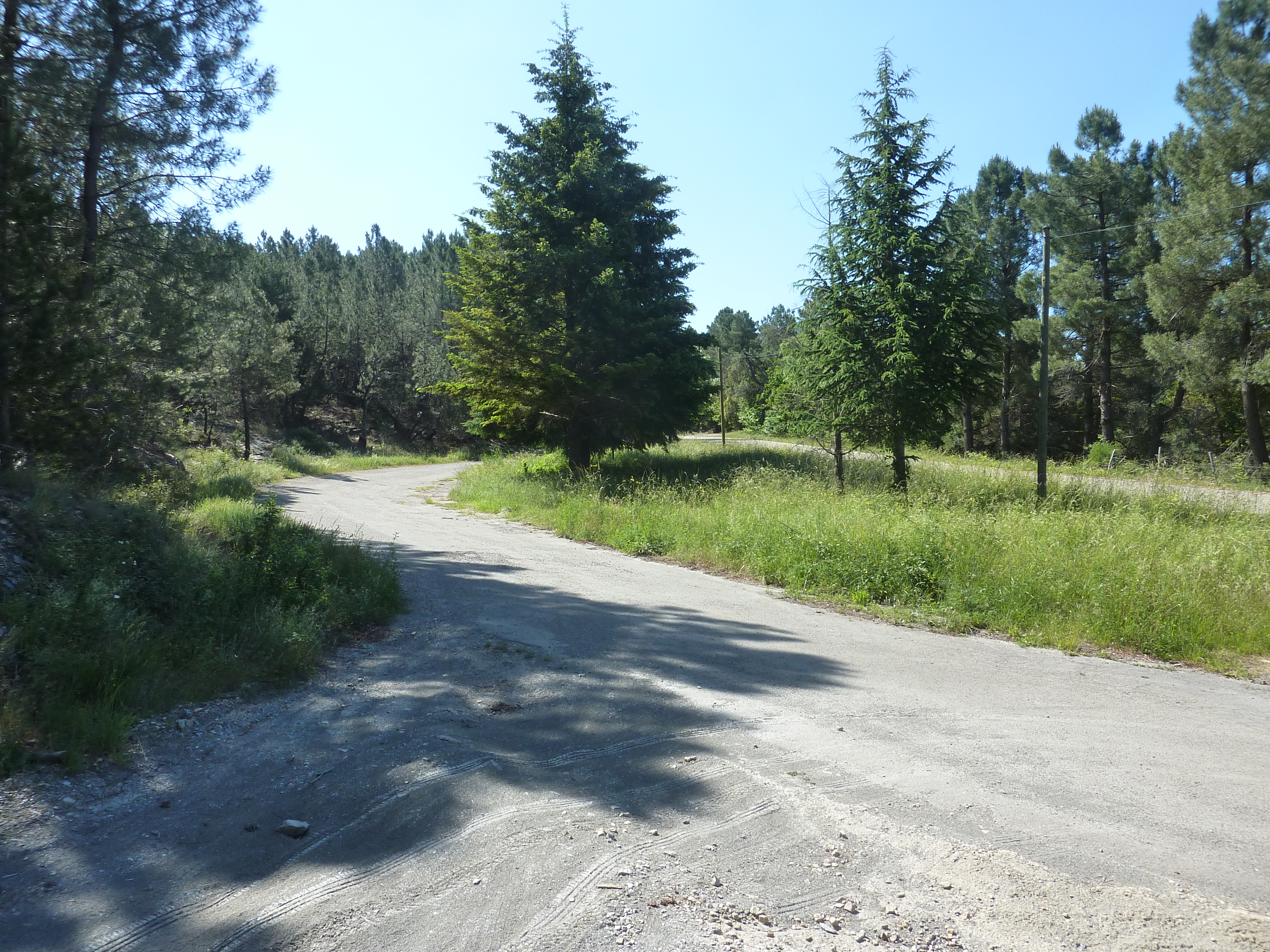 A ce croisement situé au point culminant de la montée (500 mètres après le Col de l'Exil), suivre la piste descendant sur la droite direction Saumane, balisé en jaune (on retourne dans le département du Gard)