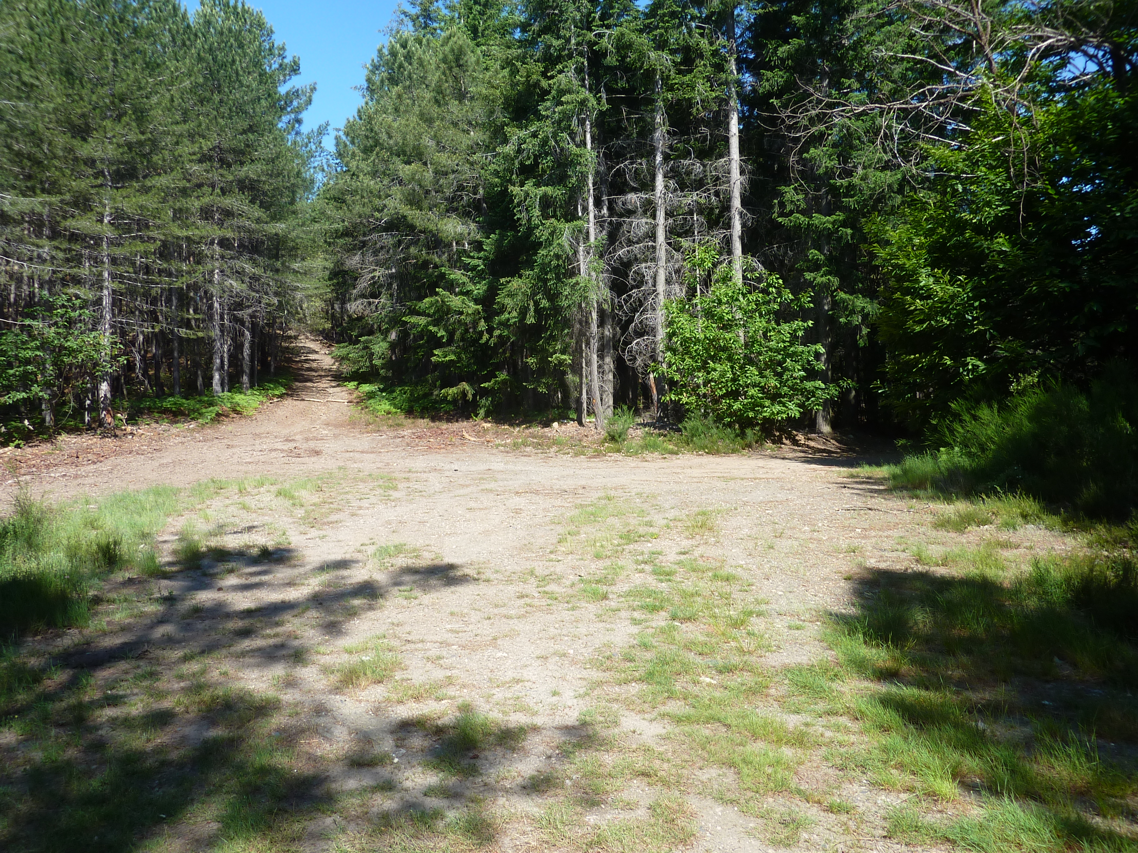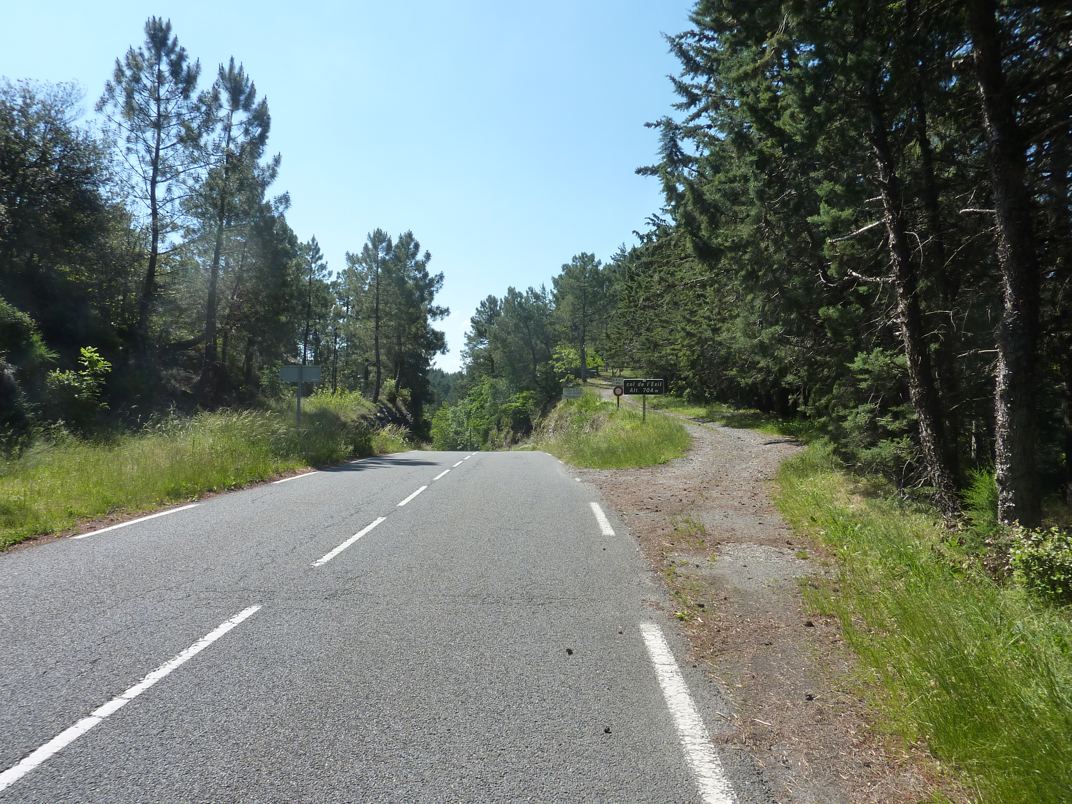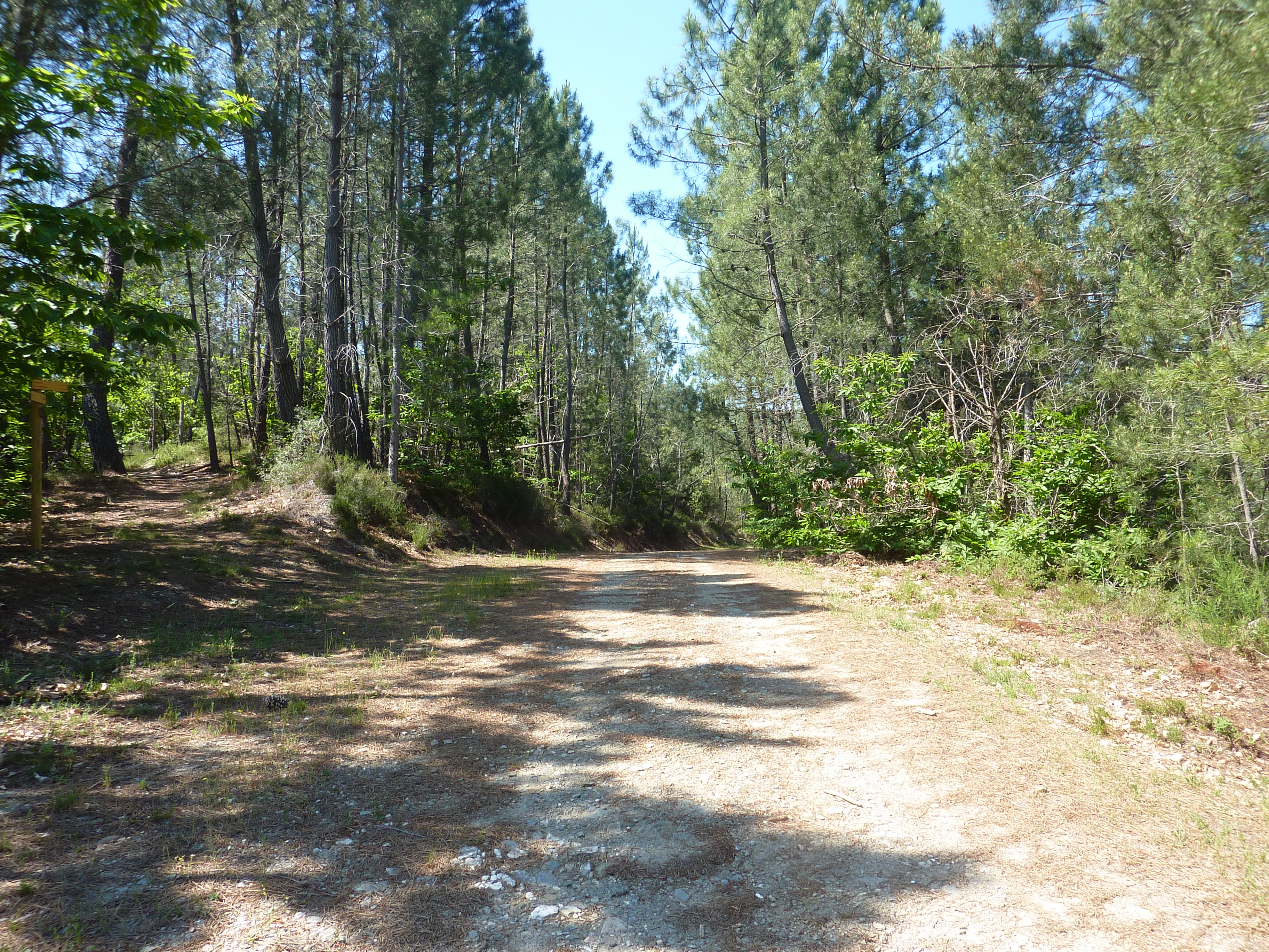A ce croisement situé au point culminant de la montée (500 mètres après le Col de l'Exil), suivre la piste descendant sur la droite direction Saumane, balisé en jaune (on retourne dans le département du Gard)