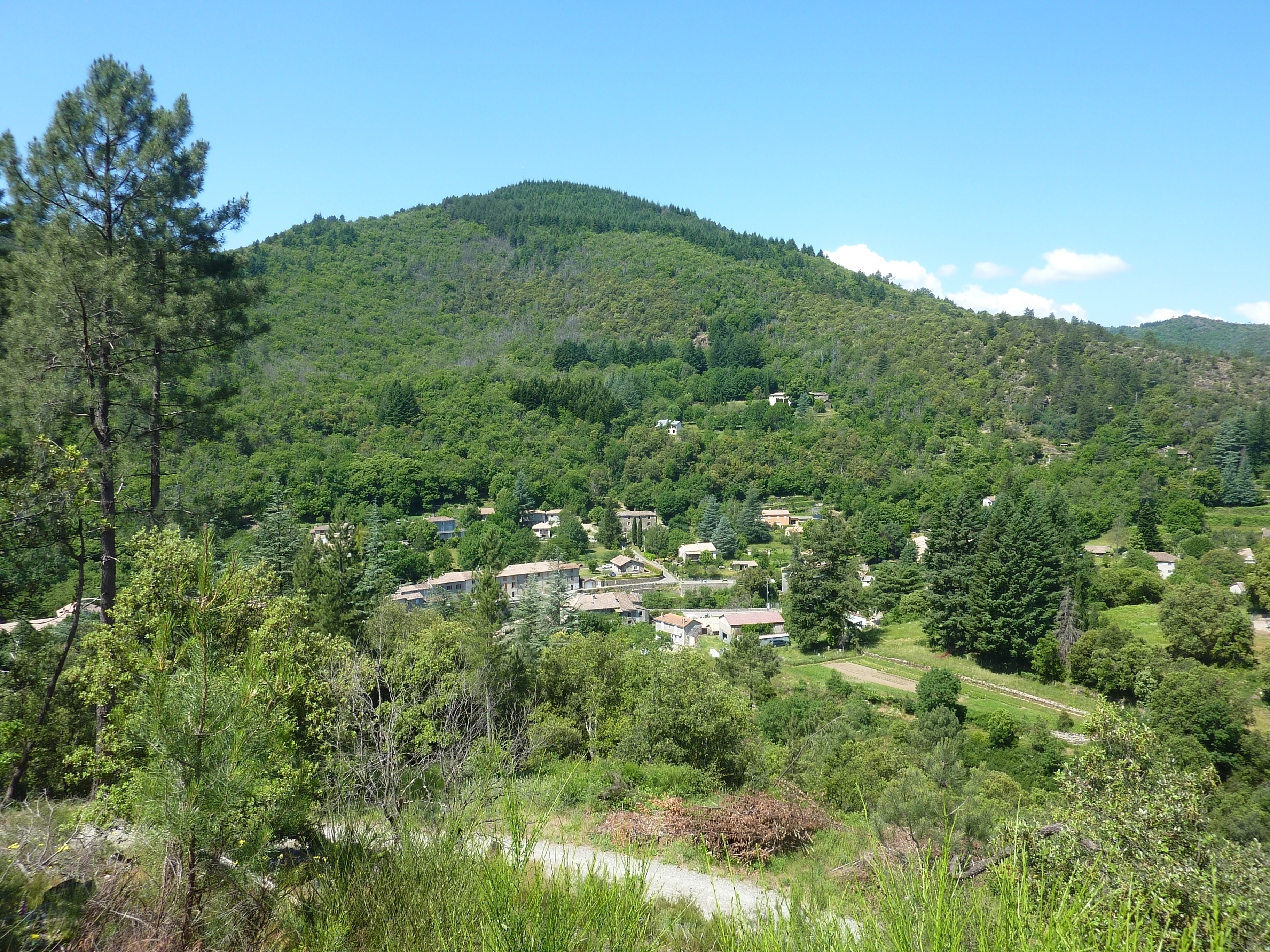 On aperçoit le hameau de Saint-Roman-de-Tousque