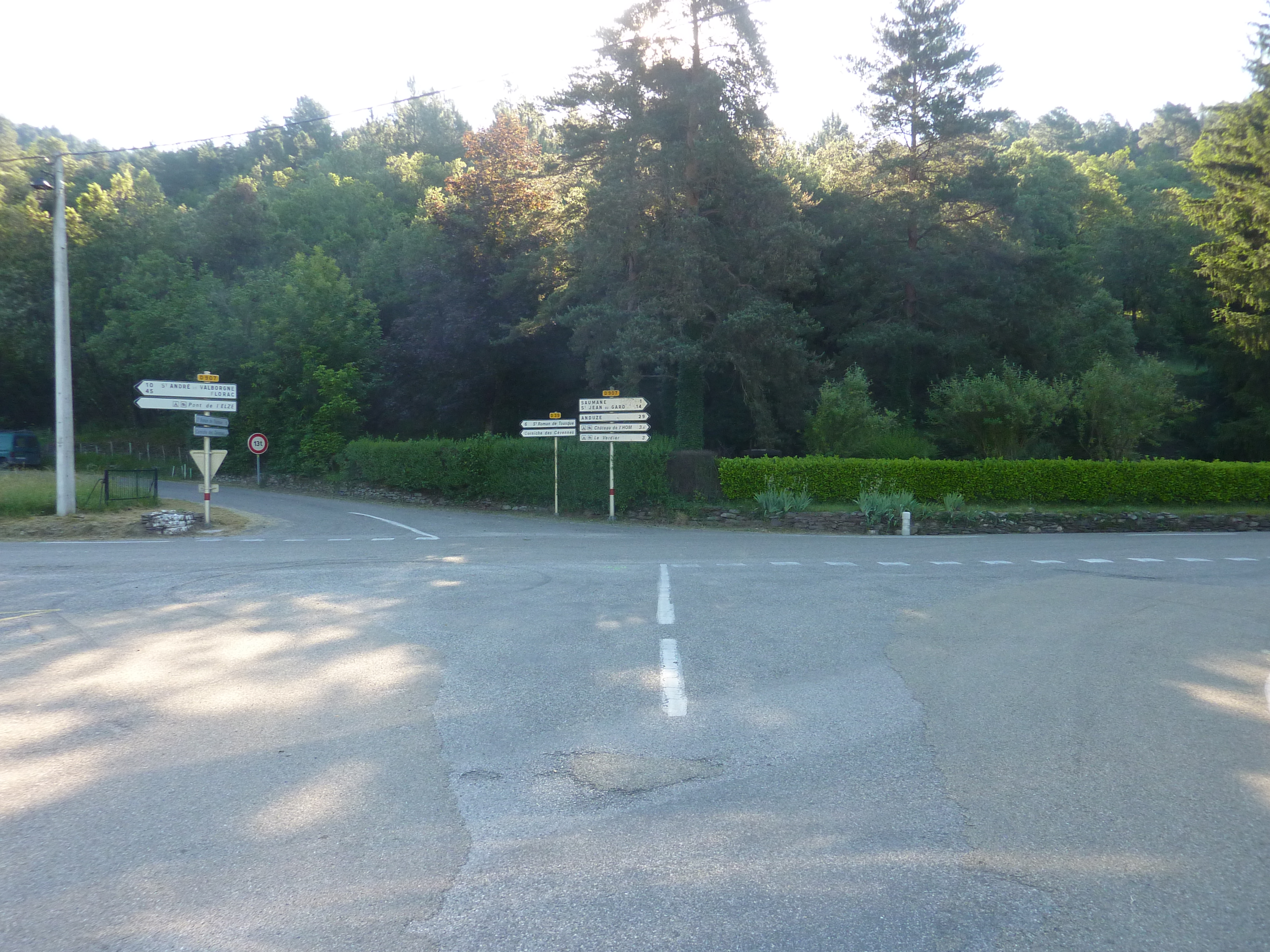 A ce croisement avec la D20 (250 mètres après le précédent) (345 m), suivre cette dernière sur la droite direction Col de l'Exil, balisé en jaune