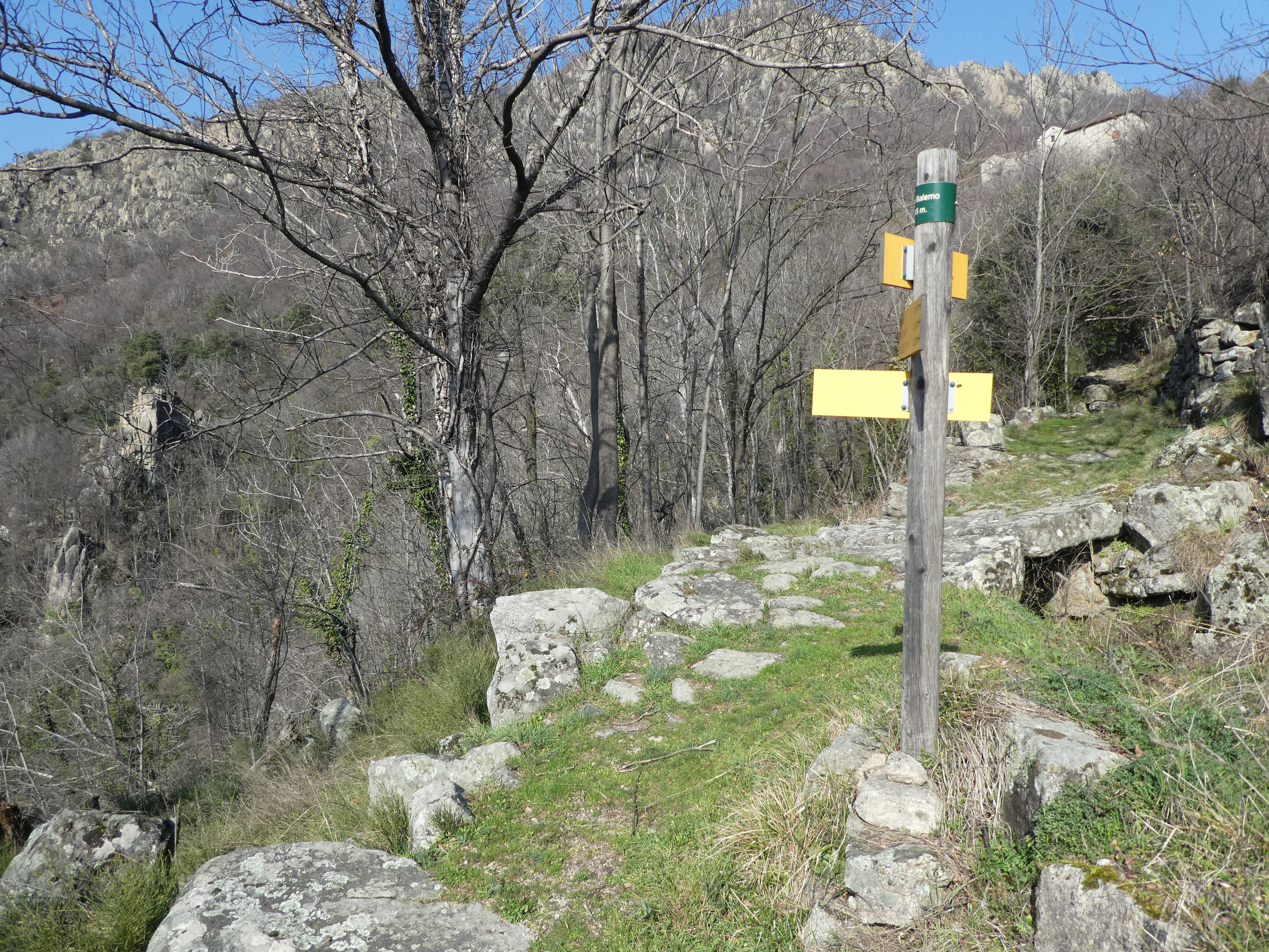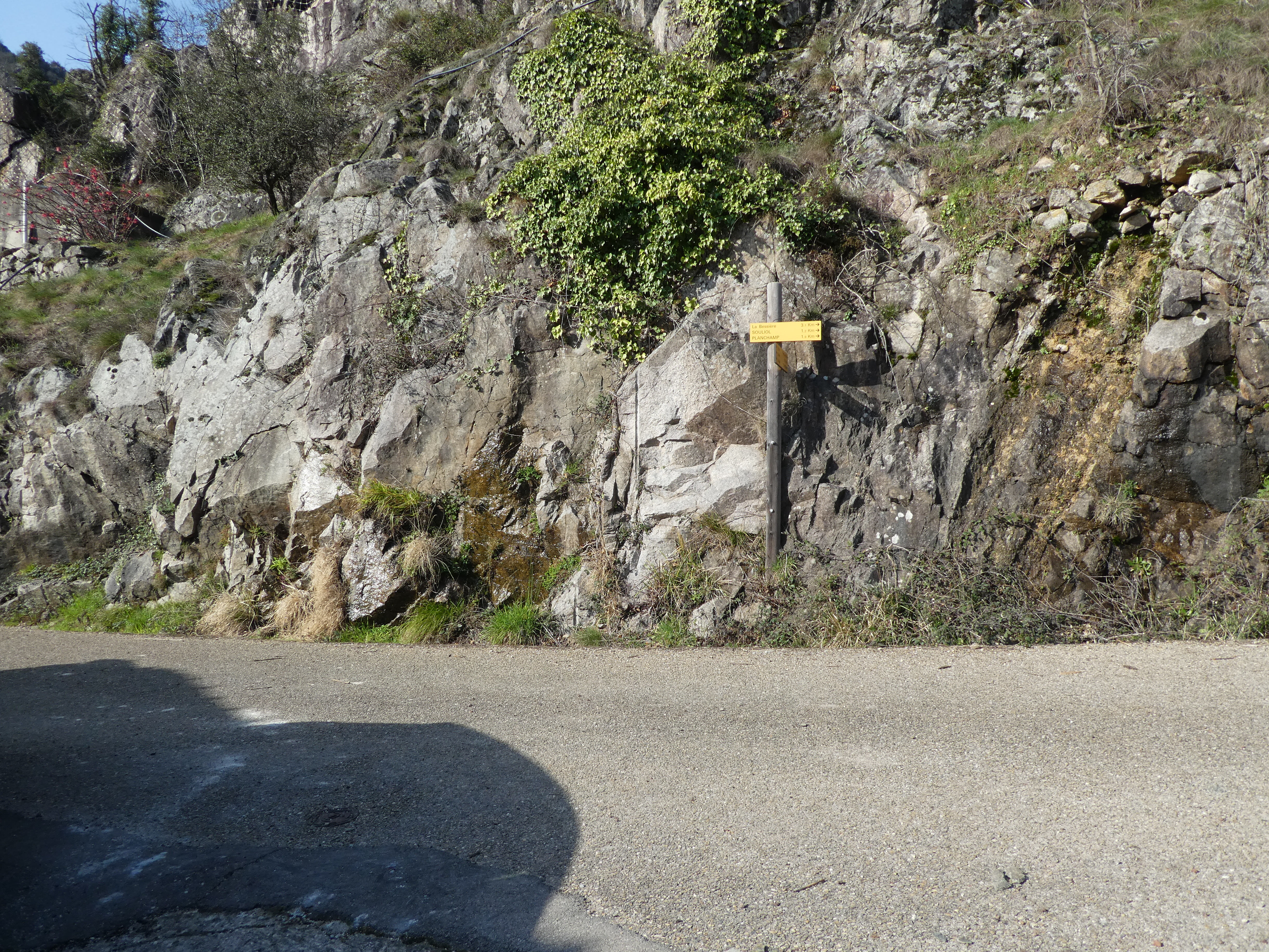 A ce croisement marqué par la présence d'un panneau directionnel (200 mètres après le départ), suivre le chemin partant sur la droite direction la Viale, balisé en jaune (il y a un point de vue sur les Gorges du Chassezac en face)