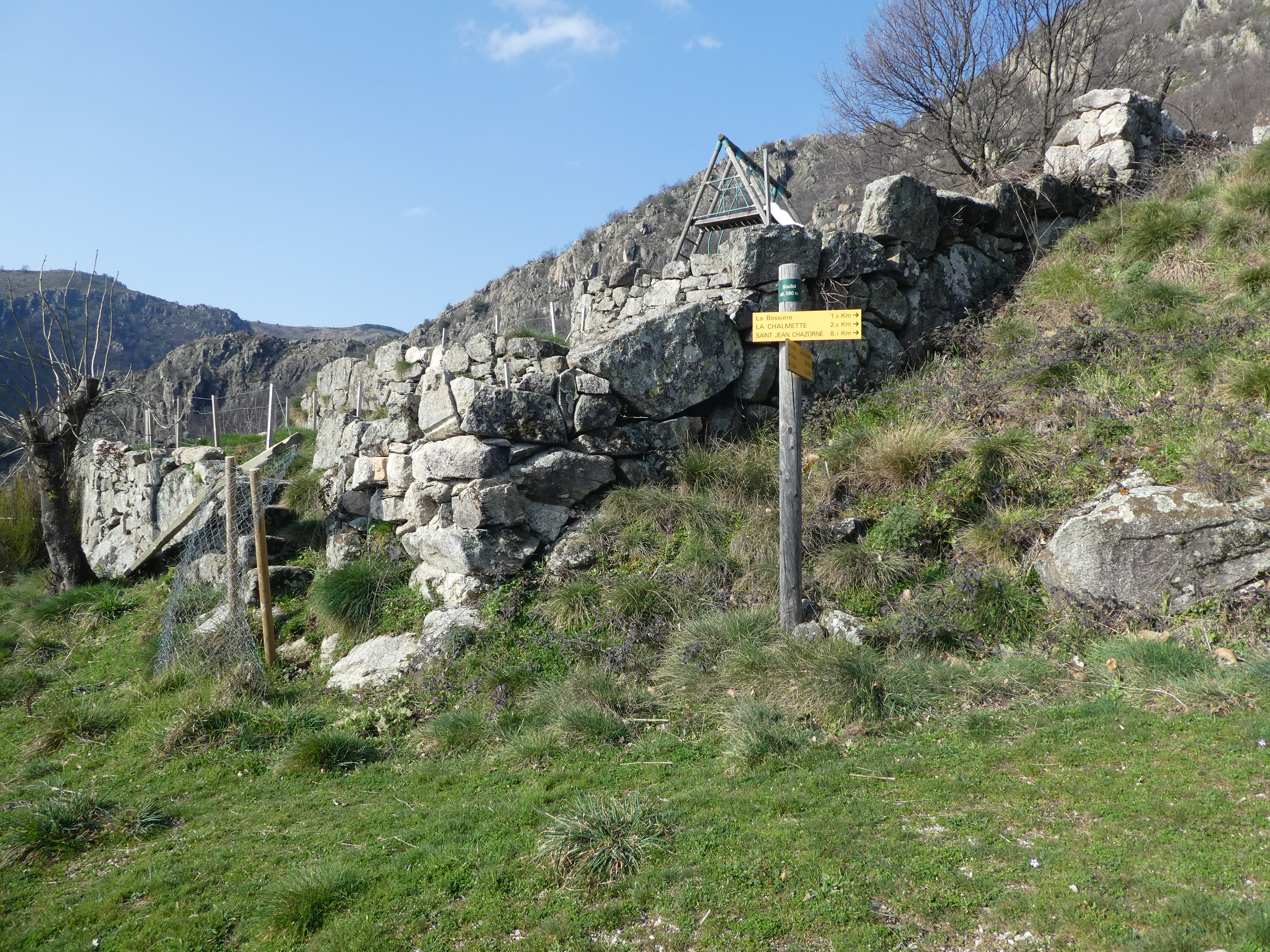 Les Ritournelles (860 m) : suivre le chemin partant tout droit direction la Viale, balisé en jaune