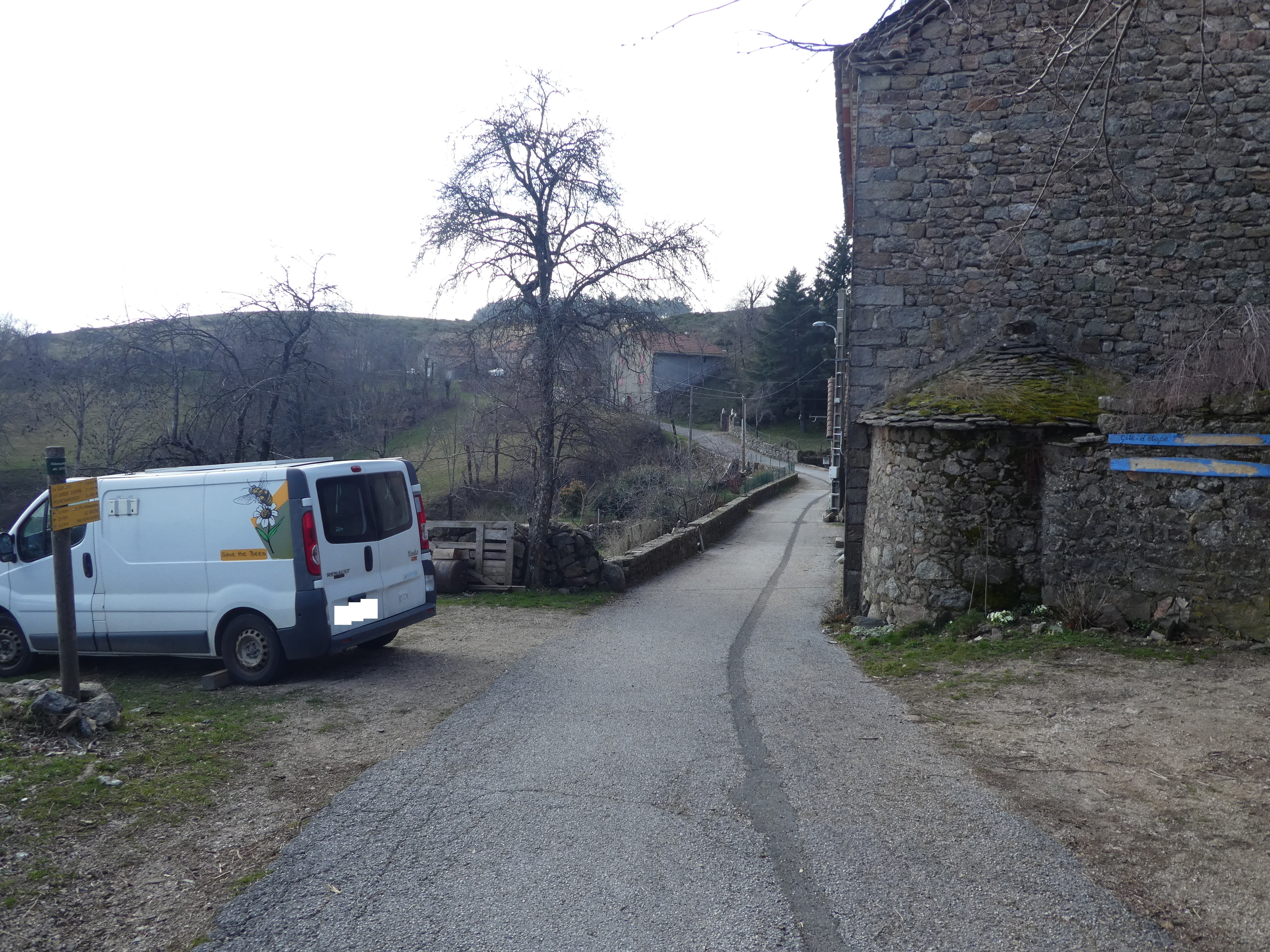 A ce croisement avec le chemin balisé venant de Pied-de-Borne (25 mètres après avoir traversé le Chassezac), suivre ce dernier sur la gauche direction Beyssac, balisé en jaune désuet dorénavant
