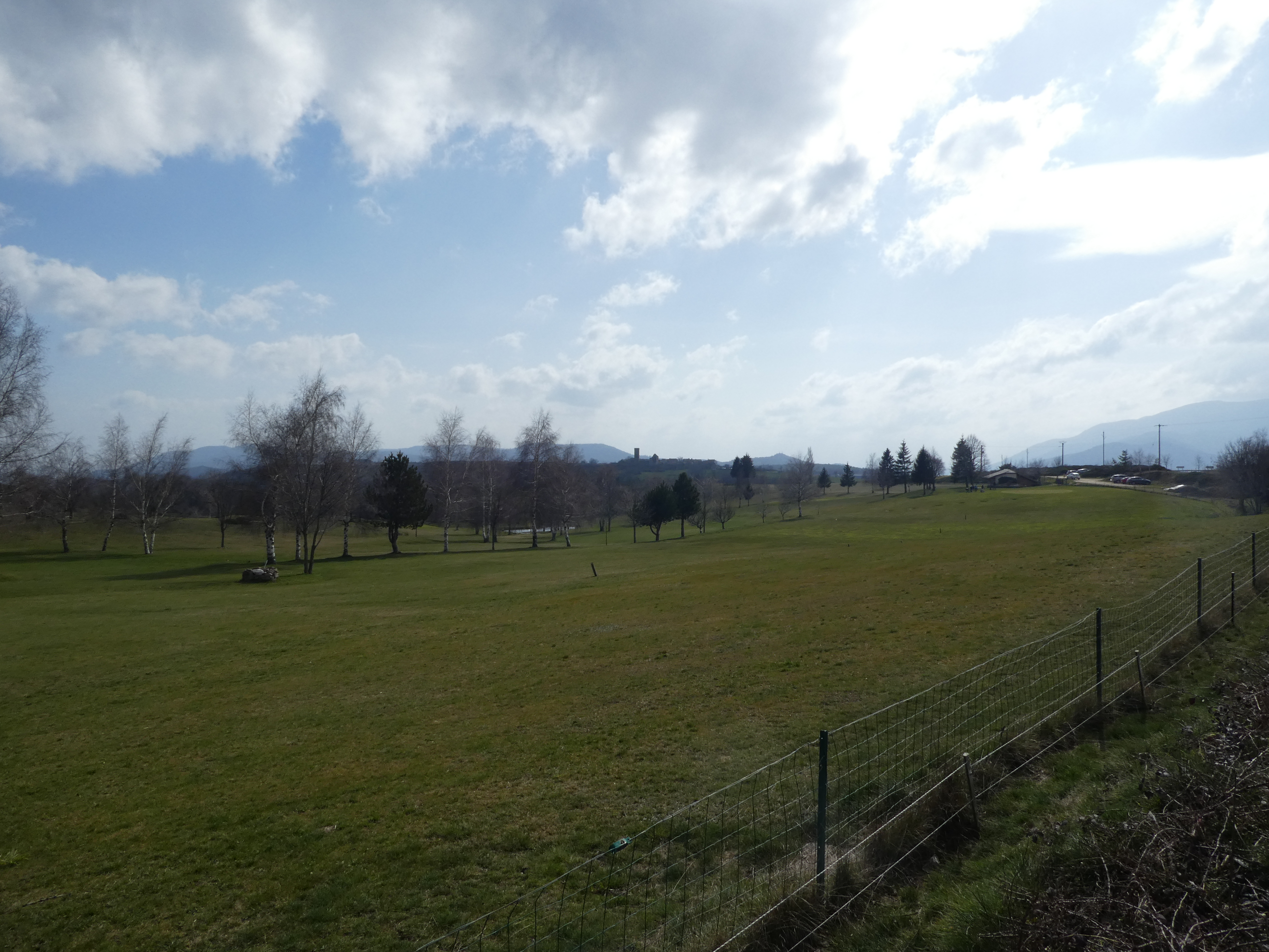 Le Golf (879 m) : suivre le chemin partant tout droit direction la Garde Guérin, balisé en rouge et blanc