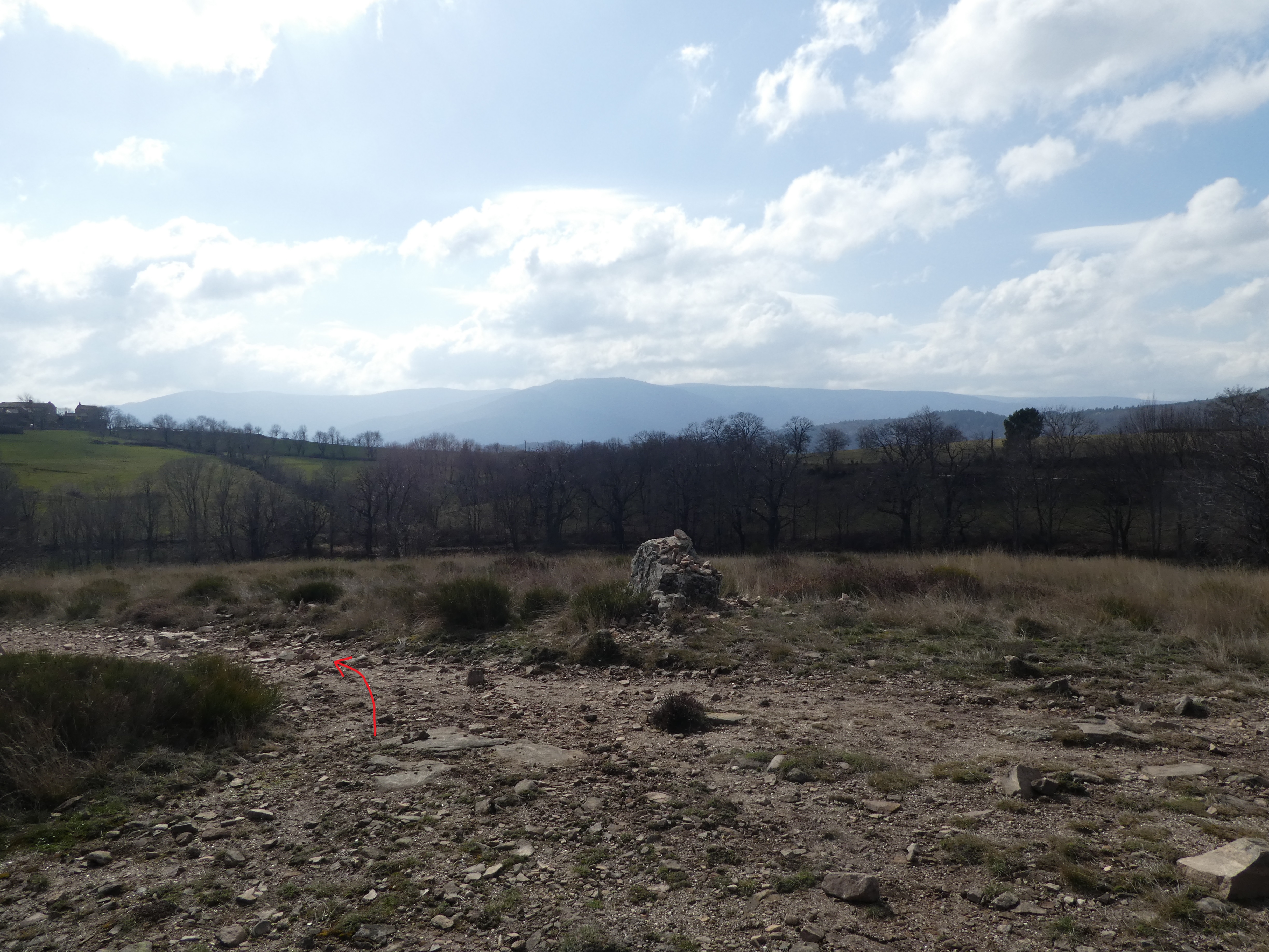 La Chalmette (865 m) : suivre le chemin discret partant sur la droite et longeant une clôture direction la Garde Guérin (par le Roure), balisé en jaune et rouge