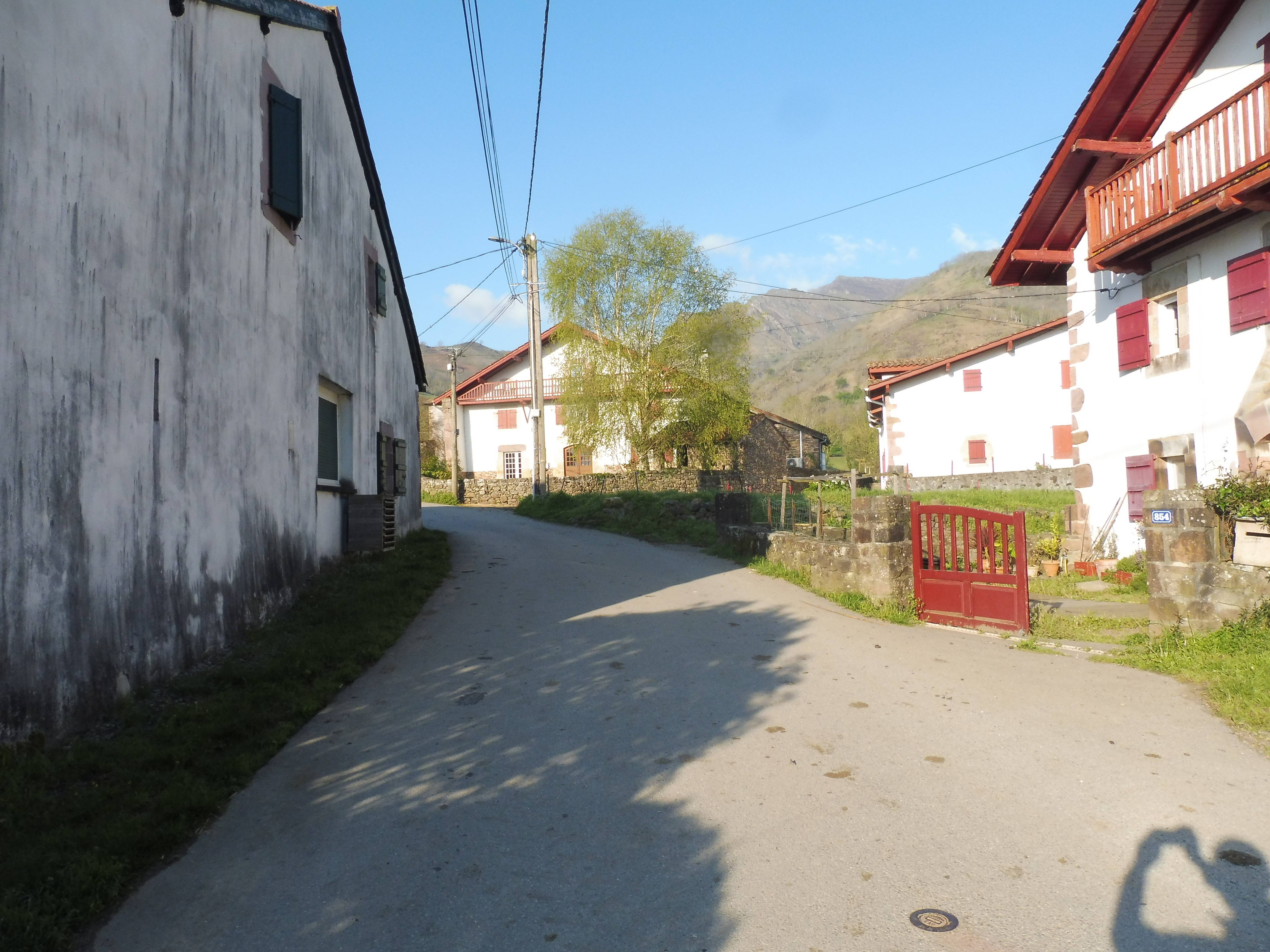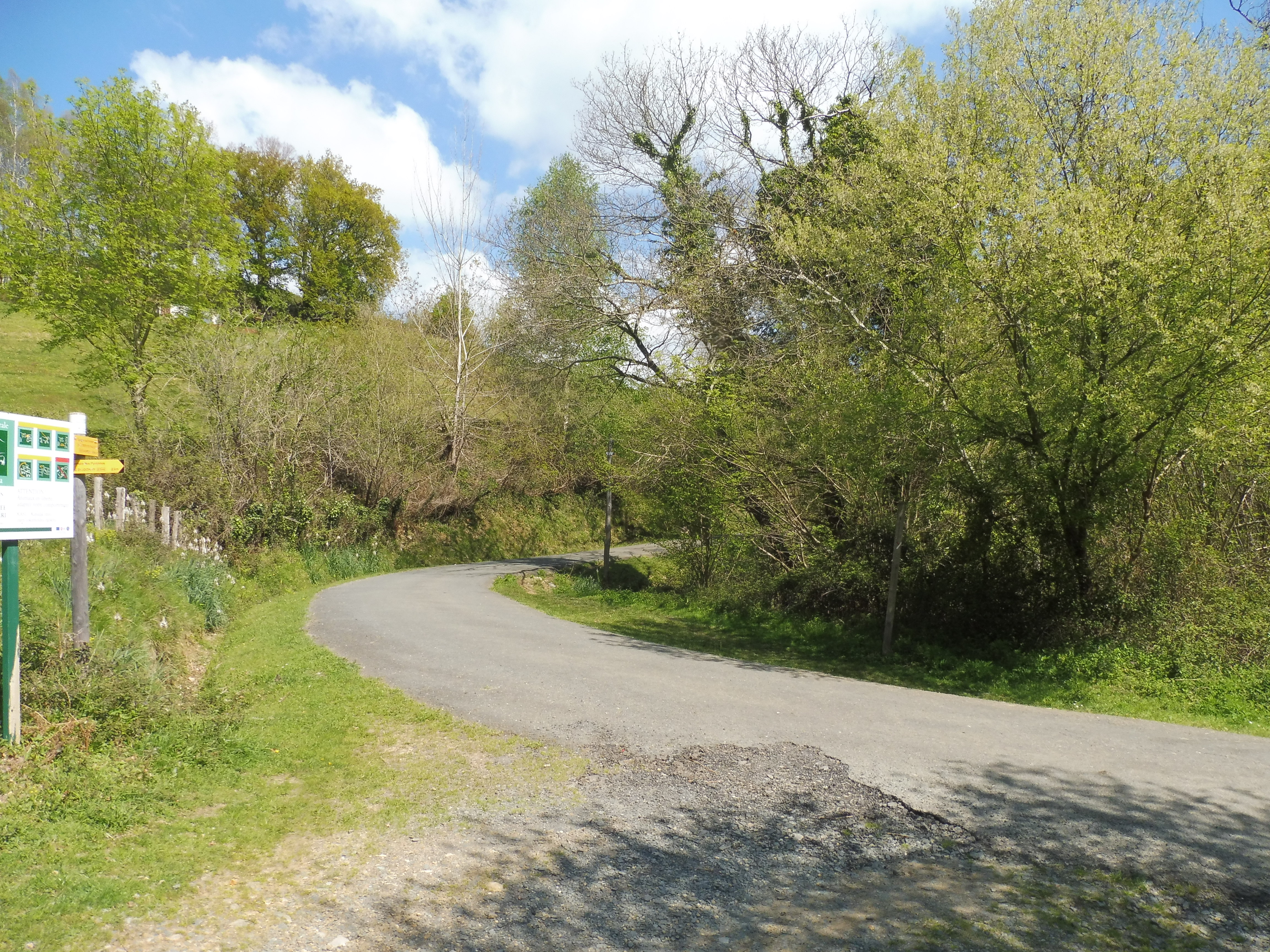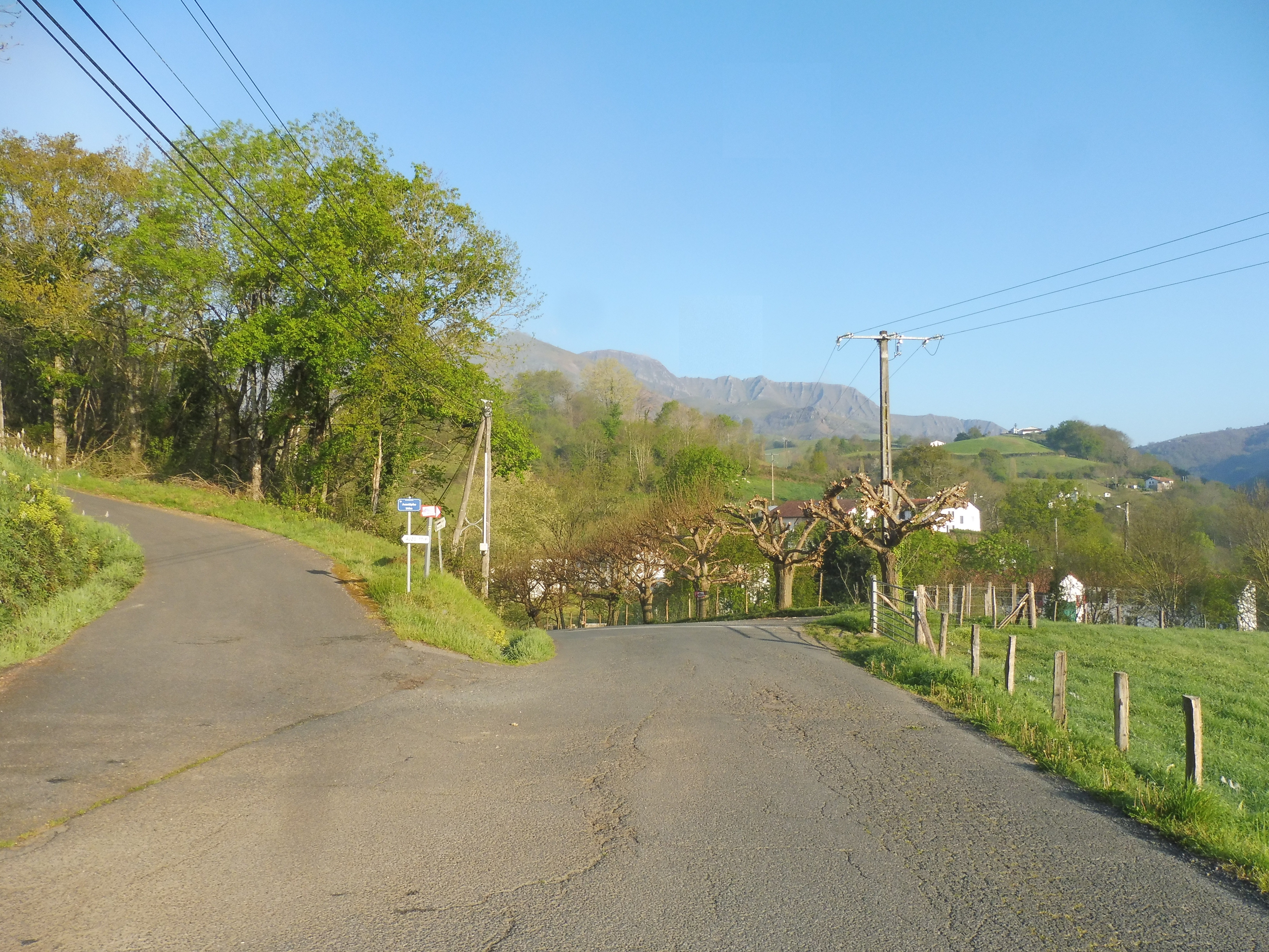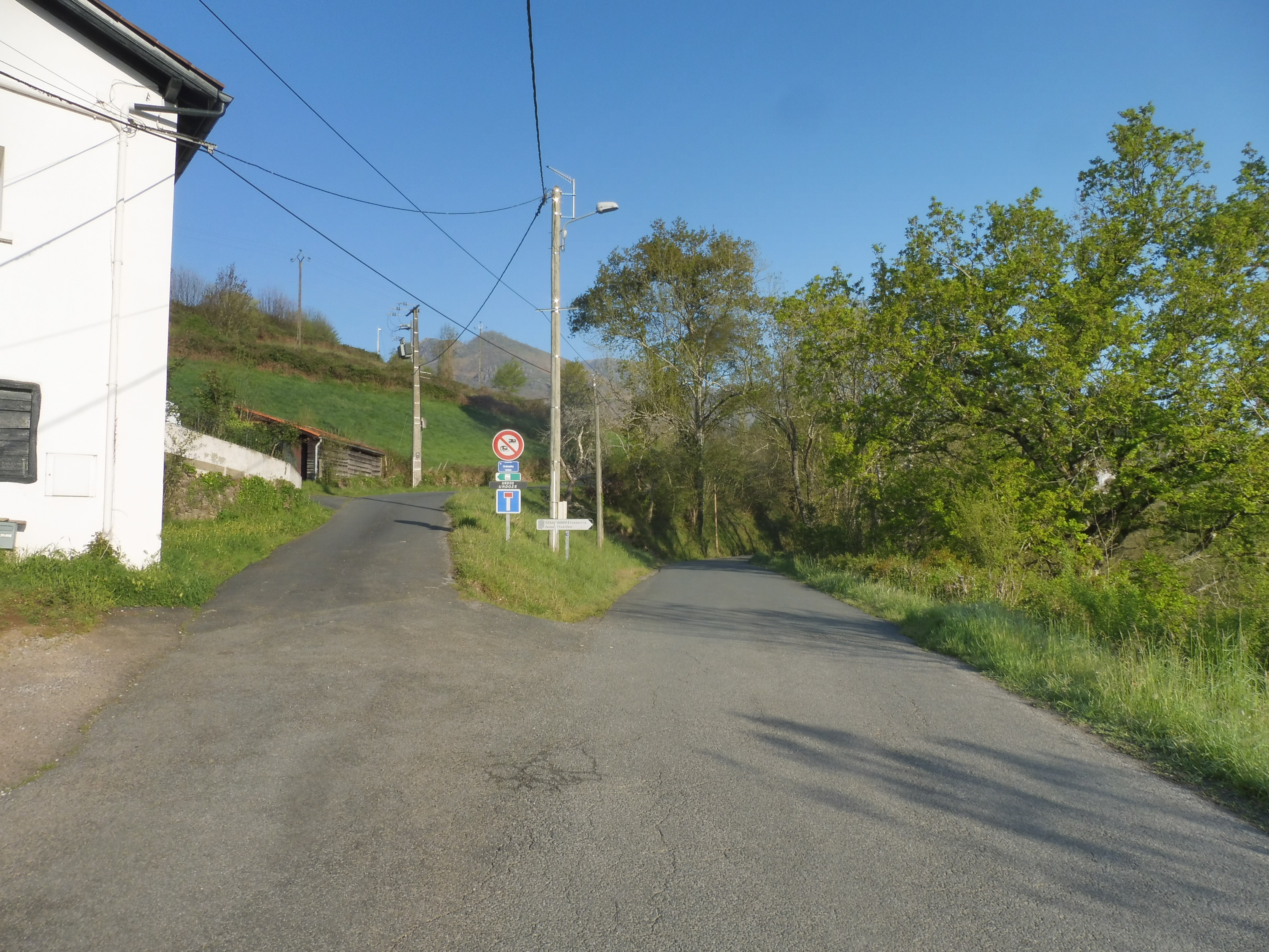 A cette intersection (400 mètres après la précédente), suivre la route partant sur la gauche direction Urdoze, balisé sporadiquement en jaune et bleu