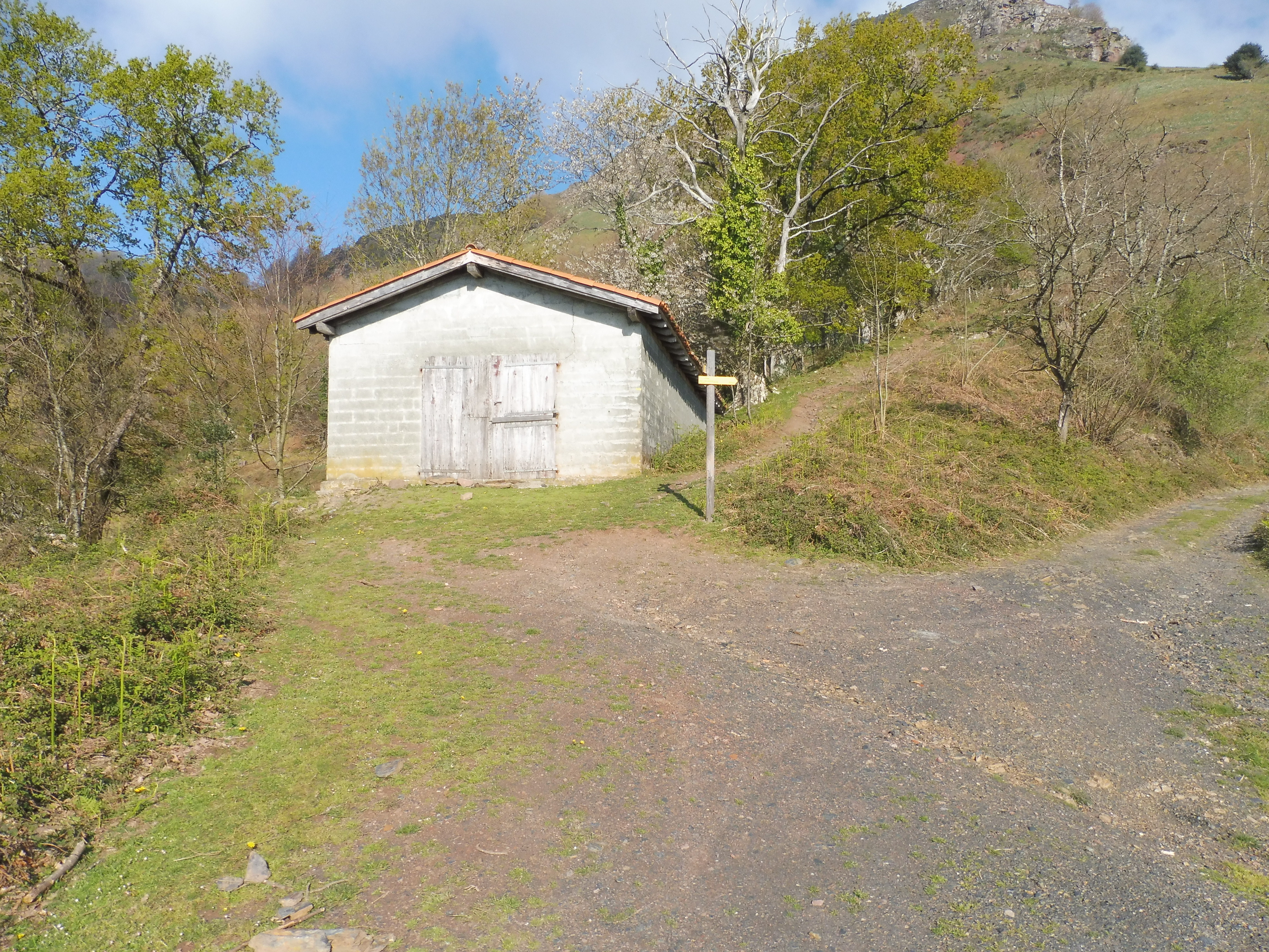 Saroixarreko Borda (631 m) : suivre le chemin montant raidement tout droit direction Harrietako Lepoa, balisé en jaune