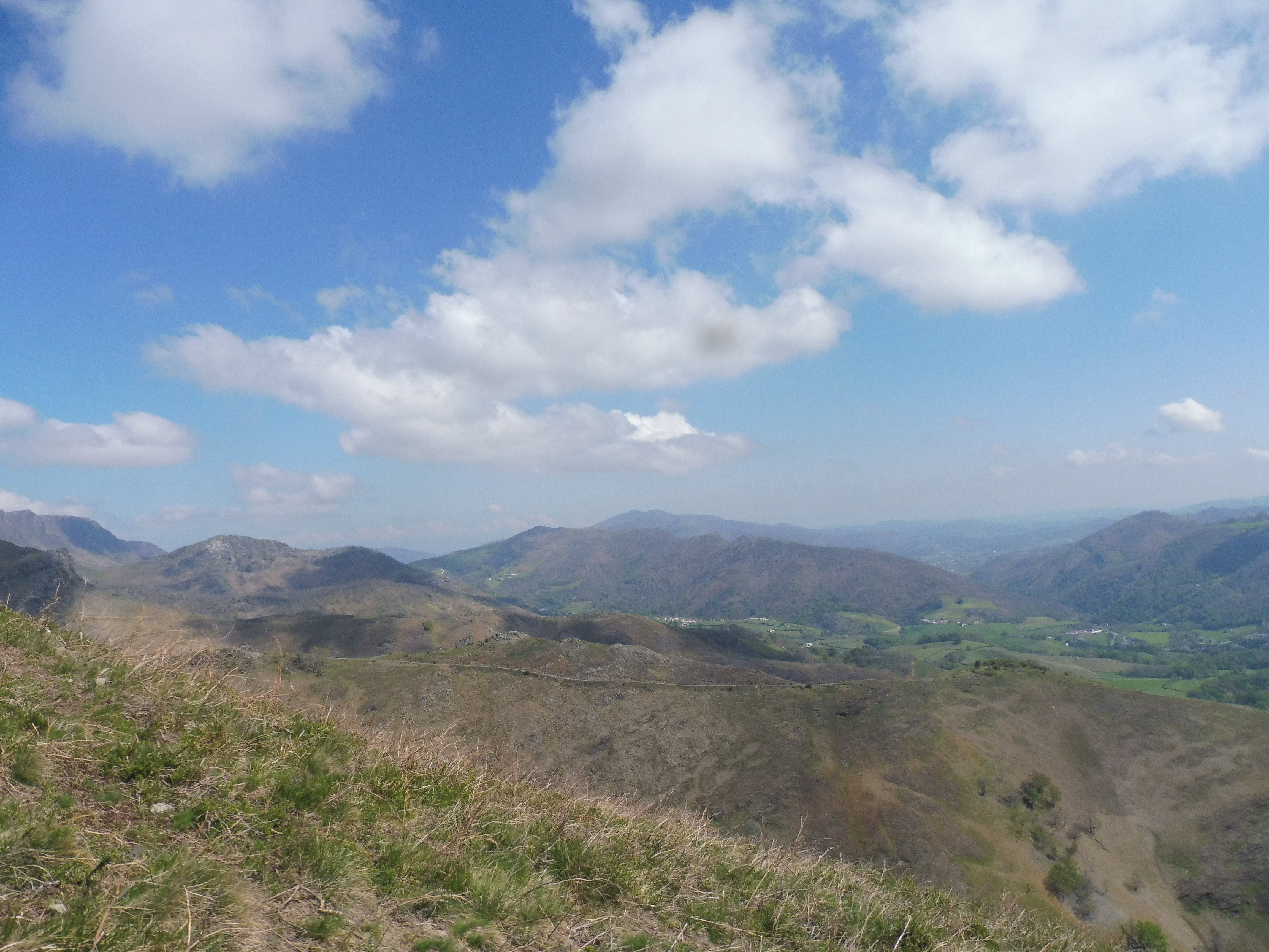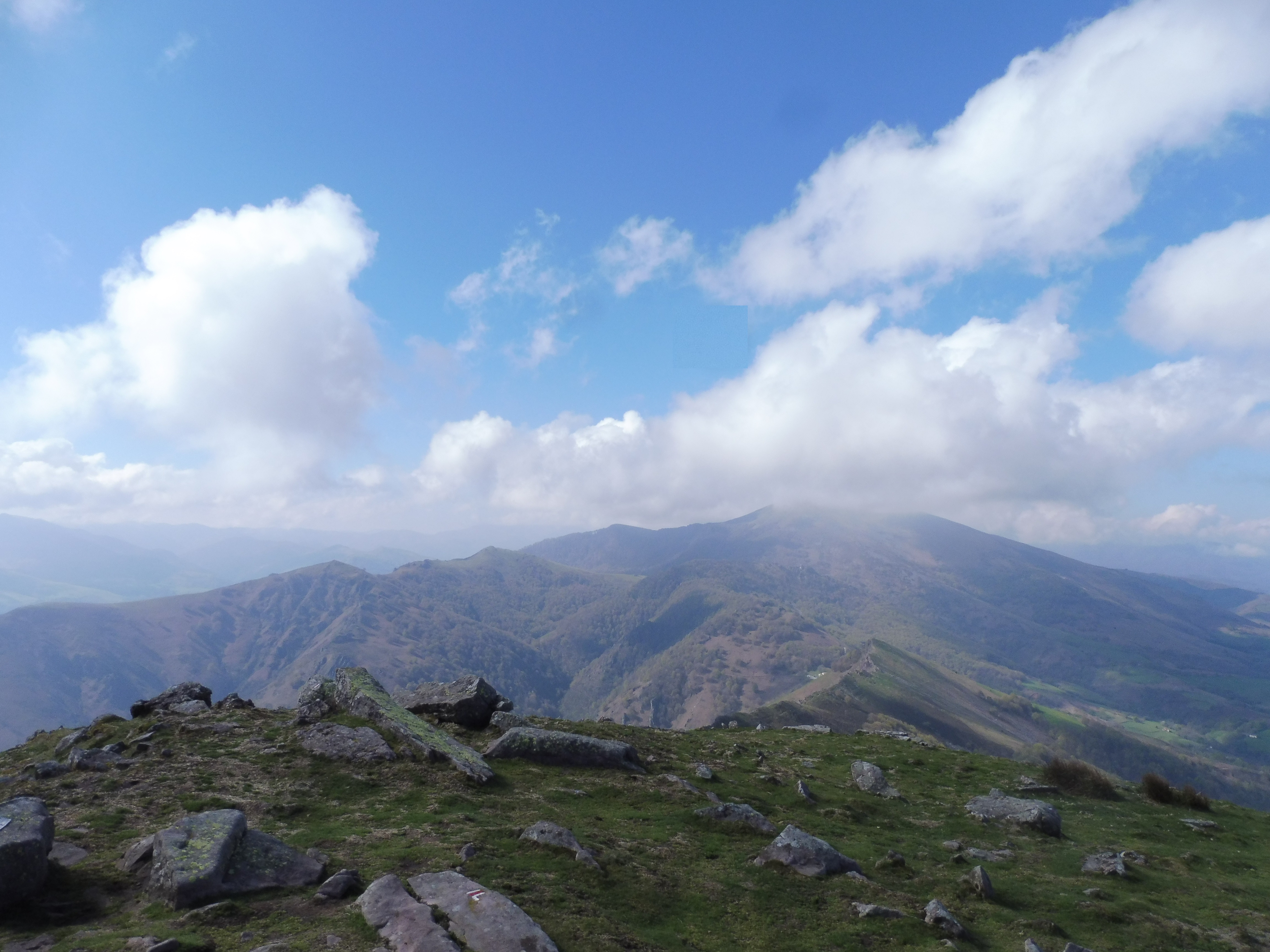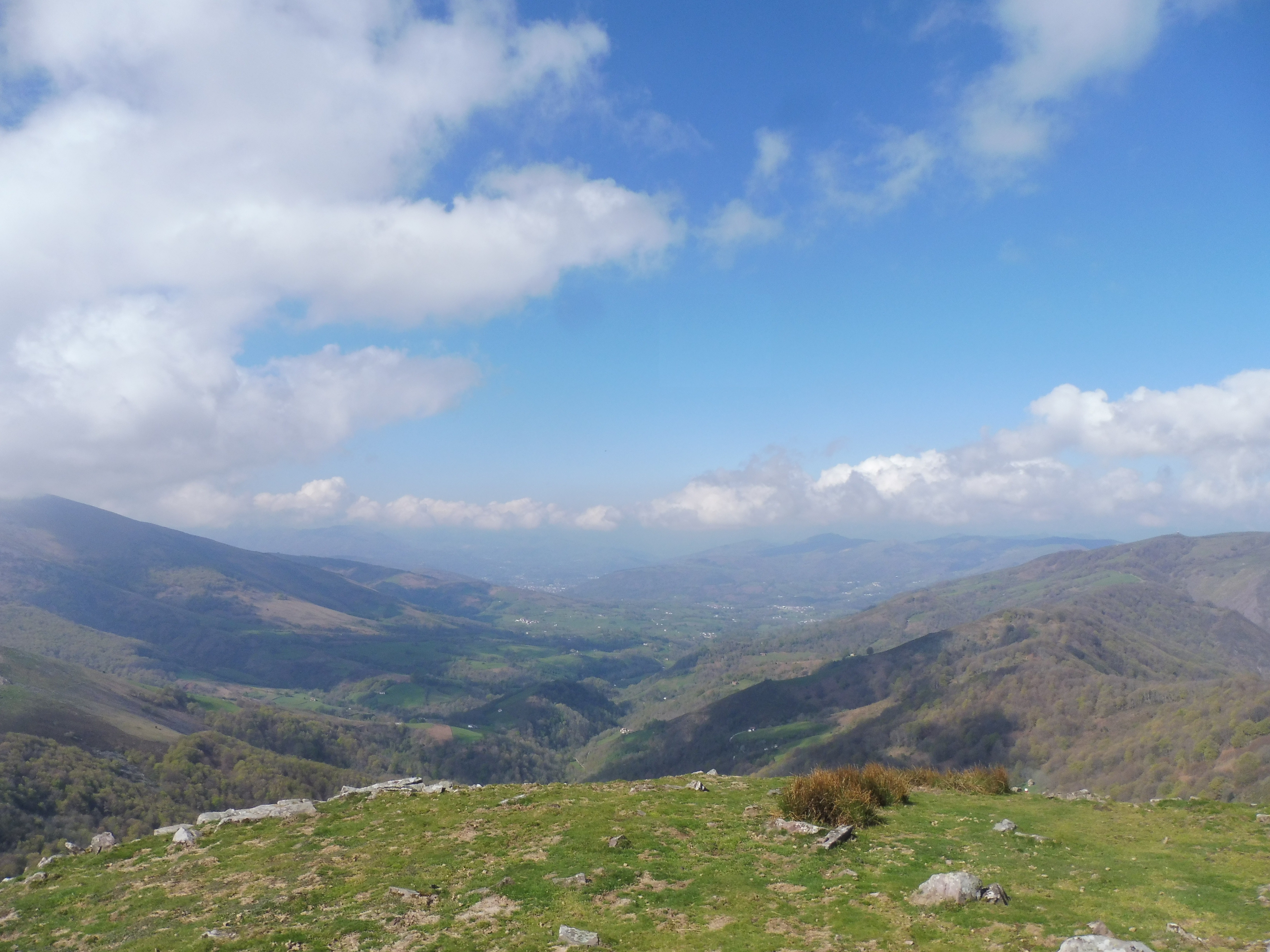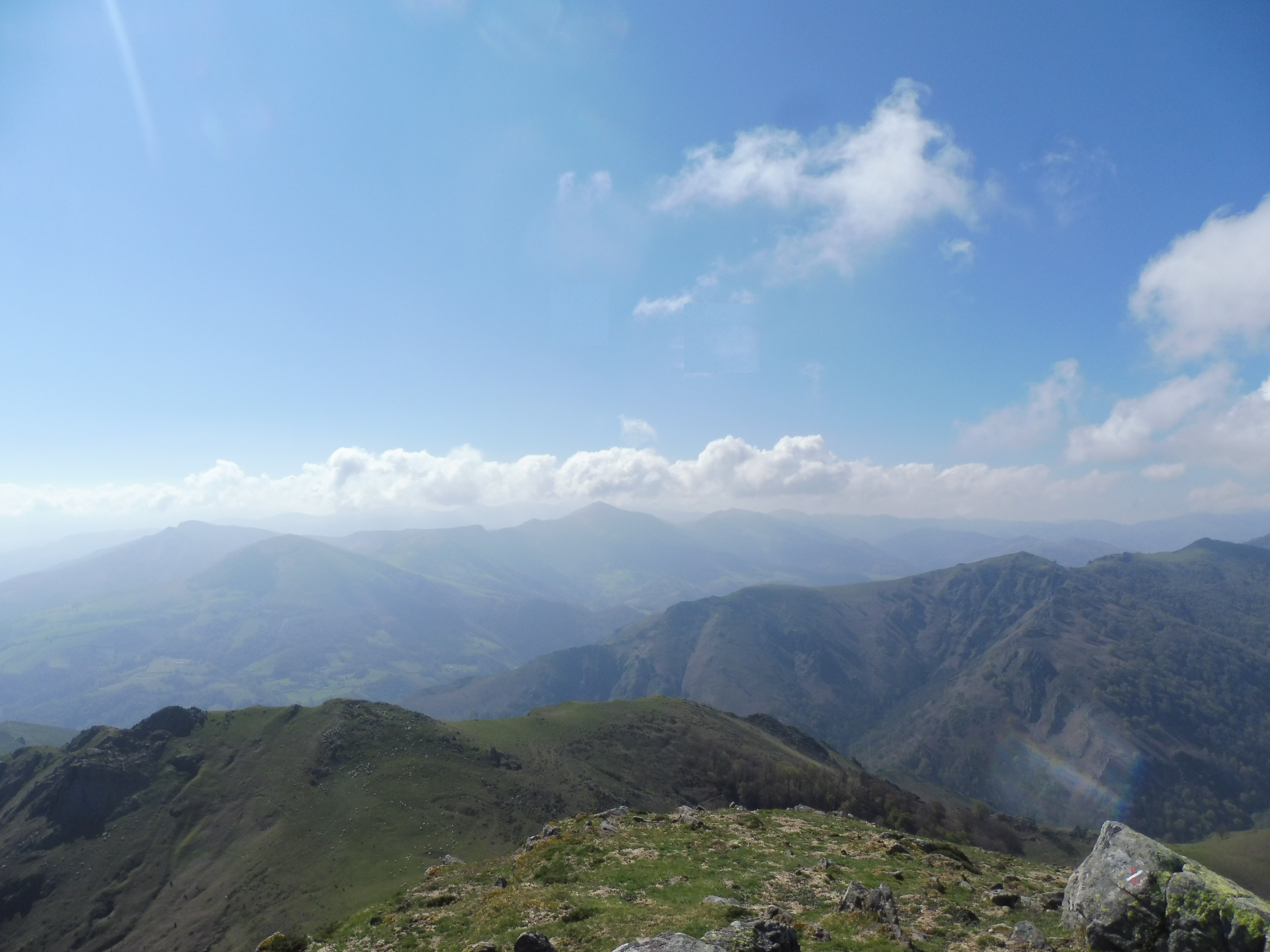 Arrivée au sommet d'Astate (1015 m) : beau panorama sur les sommets de la Valle de Baztan, des Crêtes d'Iparla et de la Basse-Navarre malgré la présence de nuages