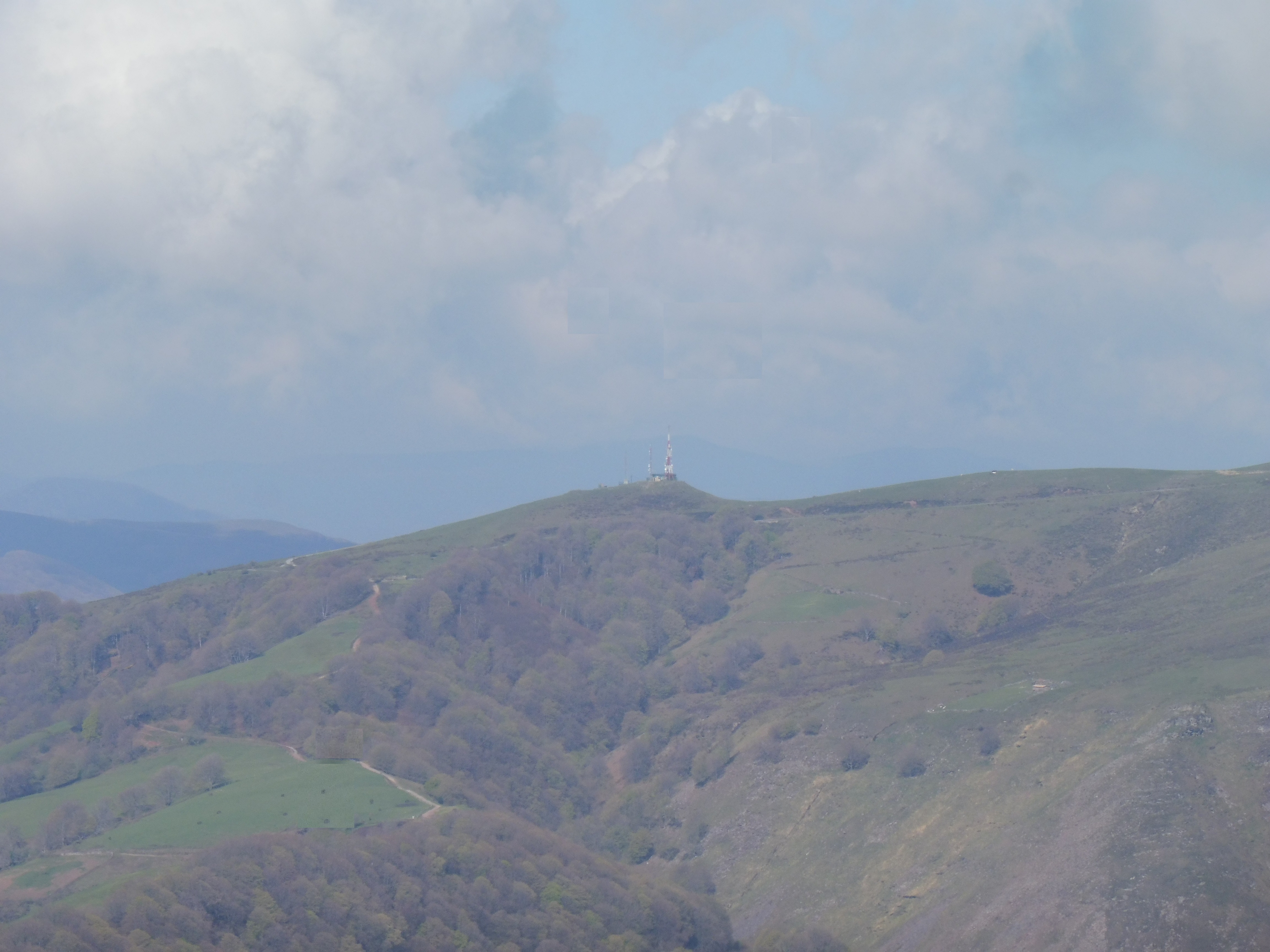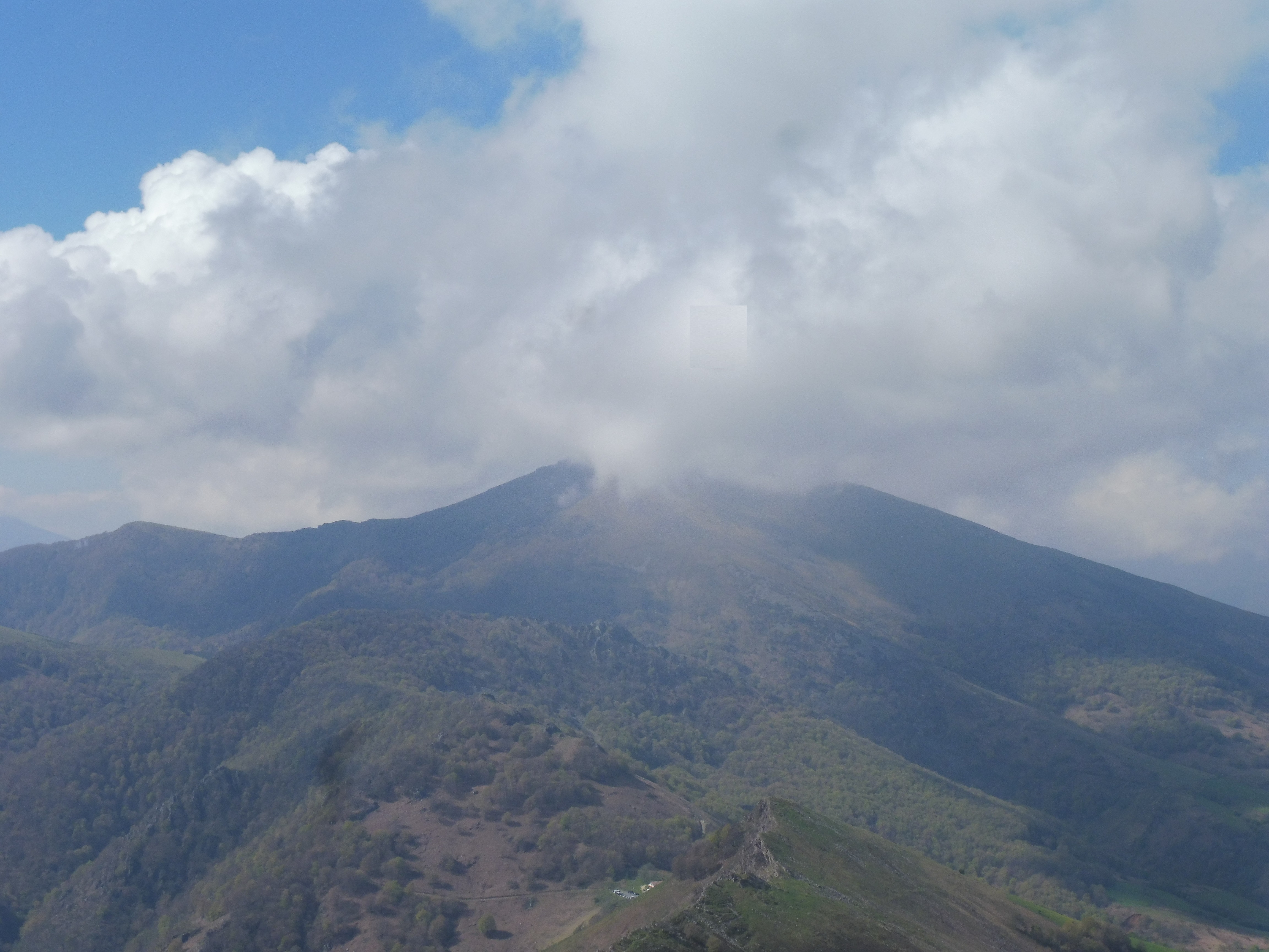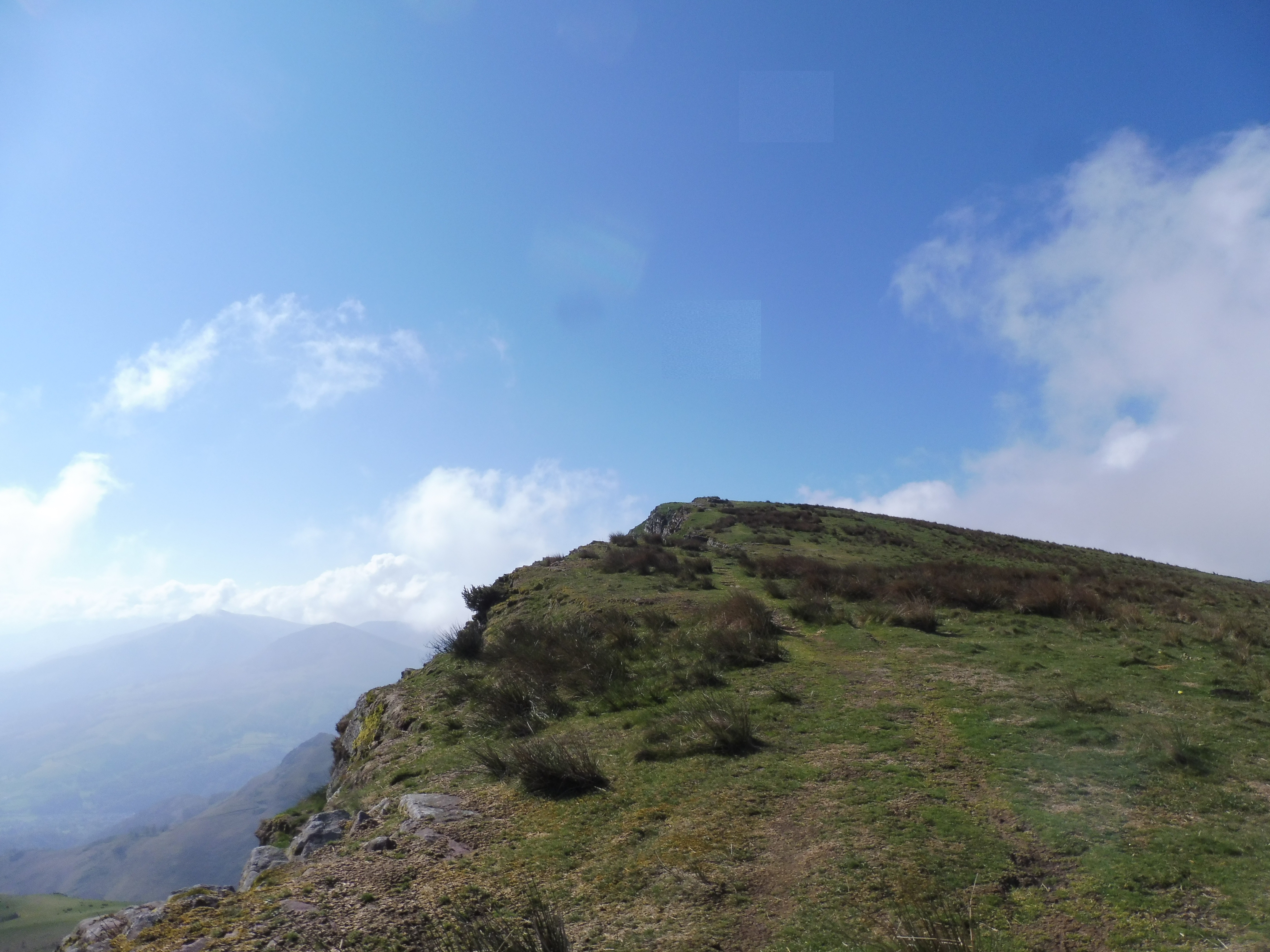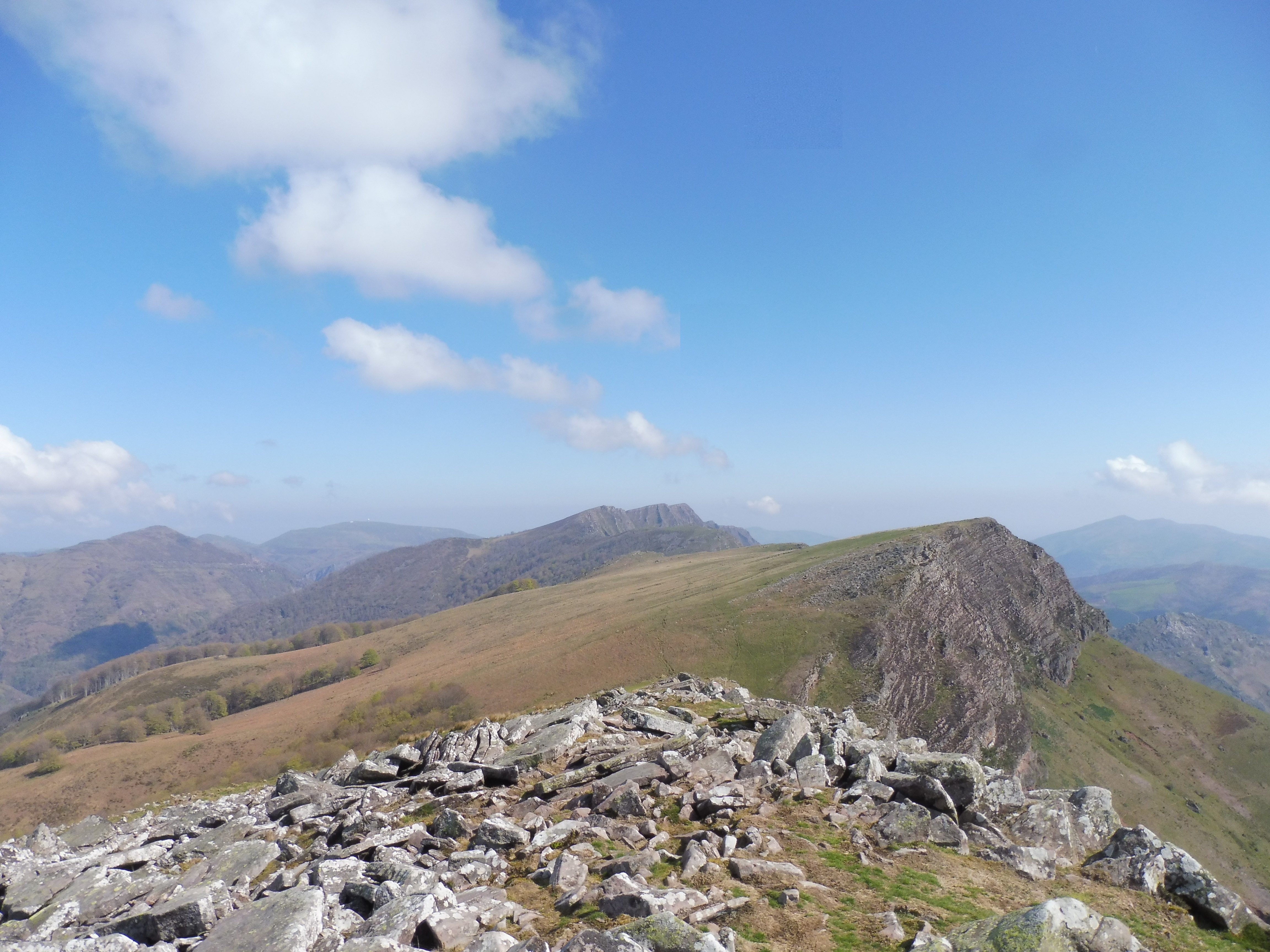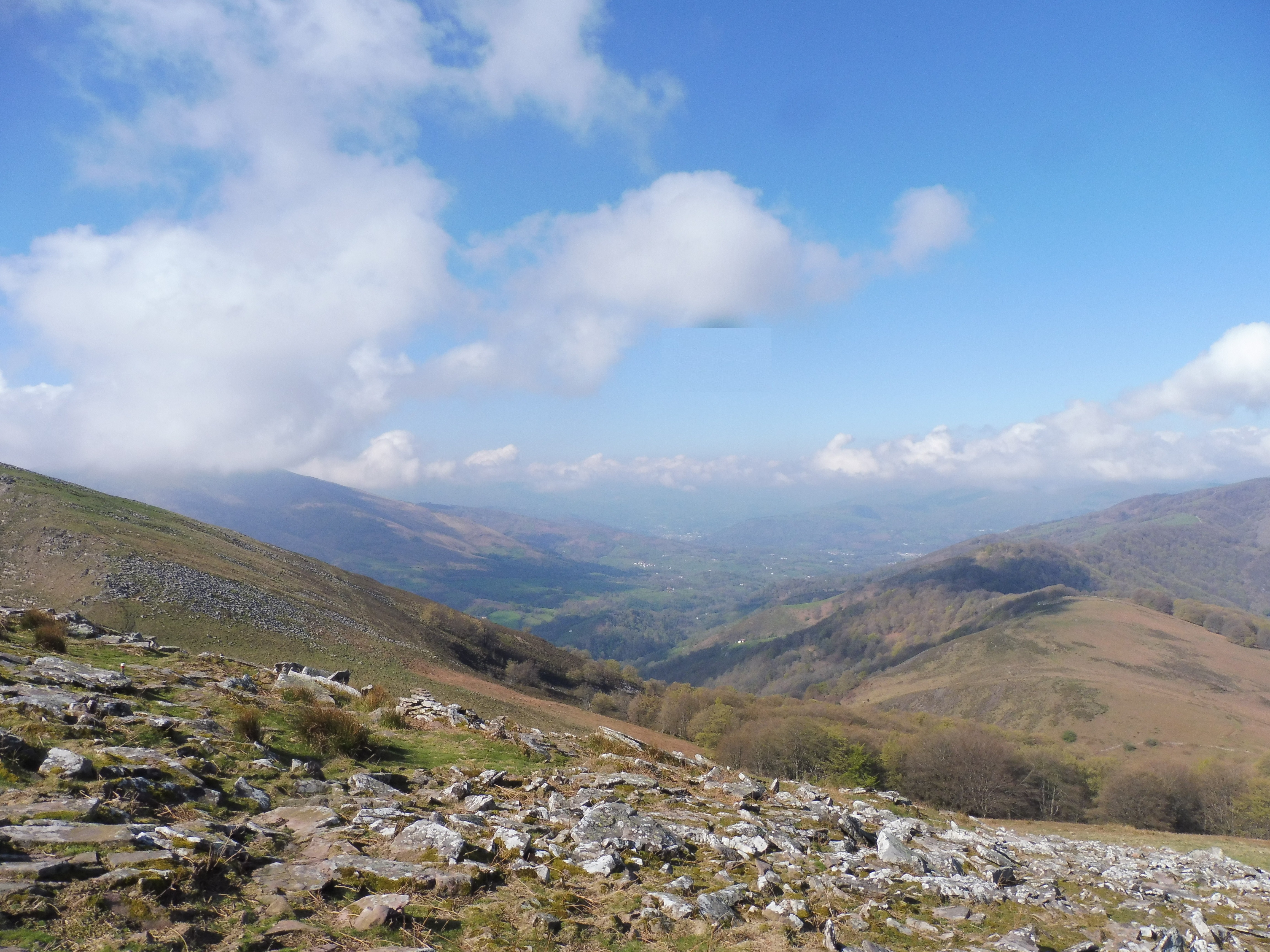 Arrivée au sommet d'Astate (1015 m) : beau panorama sur les sommets de la Valle de Baztan, des Crêtes d'Iparla et de la Basse-Navarre malgré la présence de nuages