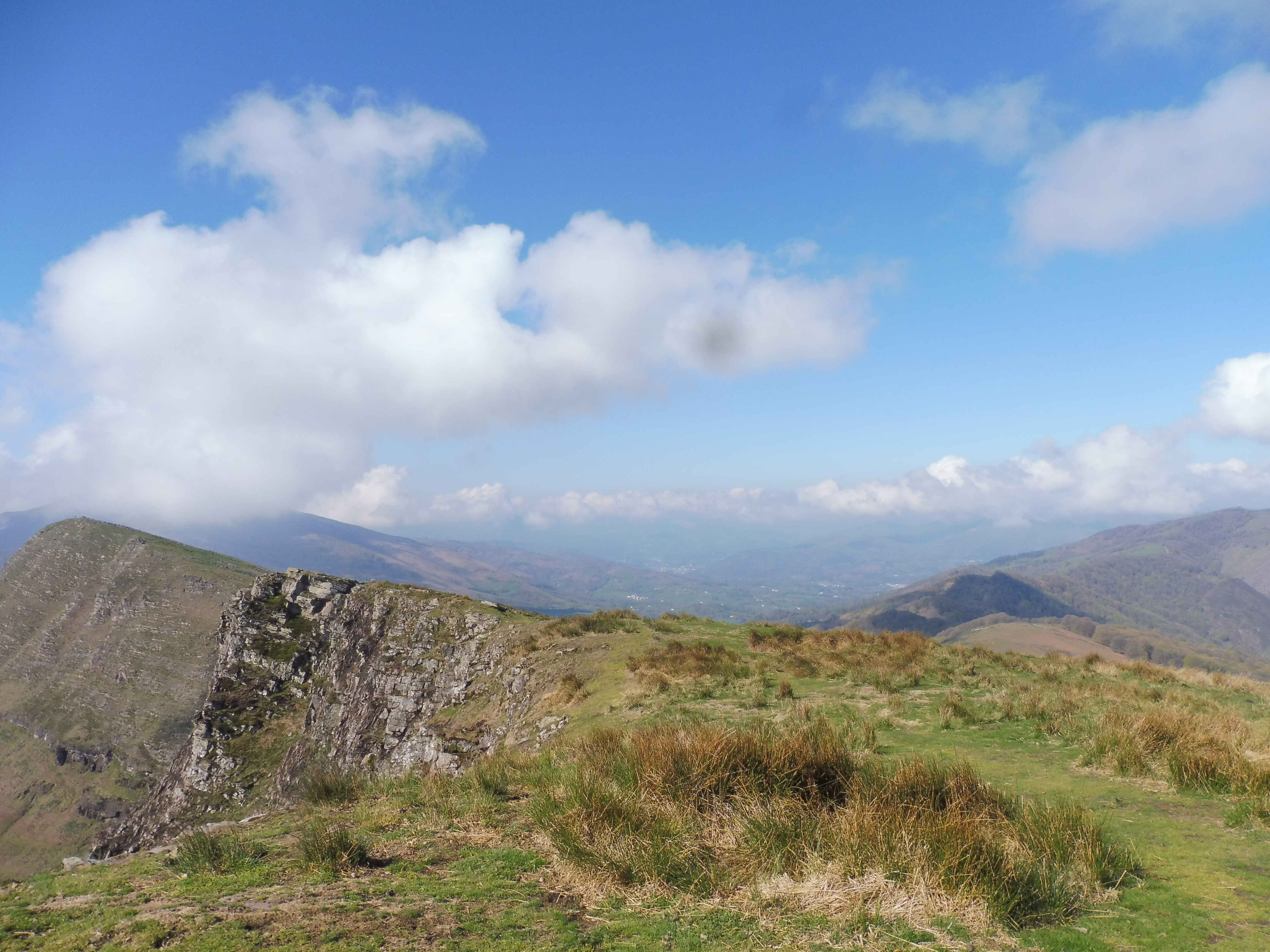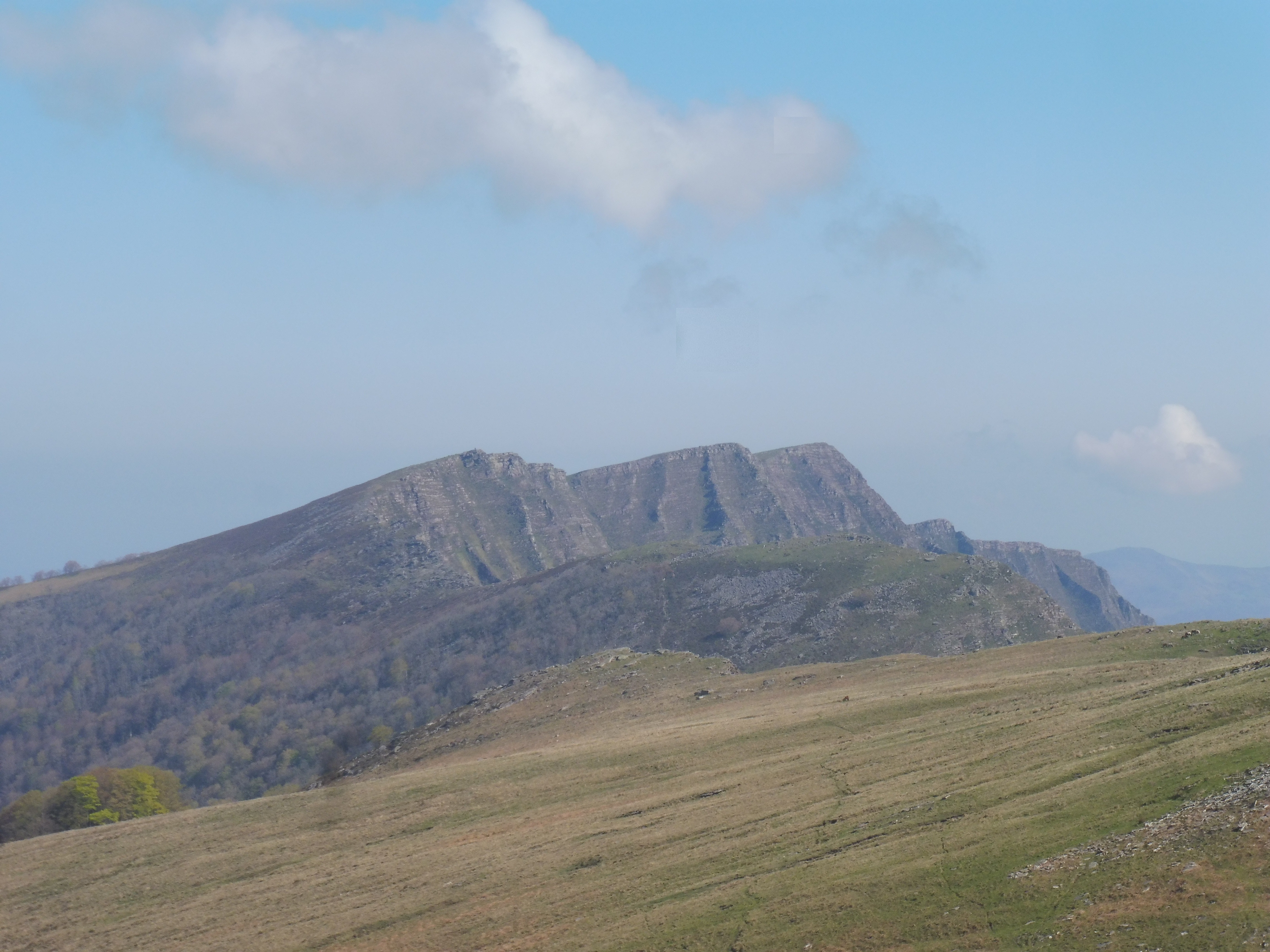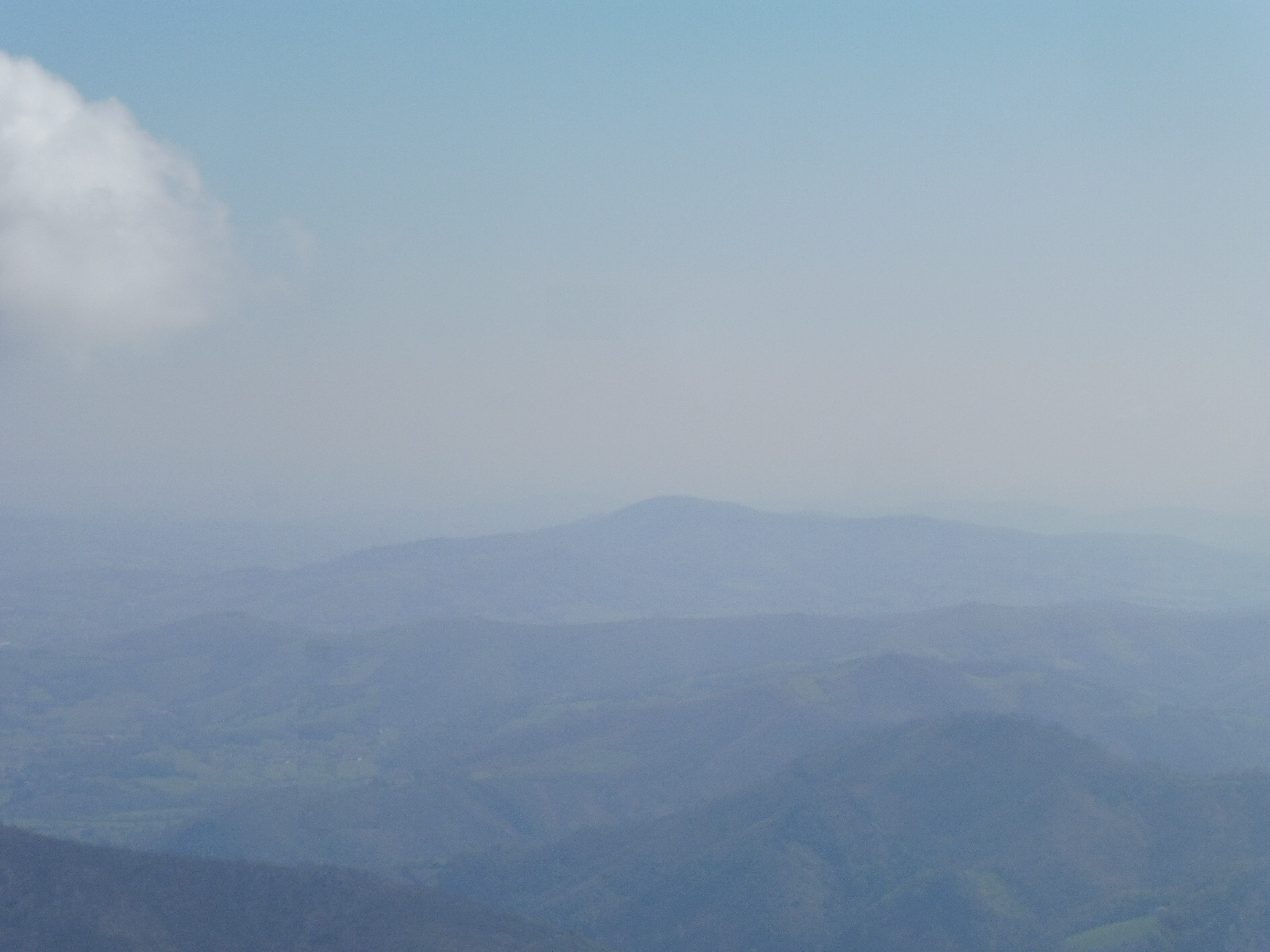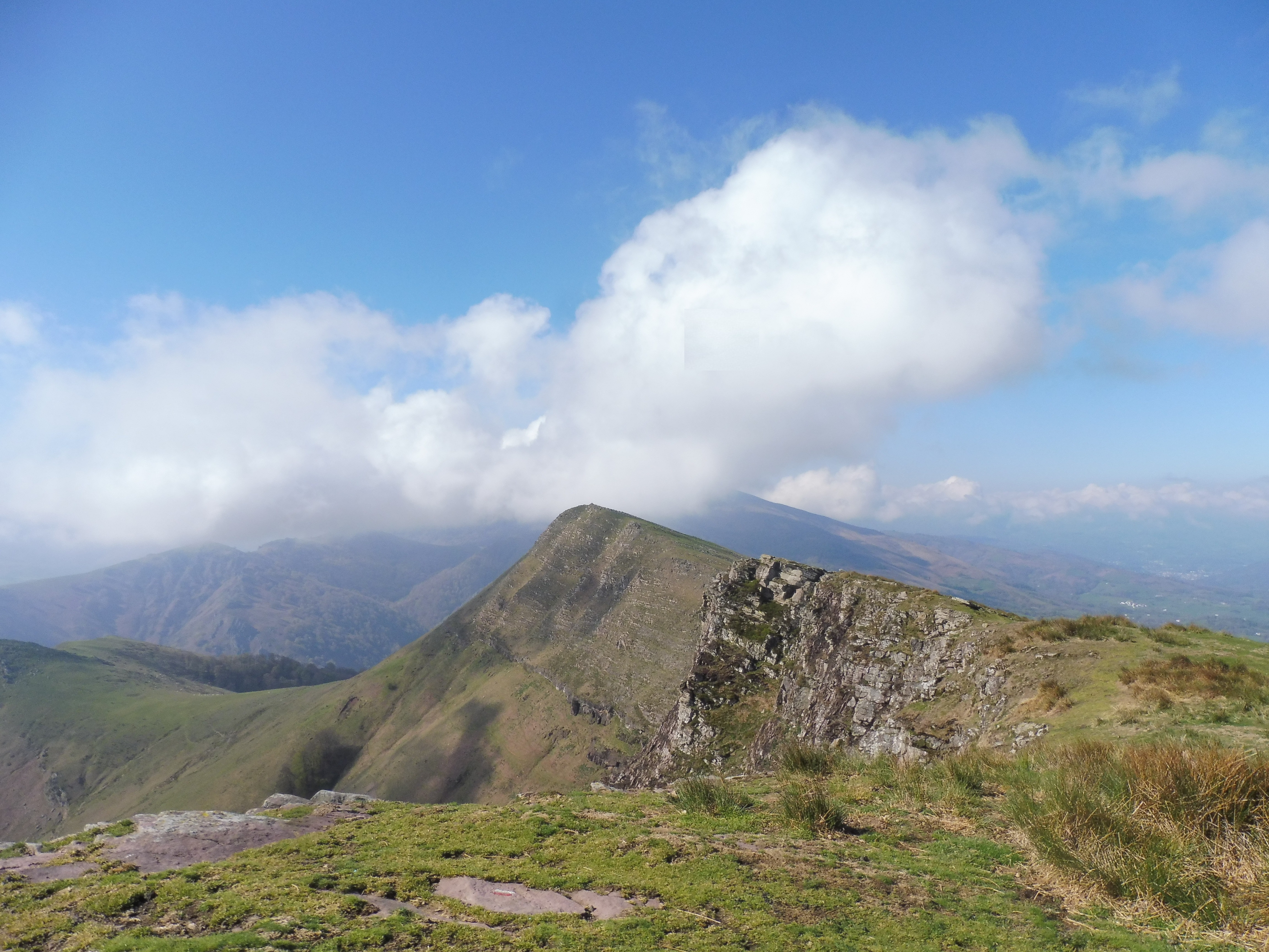 Arrivée au sommet d'Astate (1015 m) : beau panorama sur les sommets de la Valle de Baztan, des Crêtes d'Iparla et de la Basse-Navarre malgré la présence de nuages