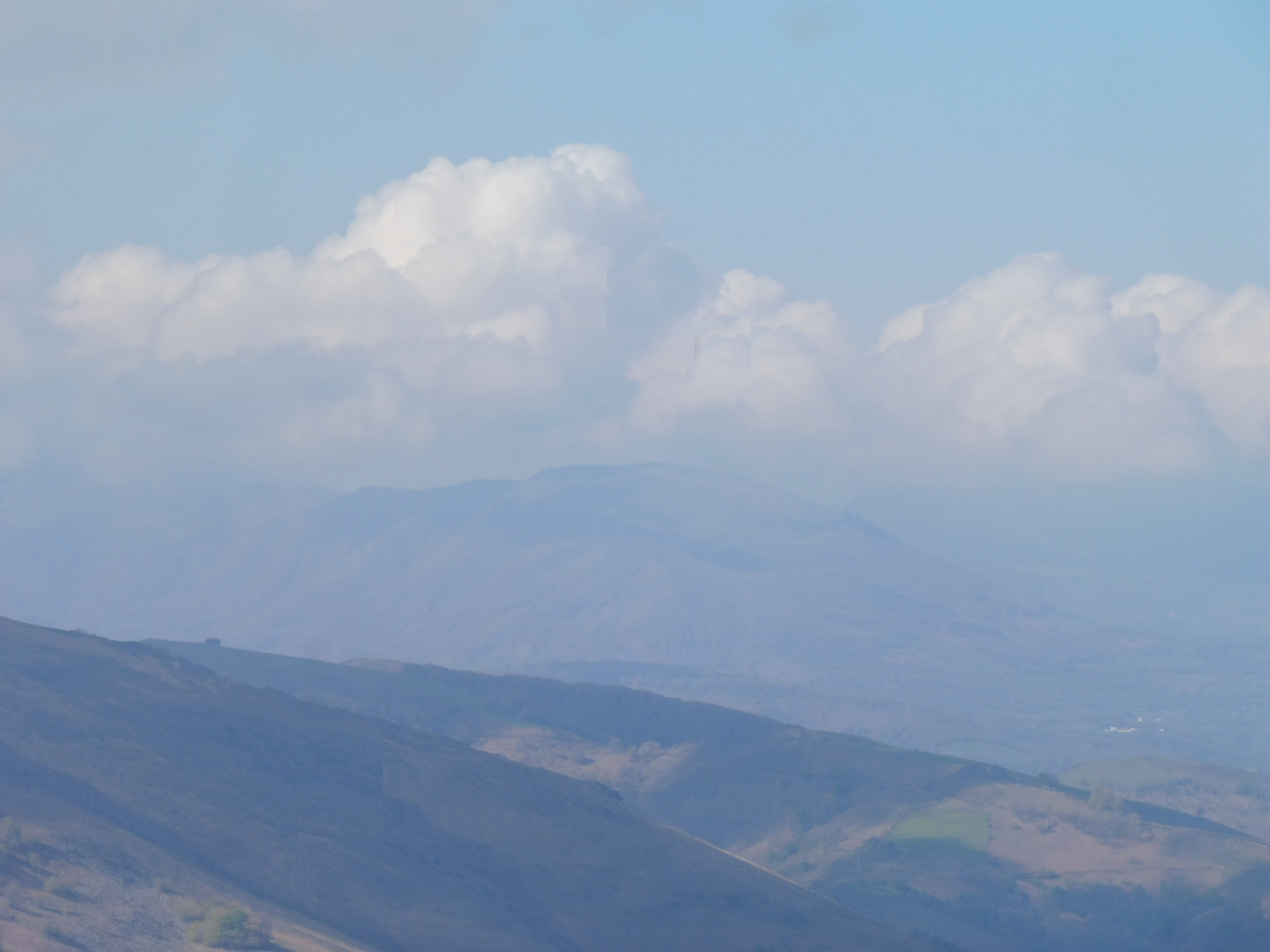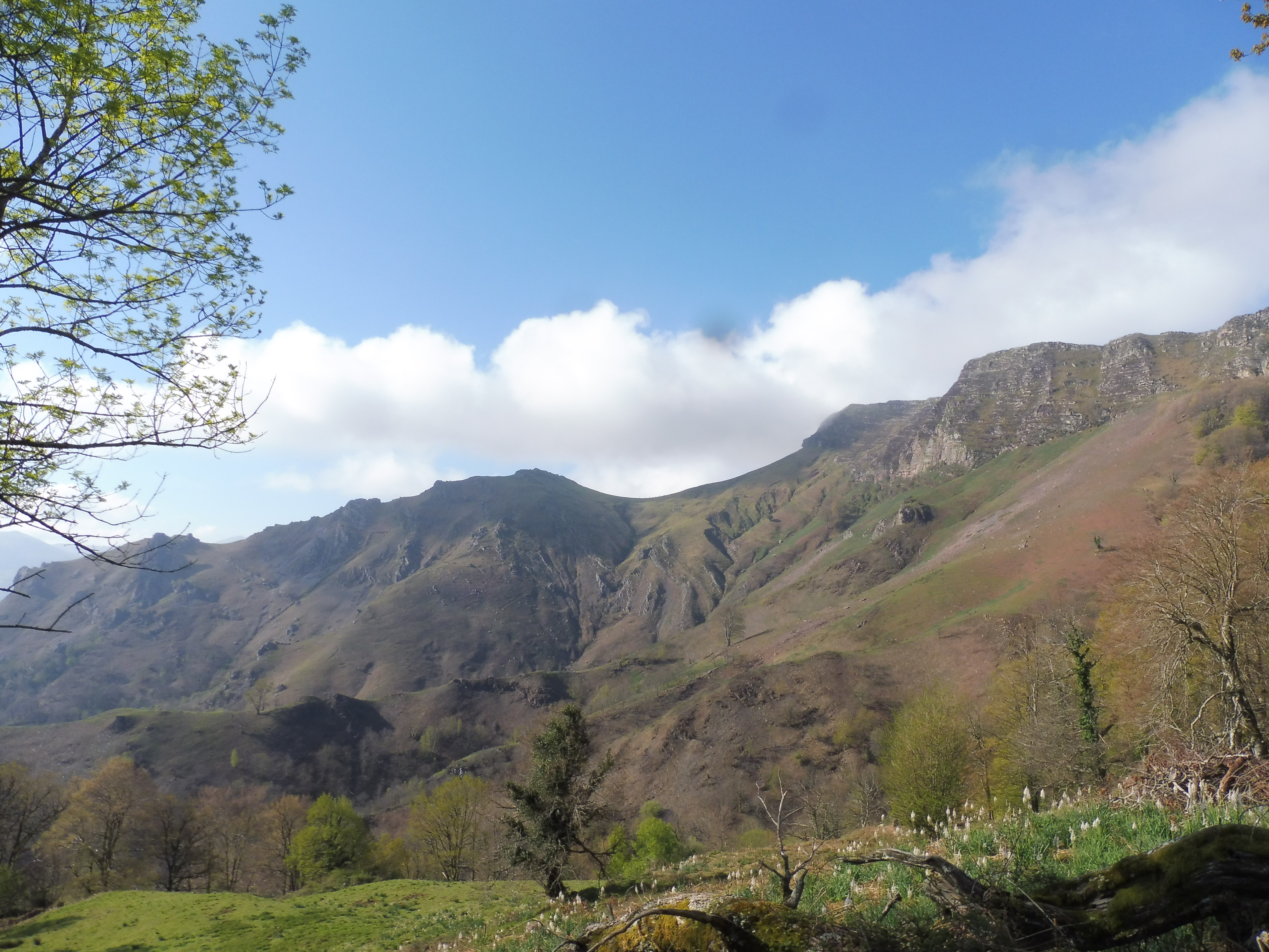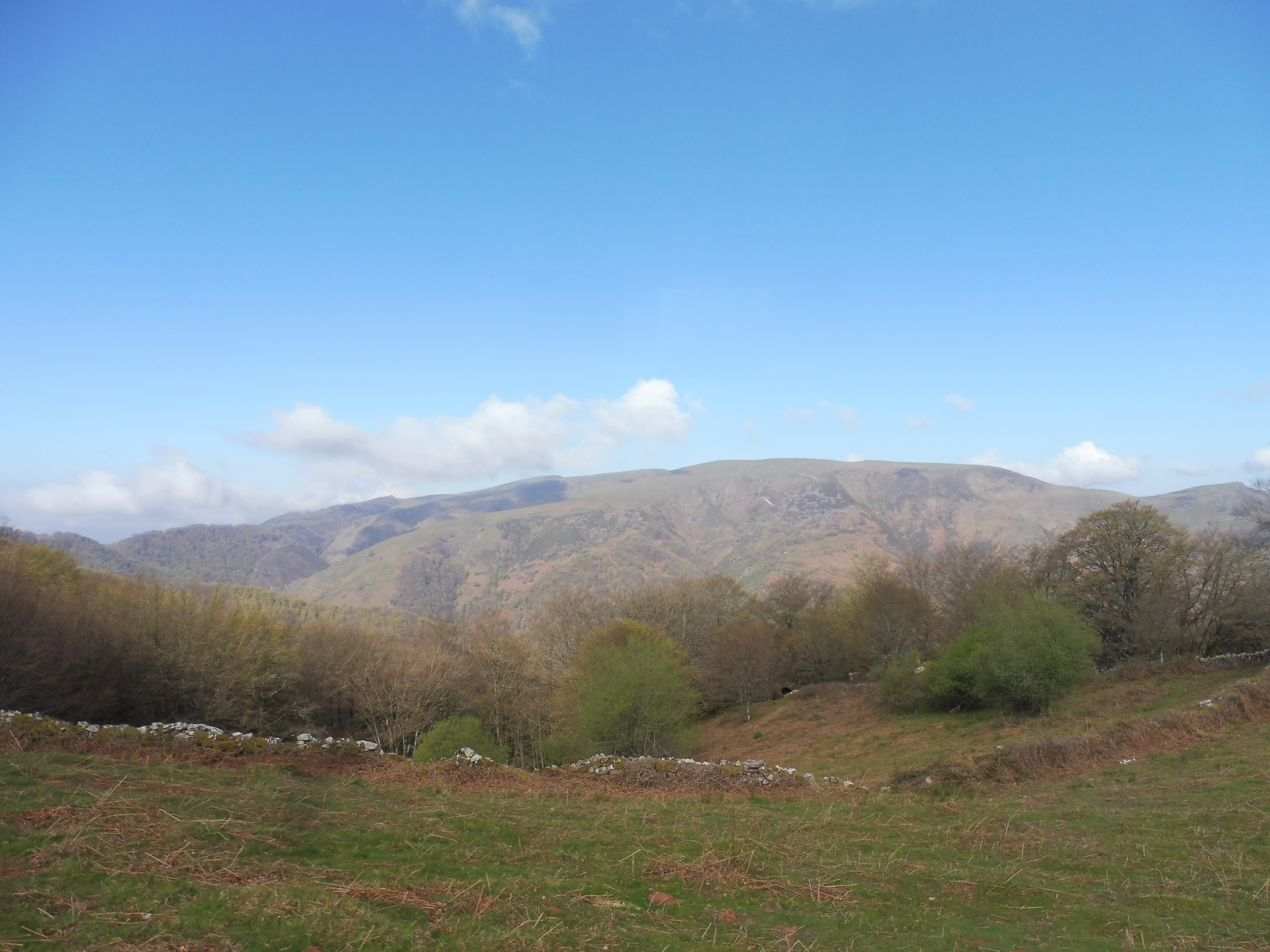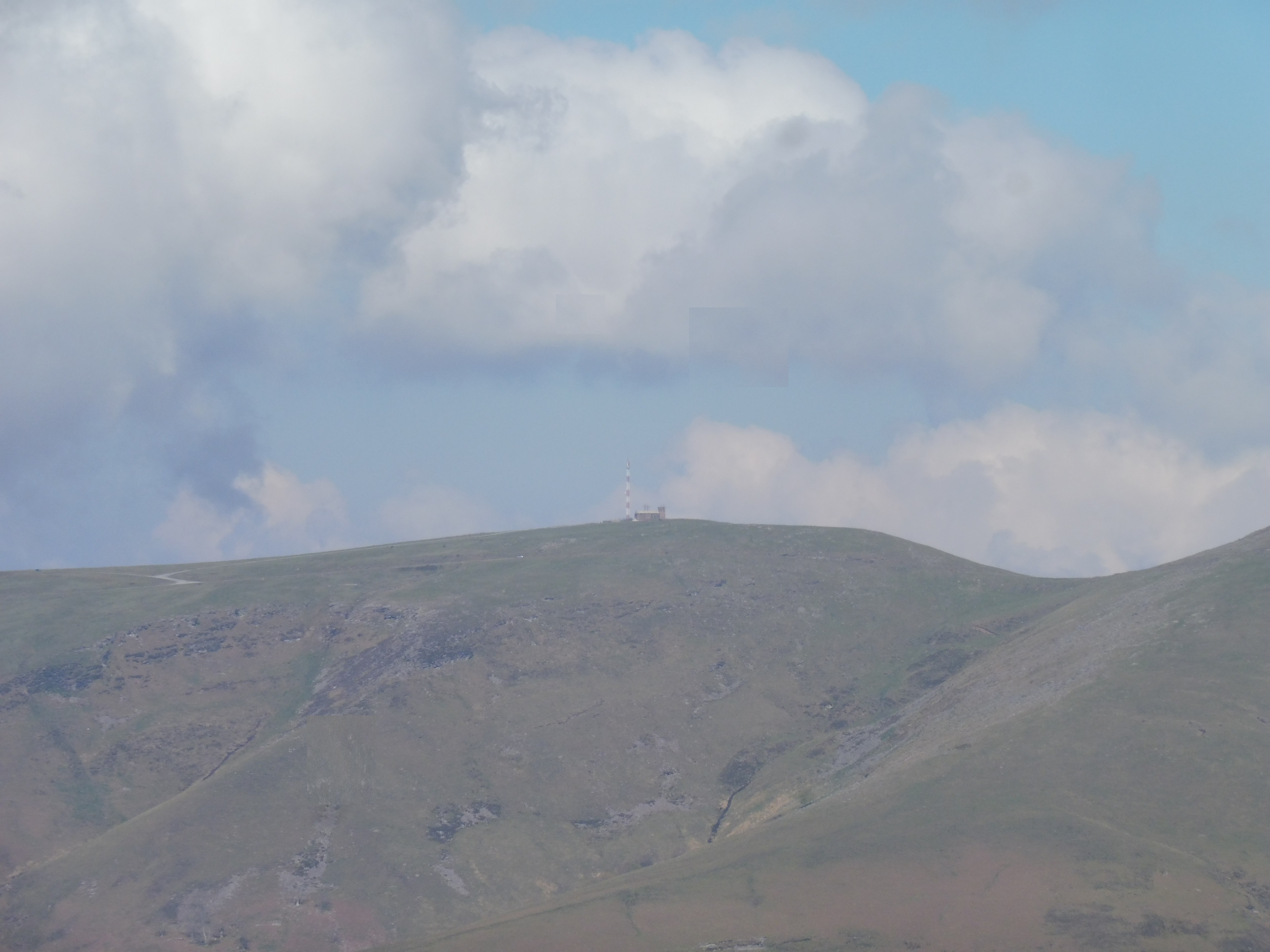 Arrivée au sommet d'Astate (1015 m) : beau panorama sur les sommets de la Valle de Baztan, des Crêtes d'Iparla et de la Basse-Navarre malgré la présence de nuages