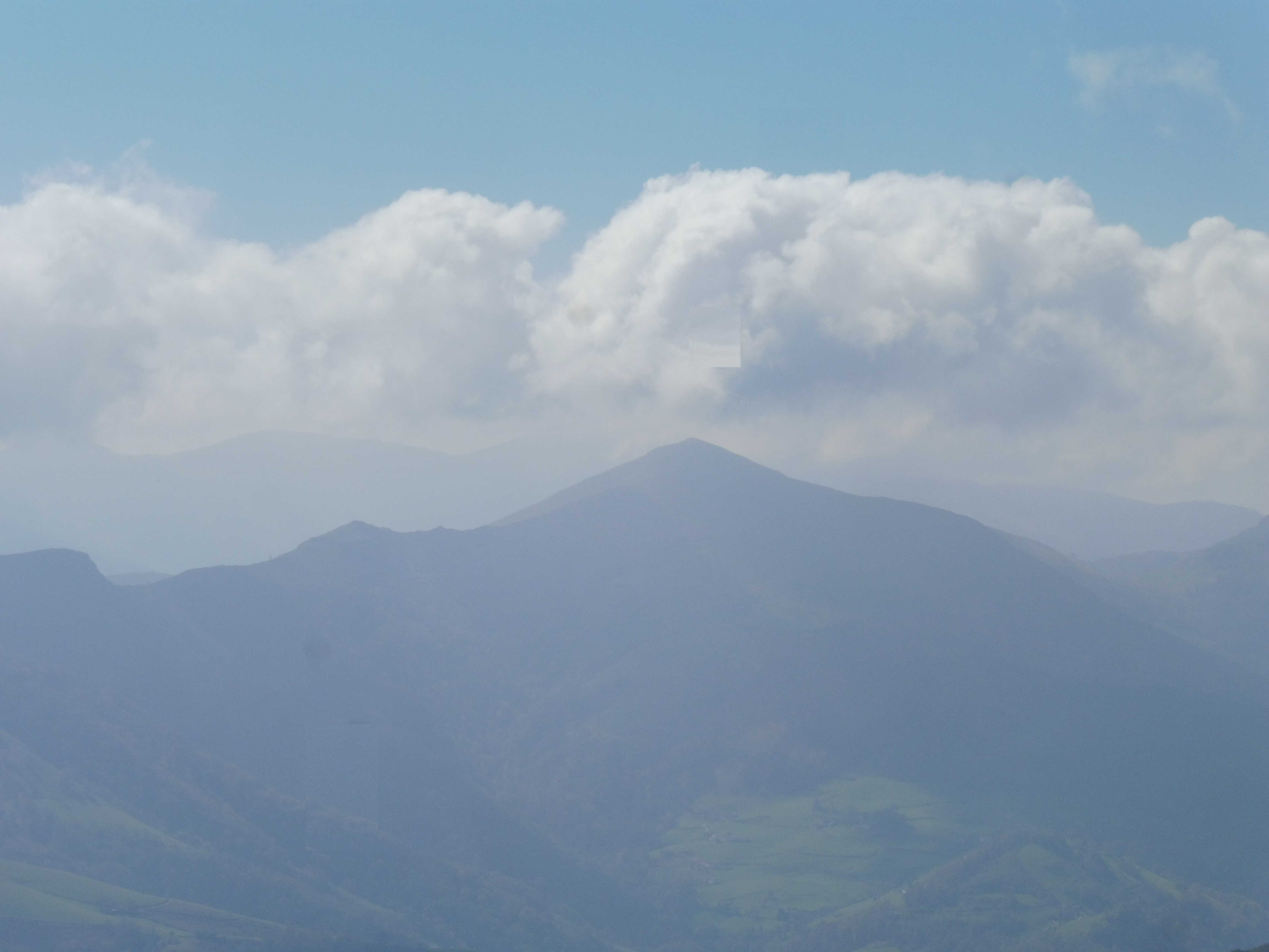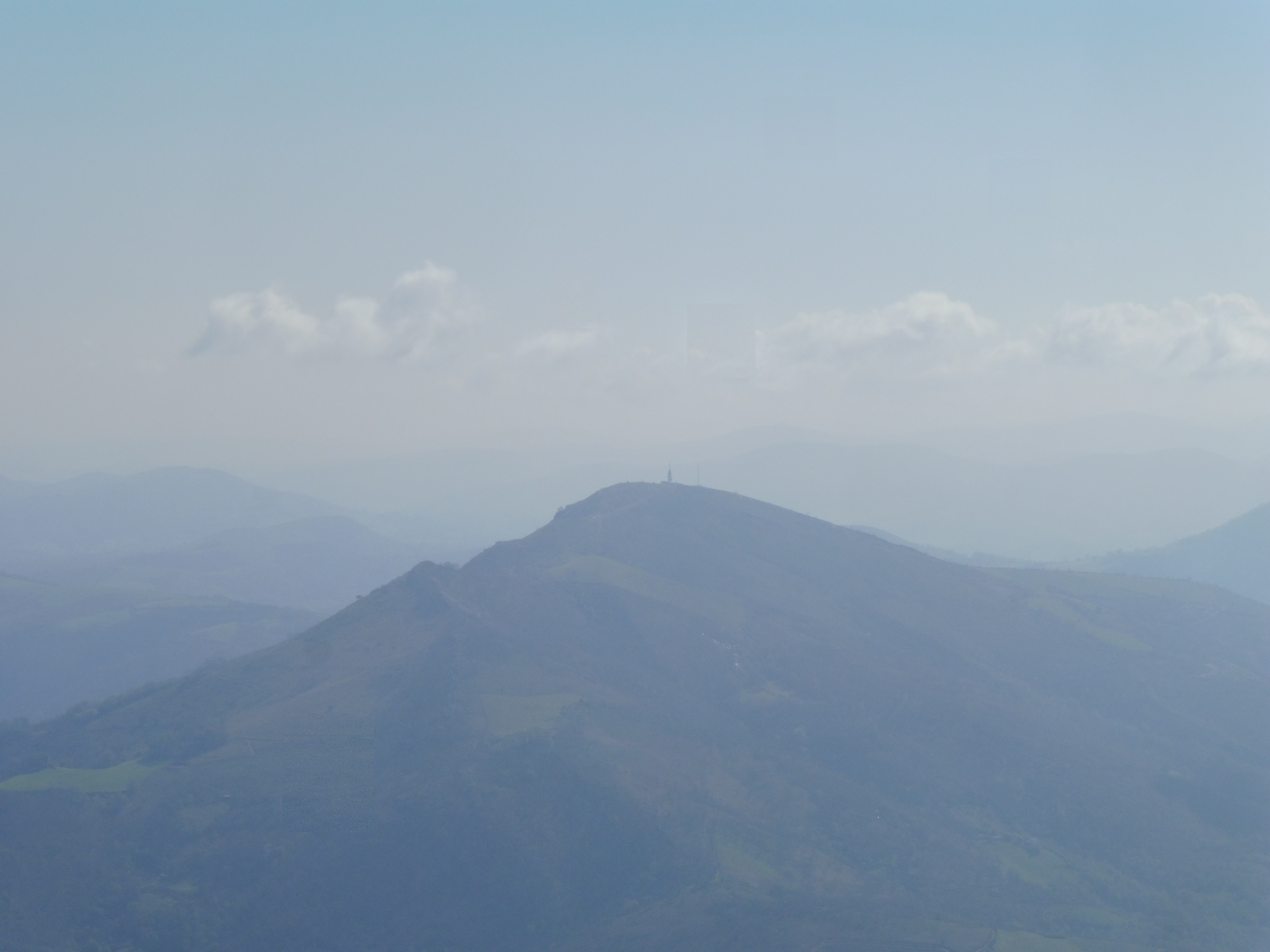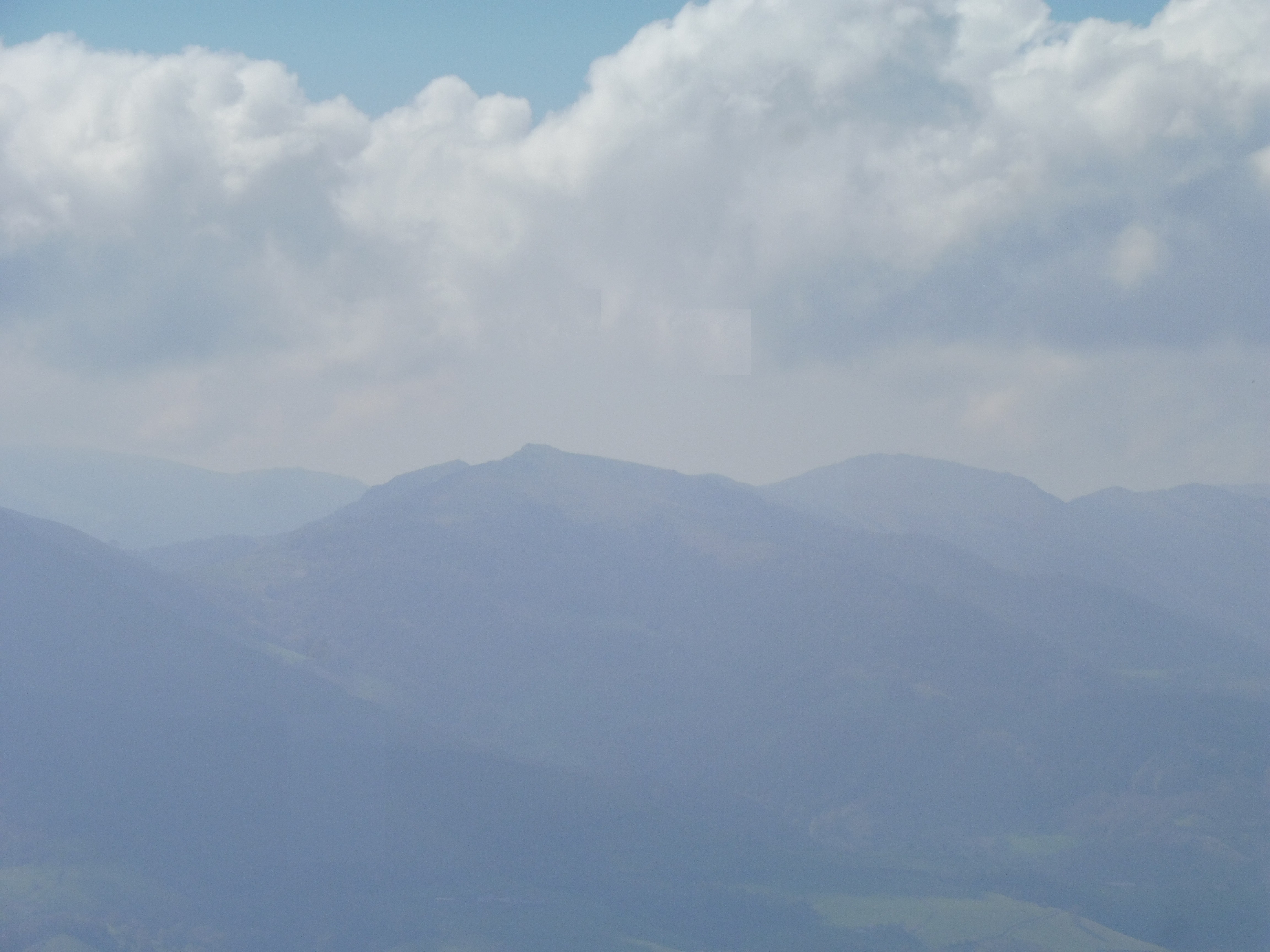 Zoom sur le Pic Iguzki (844 m) au centre-gauche et le Pic du Mondarrain (749 m) au centre