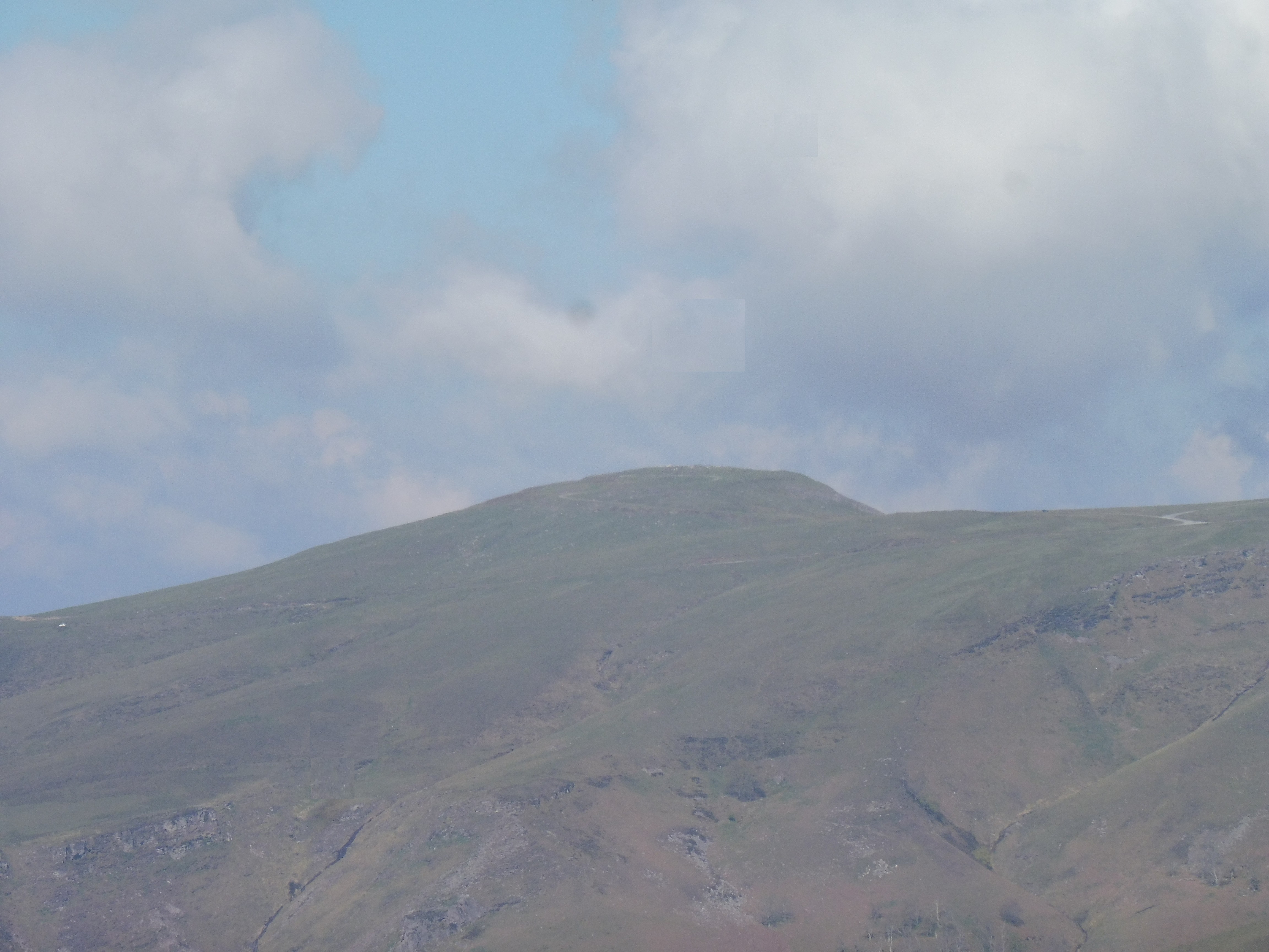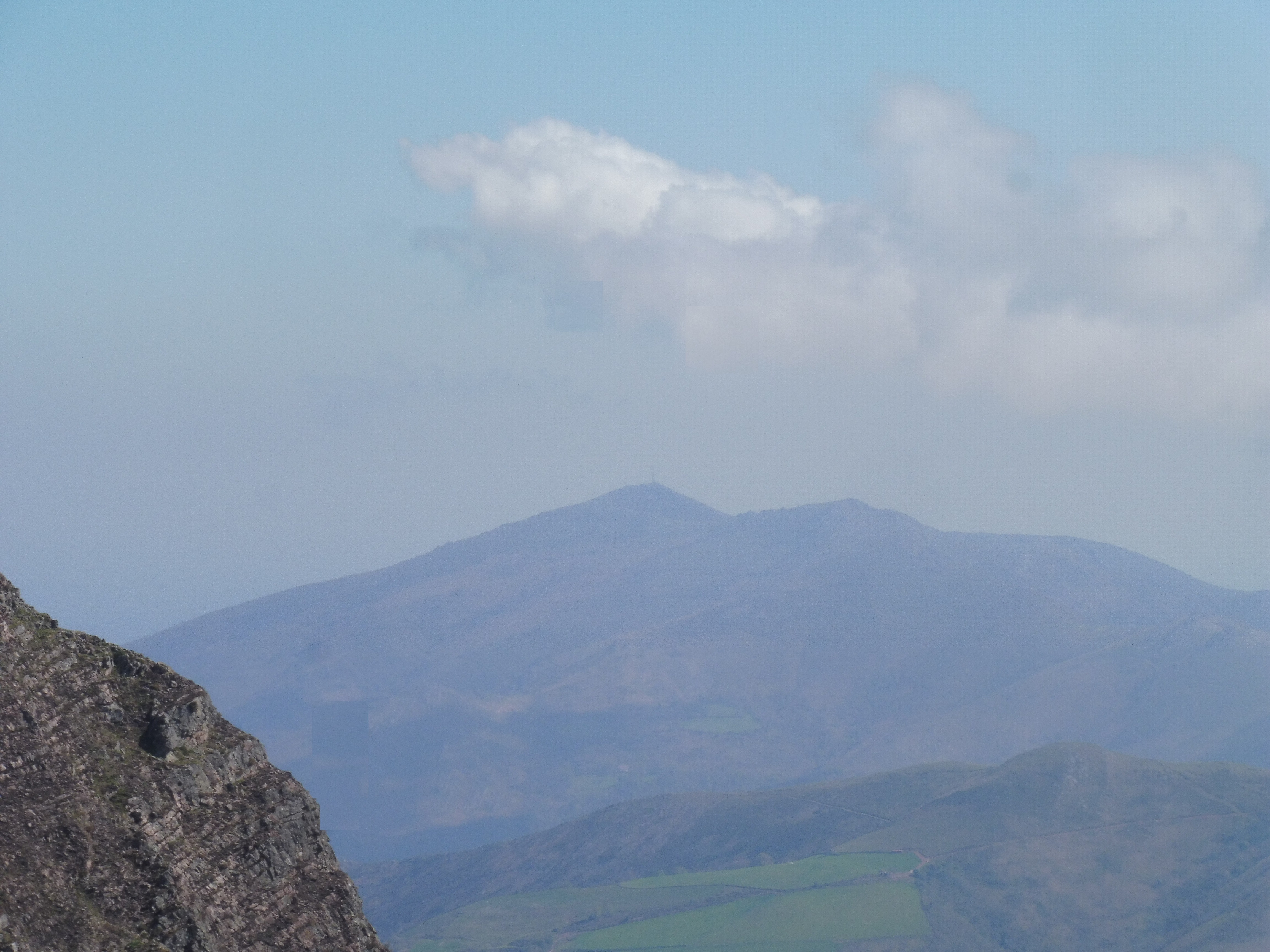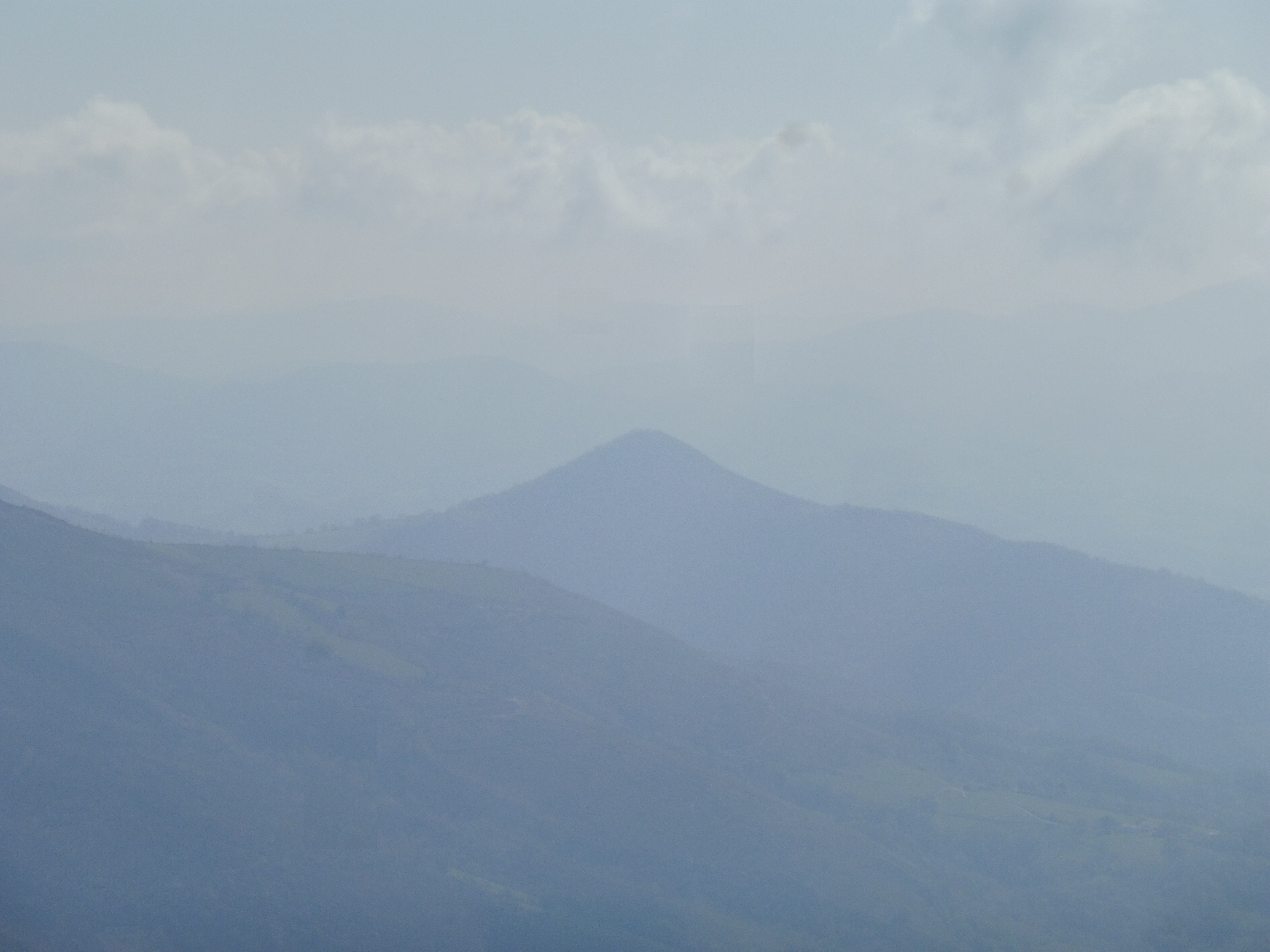 Zoom sur le Pic Iguzki (844 m) au centre-gauche et le Pic du Mondarrain (749 m) au centre