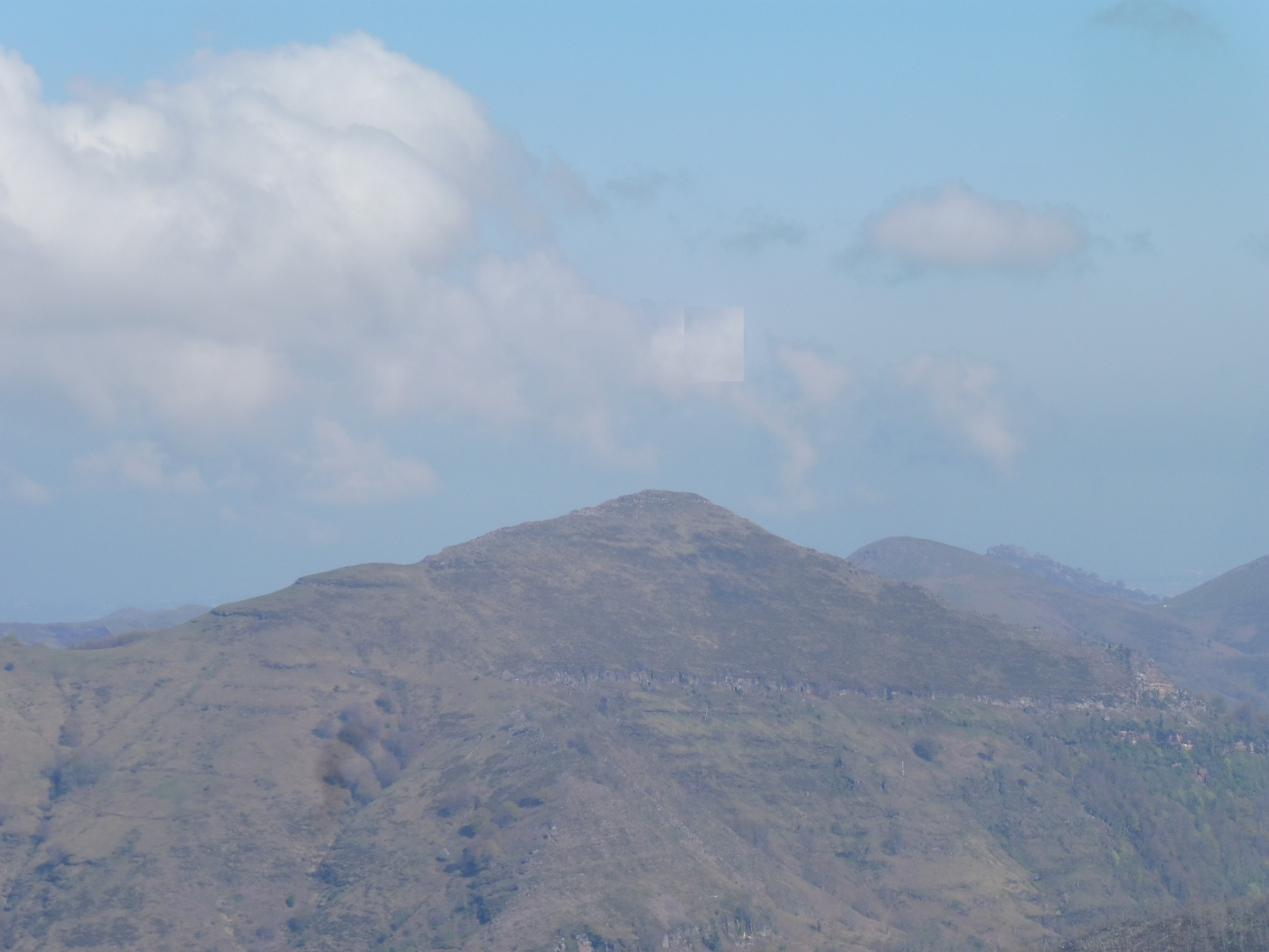 Zoom sur Adi (1457 m) partiellement caché par les nuages